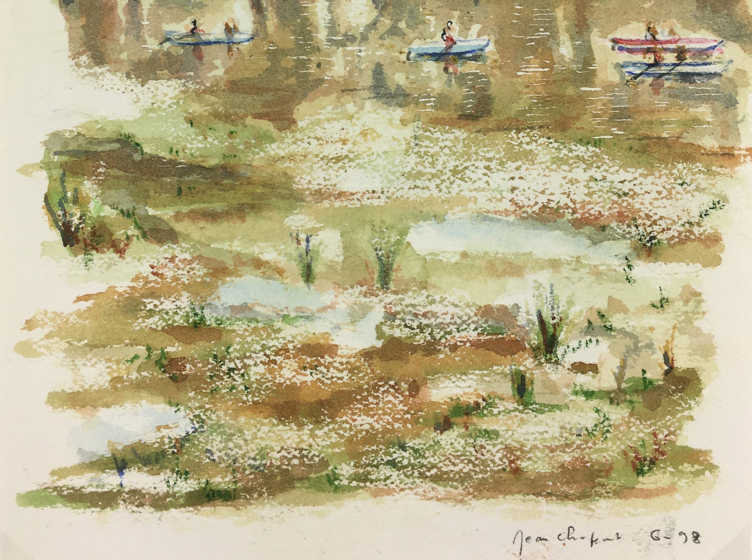 Original Art on paper displayed on a white mat with a gold border. Mat fits a standard-size frame. Archival plastic sleeve and Certificate of Authenticity included. Original Art, 13″W x 9.5″H; mat, 16″W x 20″H.