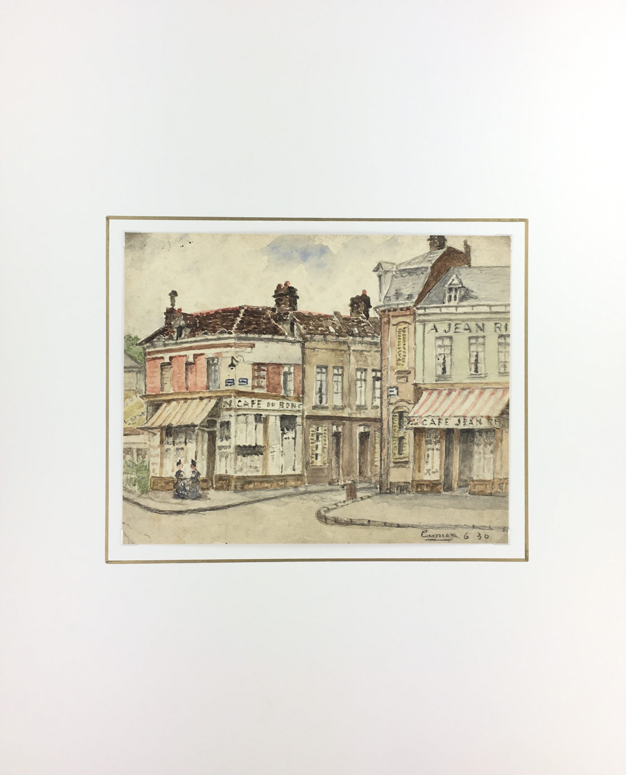Original Art on paper displayed on a white mat with a gold border. Mat fits a standard-size frame. Archival plastic sleeve and Certificate of Authenticity included. Original Art, 10″W x 8″H; mat, 16″W x 20″H.