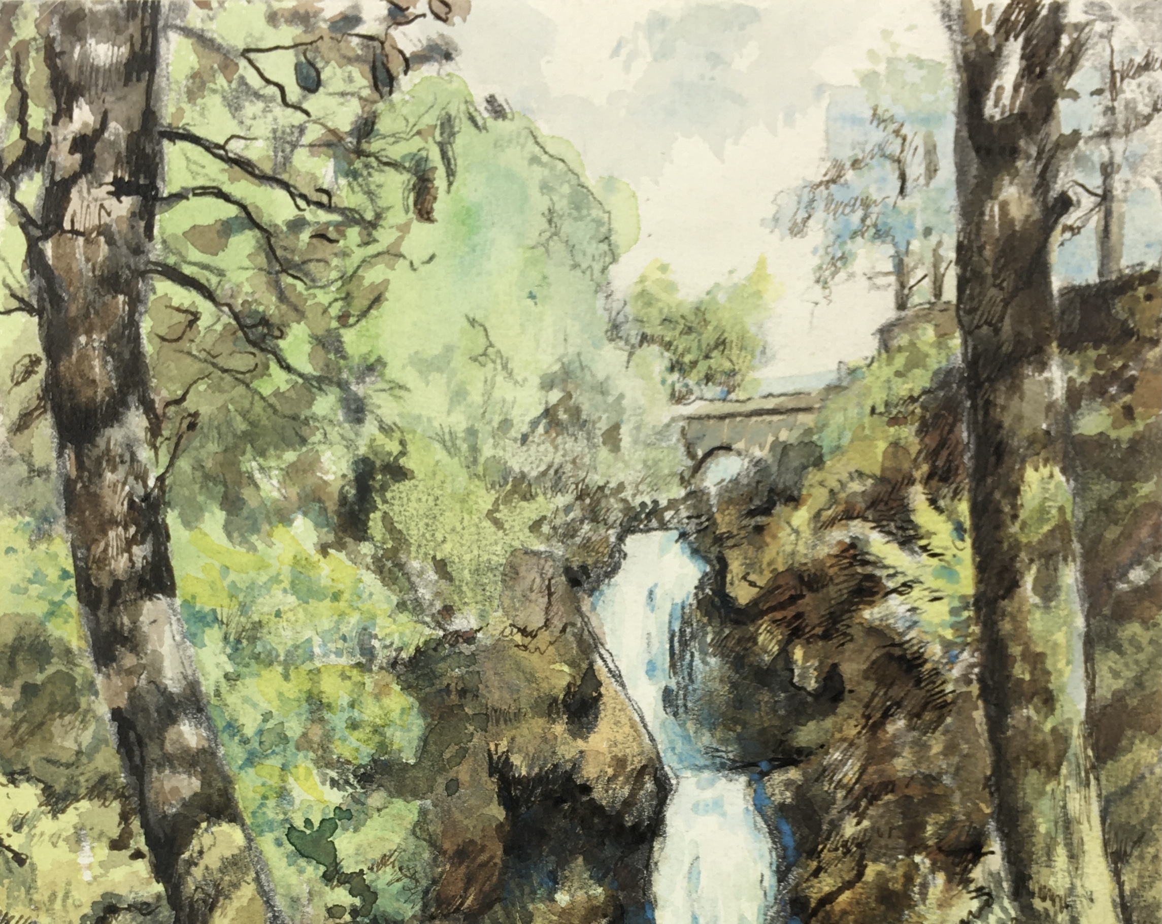 Original Art on paper displayed on a white mat with a gold border. Mat fits a standard-size frame. Archival plastic sleeve and Certificate of Authenticity included. Original Art, 6″W x 8.5″H; mat, 16″W x 20″H.