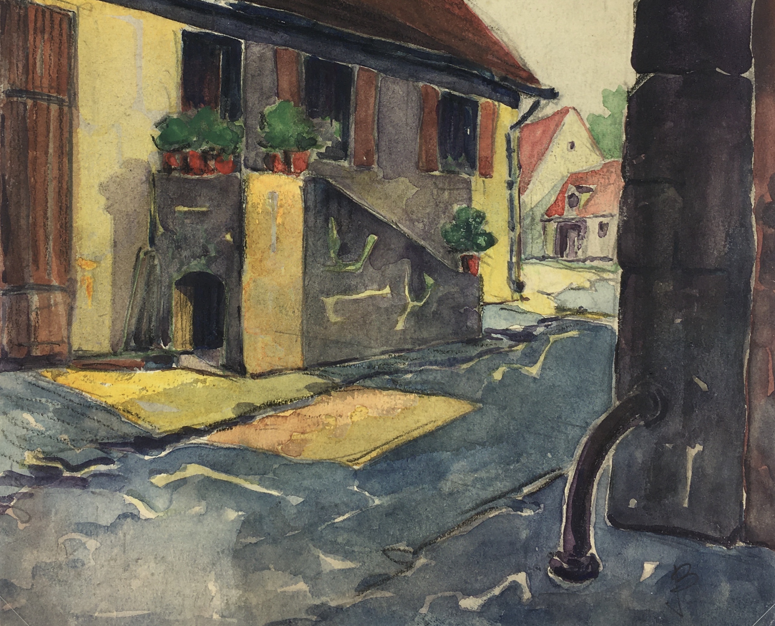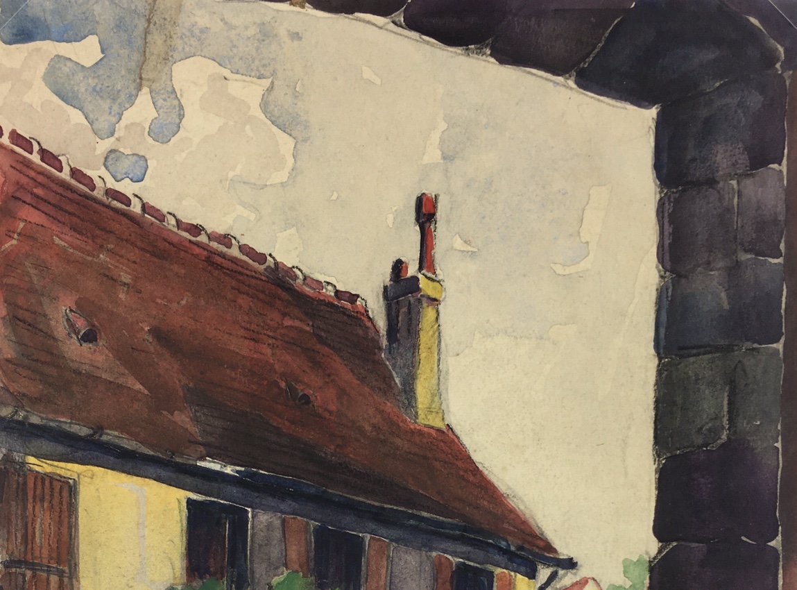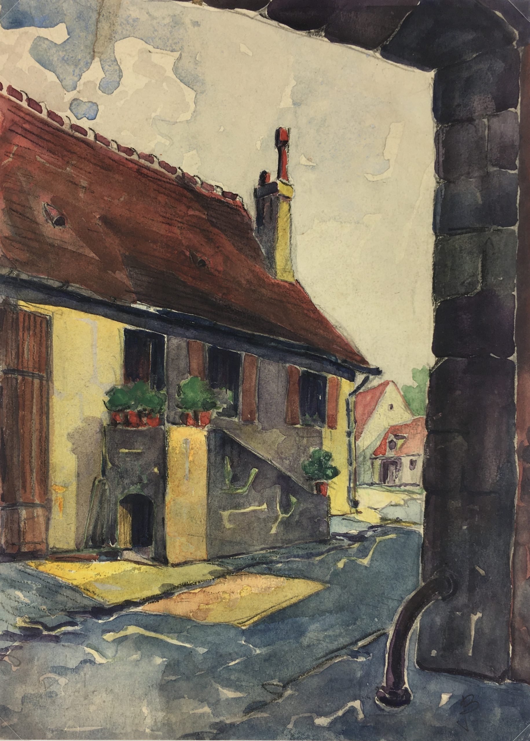 Original Art on paper displayed on a white mat with a gold border. Mat fits a standard-size frame. Archival plastic sleeve and Certificate of Authenticity included. Original Art, 7.25″W x 10″H; mat, 16″W x 20″H.