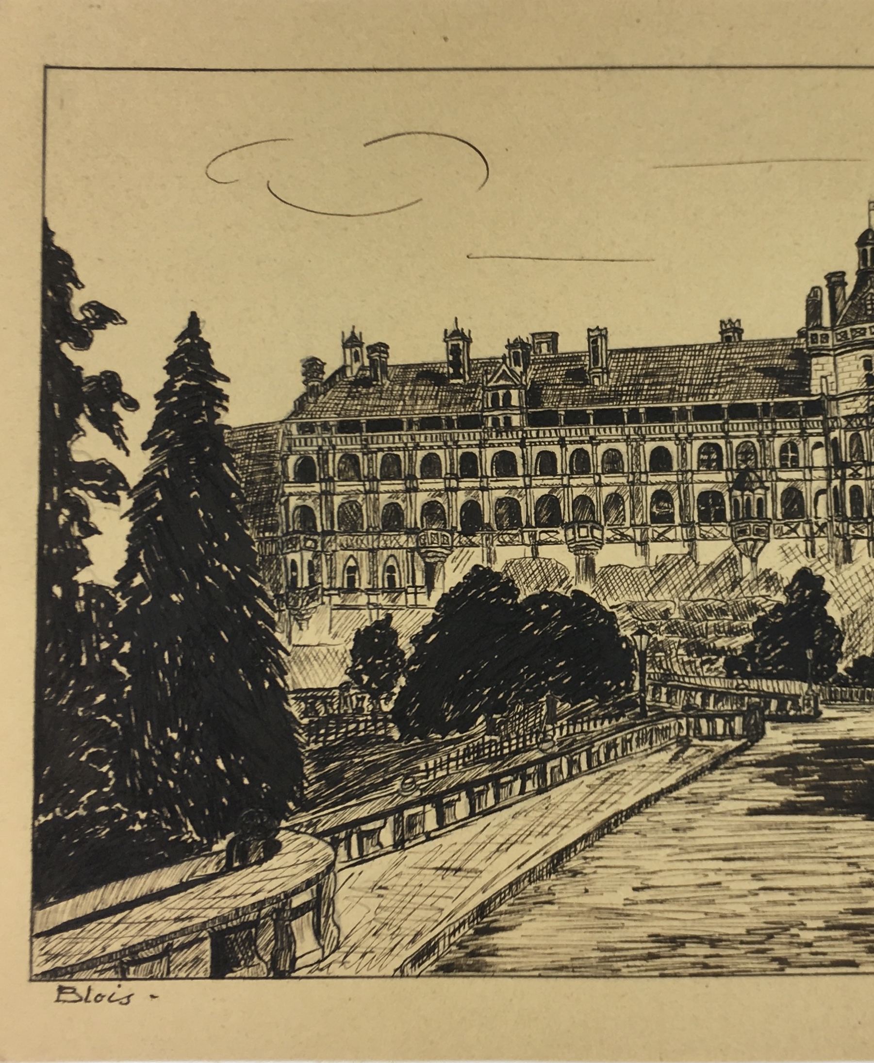 Original Art on paper displayed on a white mat with a gold border. Mat fits a standard-size frame. Archival plastic sleeve and Certificate of Authenticity included. Original Art, 10″W x 7.5″H; mat, 16″W x 20″H.