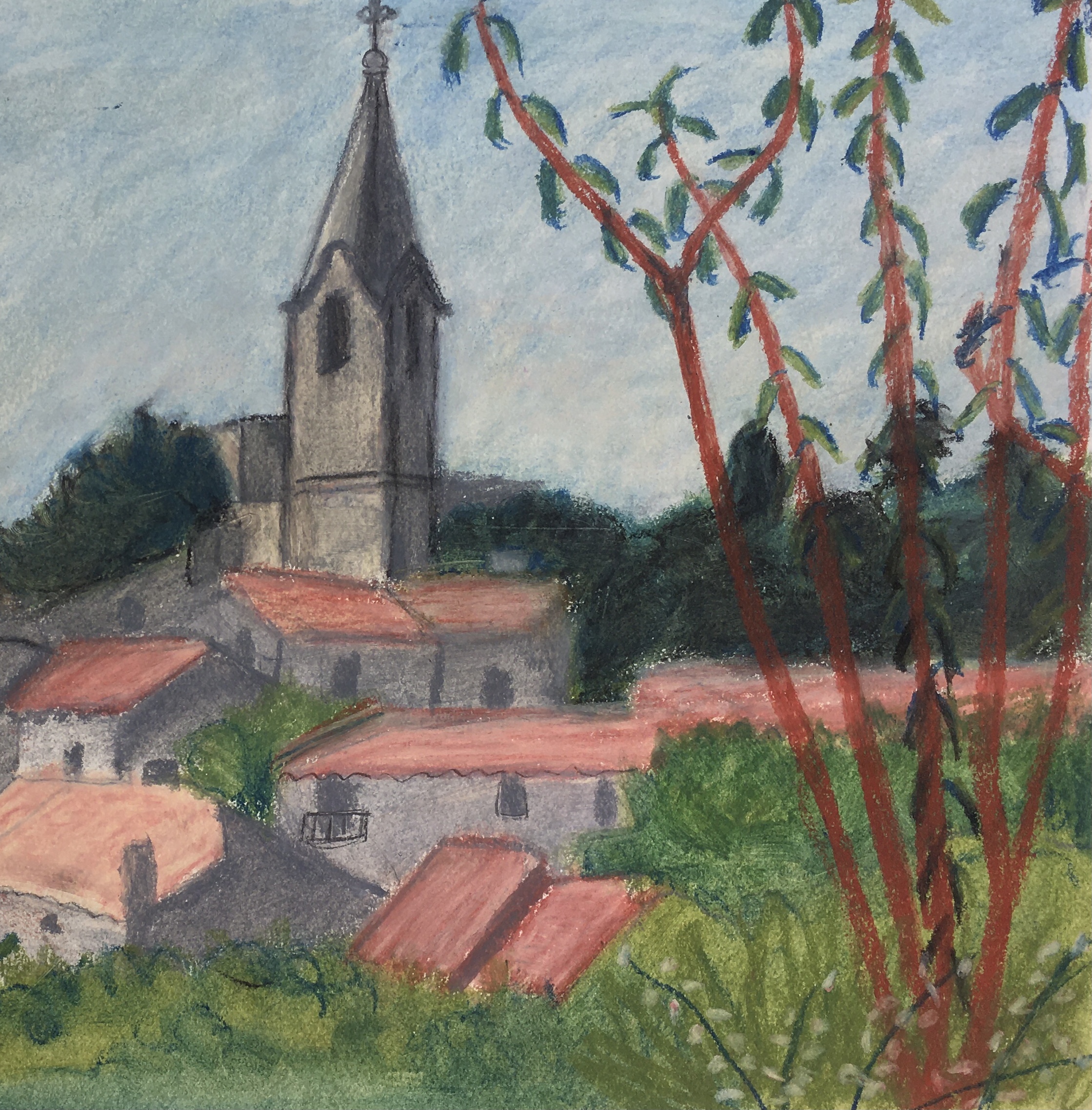 Original Art on paper displayed on a white mat with a gold border. Mat fits a standard-size frame. Archival plastic sleeve and Certificate of Authenticity included. Original Art, 16.5″W x 9.75″H; mat, 16″W x 20″H.