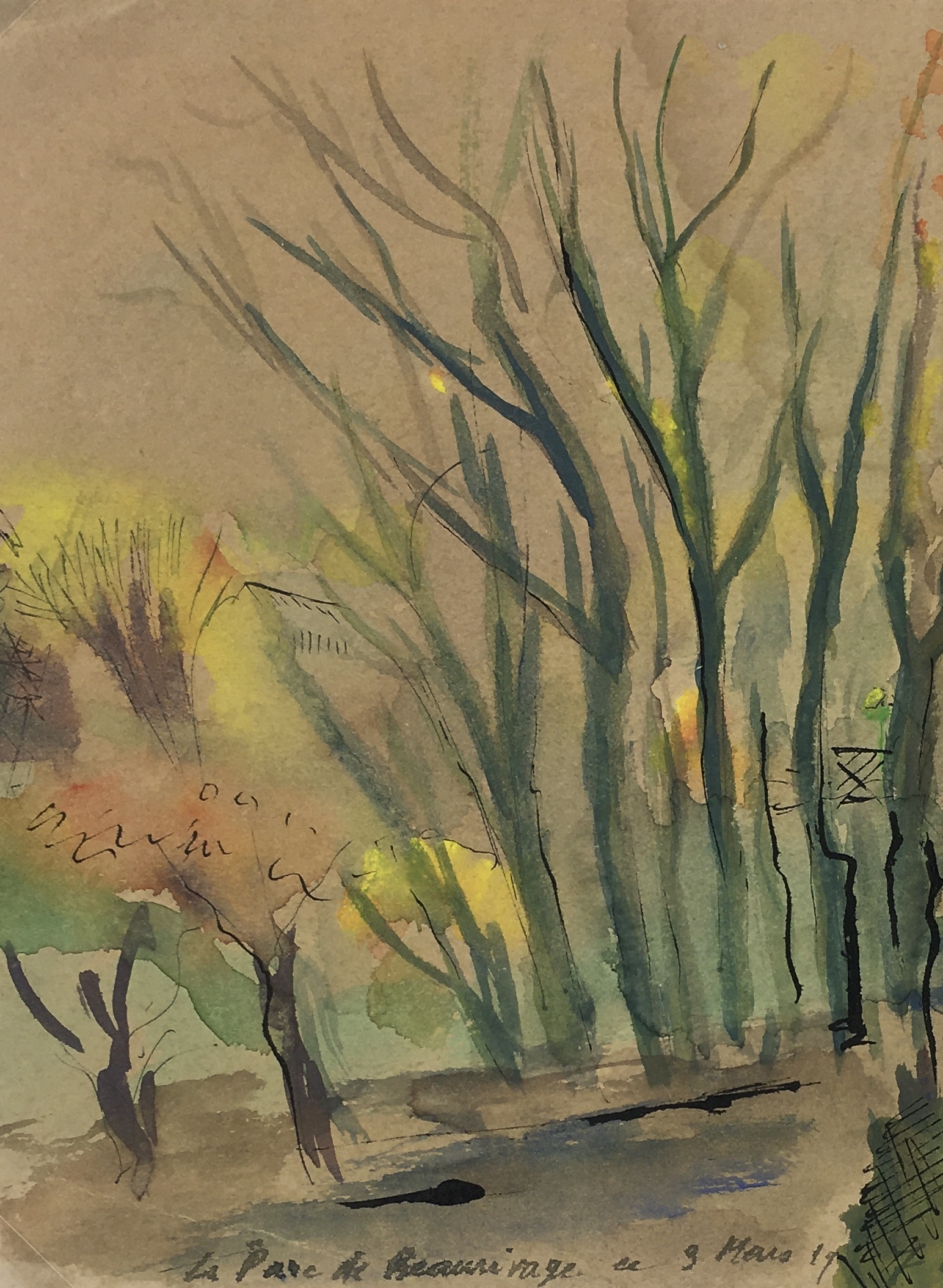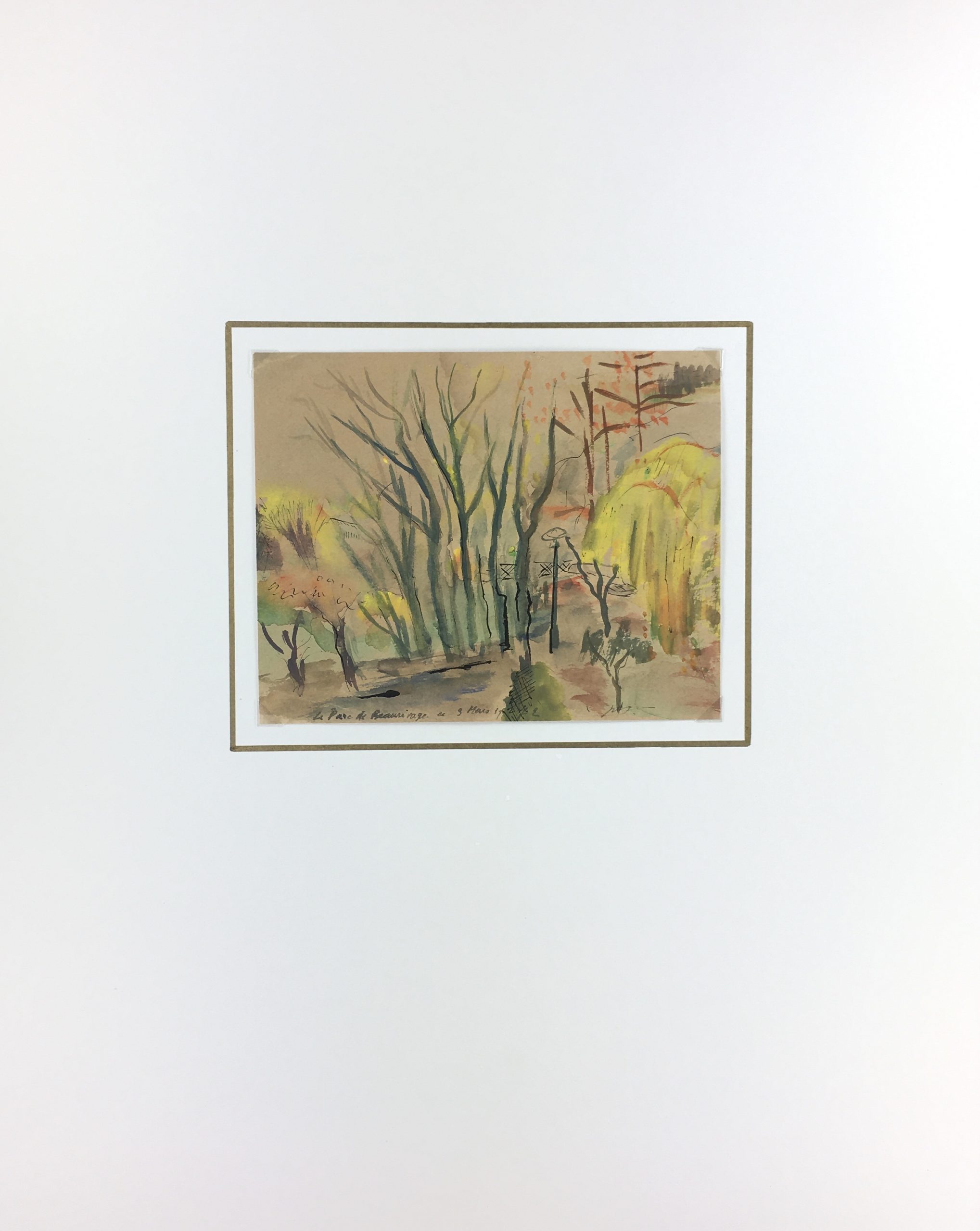 Original Art on paper displayed on a white mat with a gold border. Mat fits a standard-size frame. Archival plastic sleeve and Certificate of Authenticity included. Original Art, 7.5″W x 6″H; mat, 16″W x 20″H.