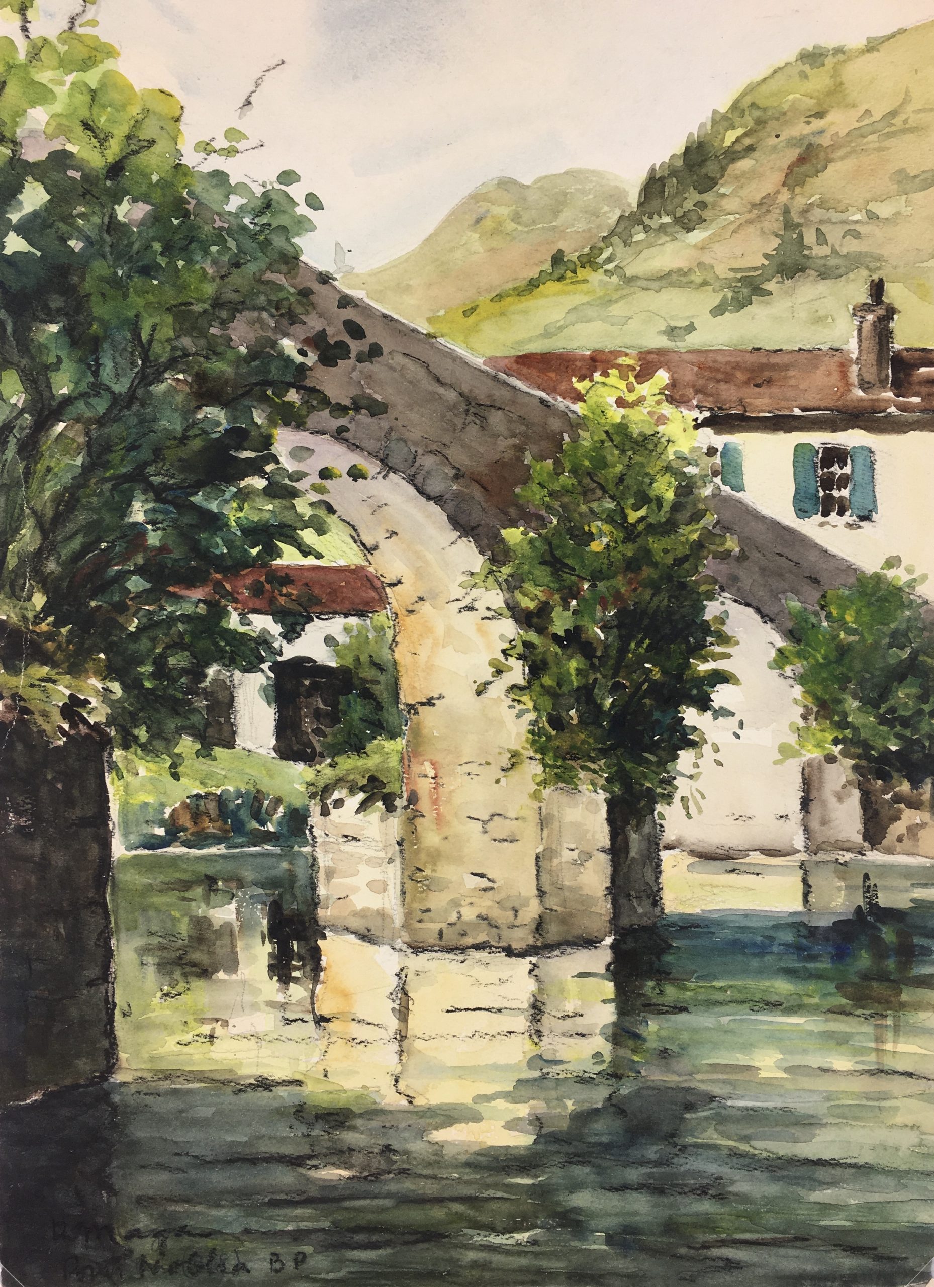 France Original Art – Pont Noblia, R. Maga, c.1950