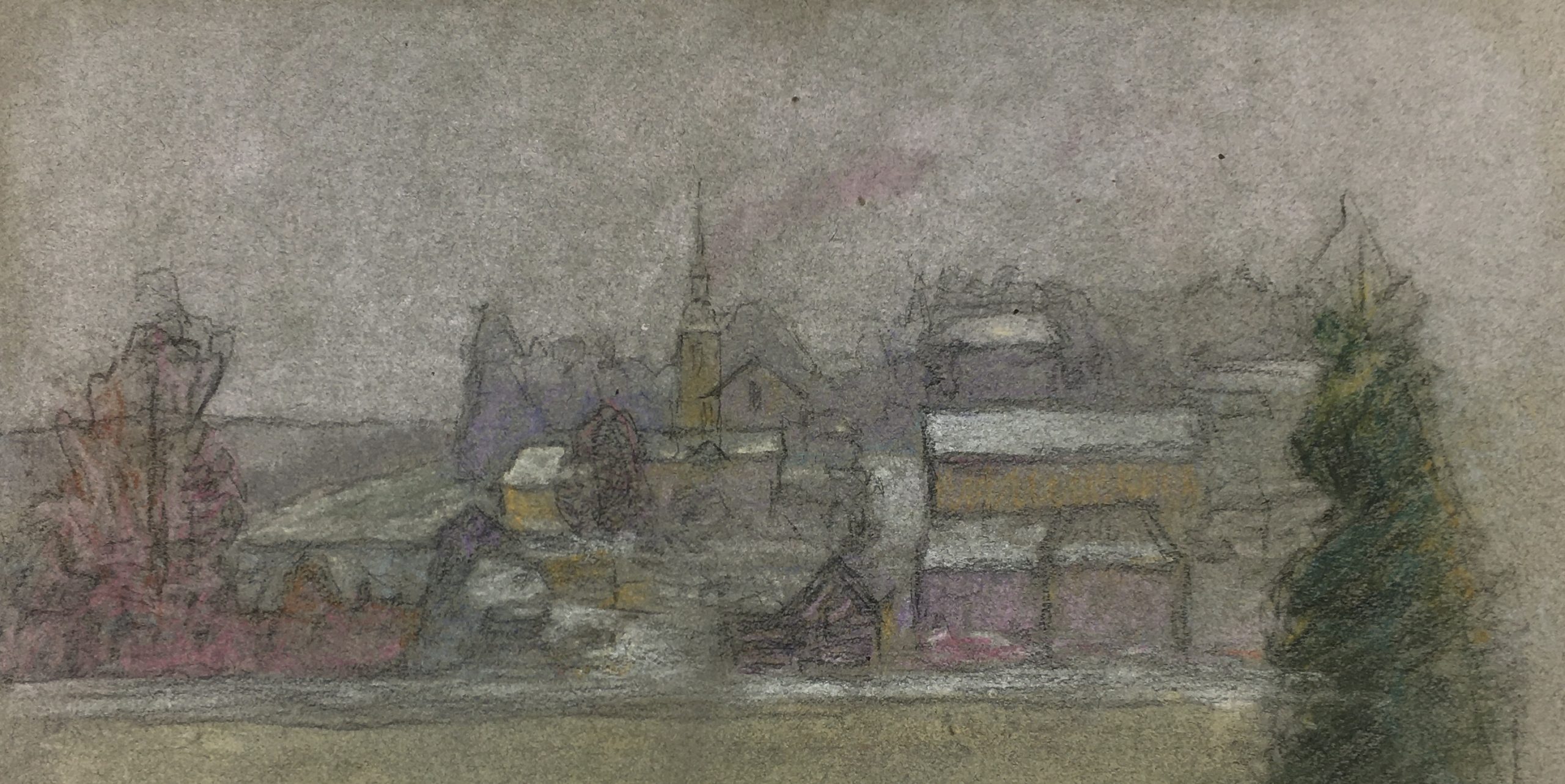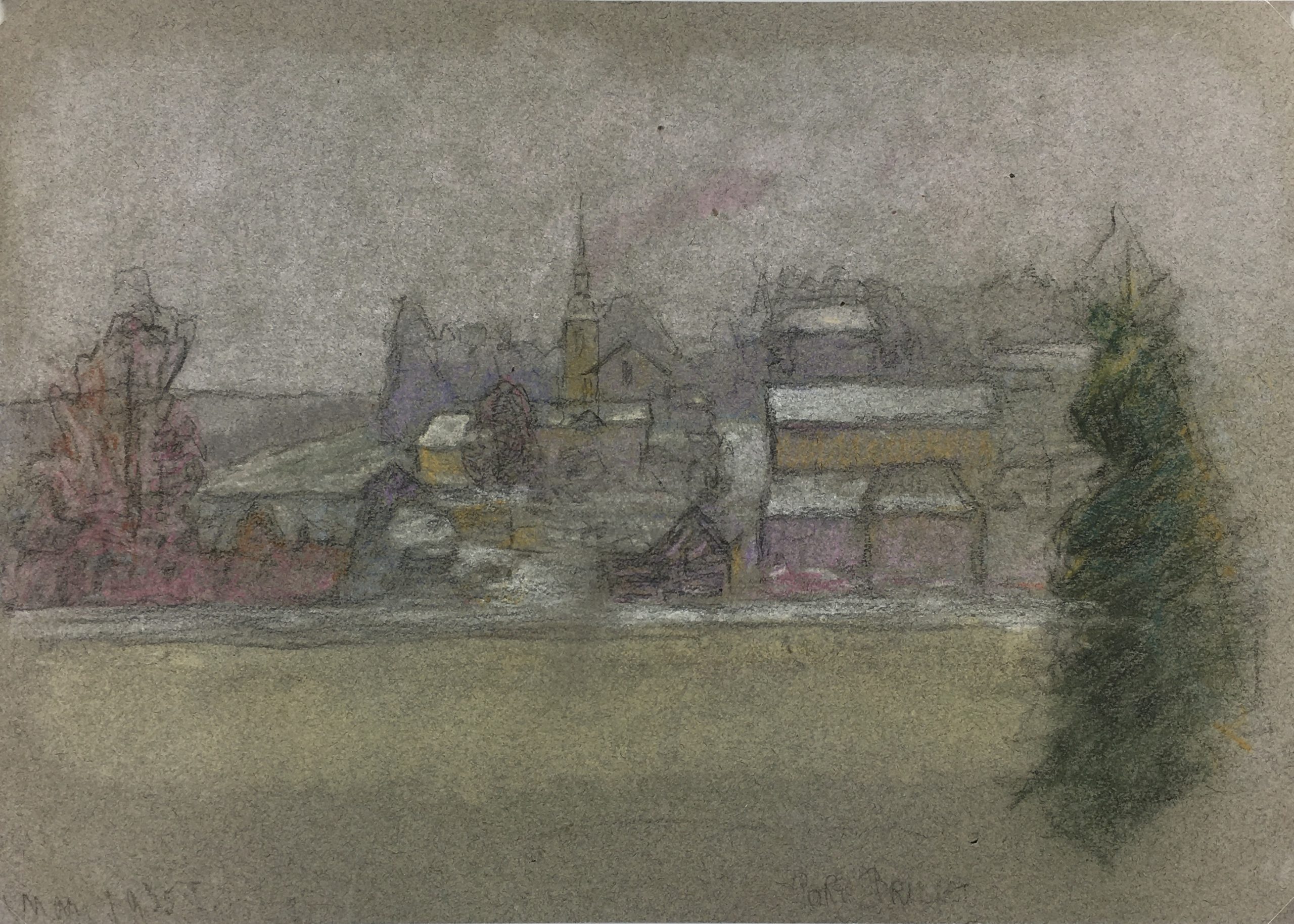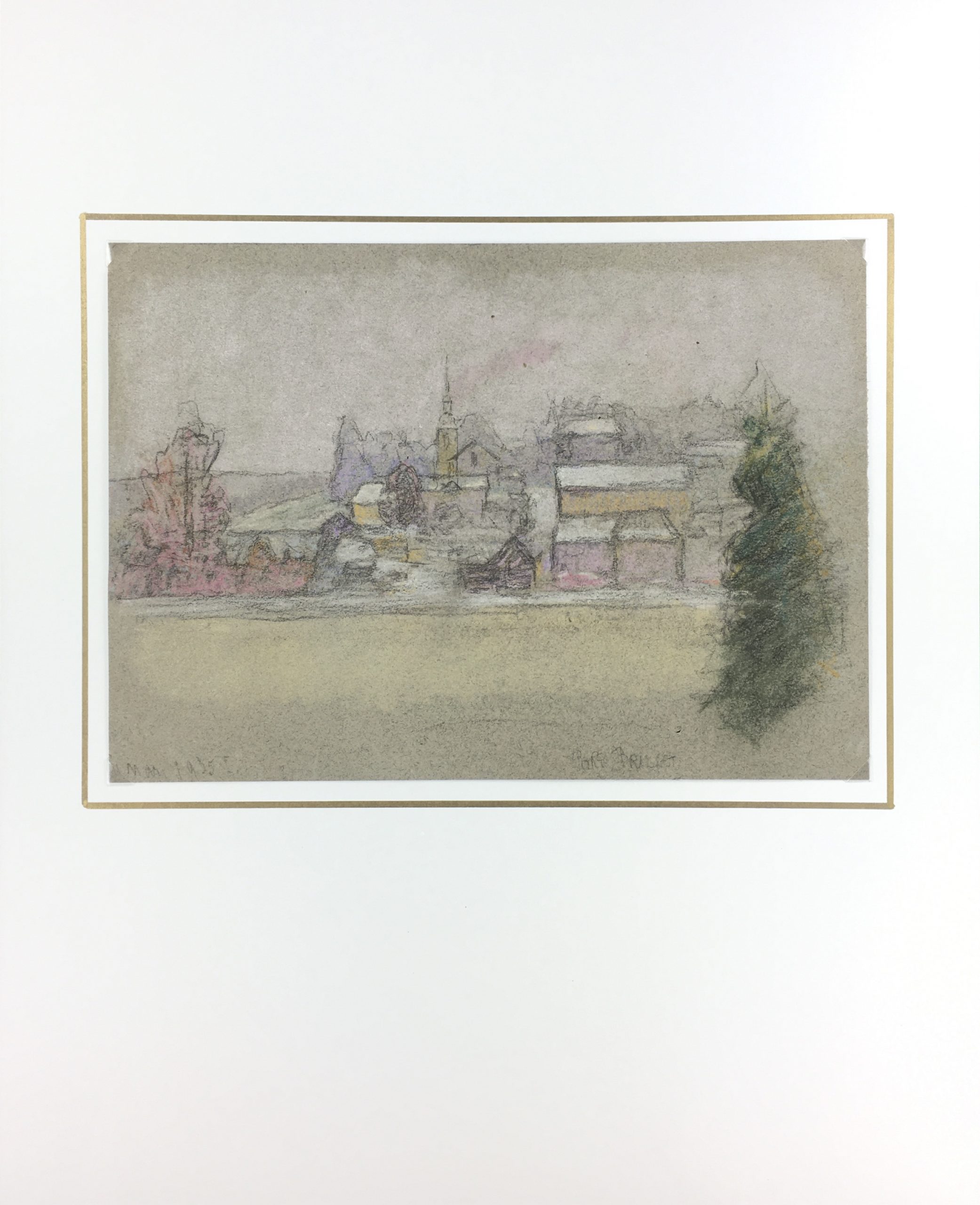 Original Art on paper displayed on a white mat with a gold border. Mat fits a standard-size frame. Archival plastic sleeve and Certificate of Authenticity included. Original Art, 12.5″W x 9″H; mat, 16″W x 20″H.
