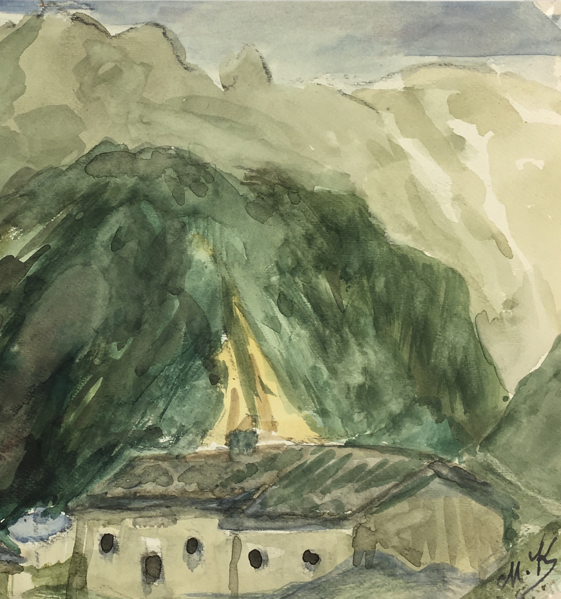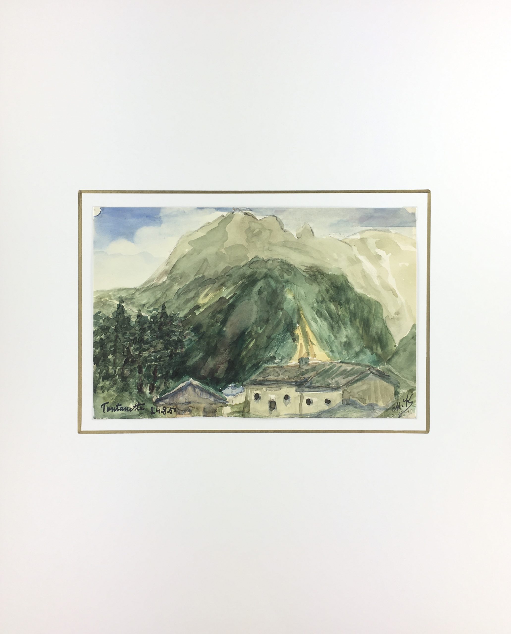 Original Art on paper displayed on a white mat with a gold border. Mat fits a standard-size frame. Archival plastic sleeve and Certificate of Authenticity included. Original Art, 10″W x 6.5″H; mat, 16″W x 20″H.