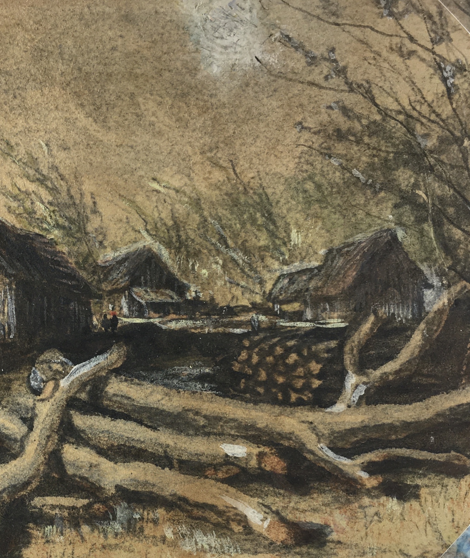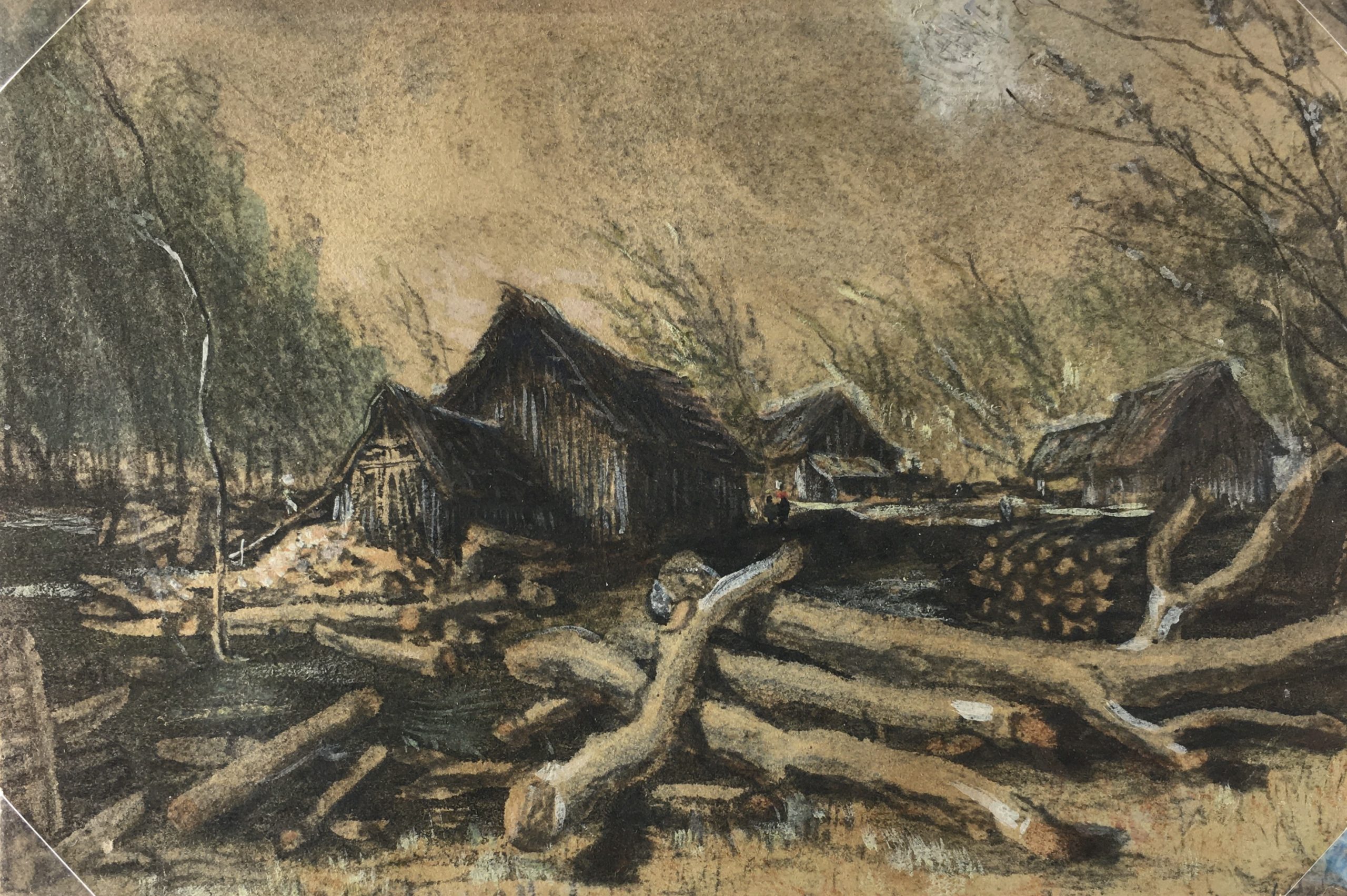 France Original Art – Winter Logging, c.1910