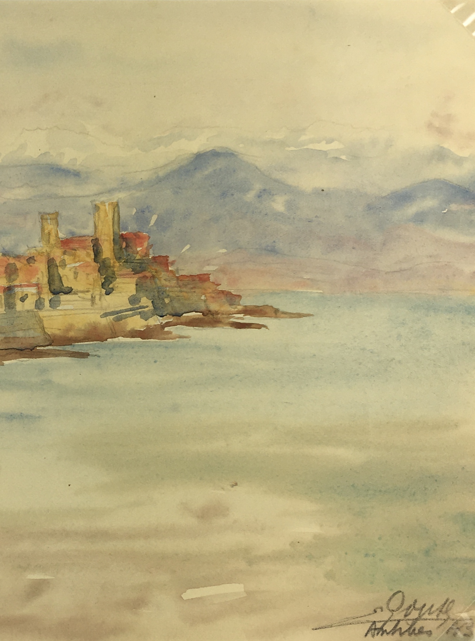 Original Art on paper displayed on a white mat with a gold border. Mat fits a standard-size frame. Archival plastic sleeve and Certificate of Authenticity included. Original Art, 11.5″W x 8.5″H; mat, 16″W x 20″H.