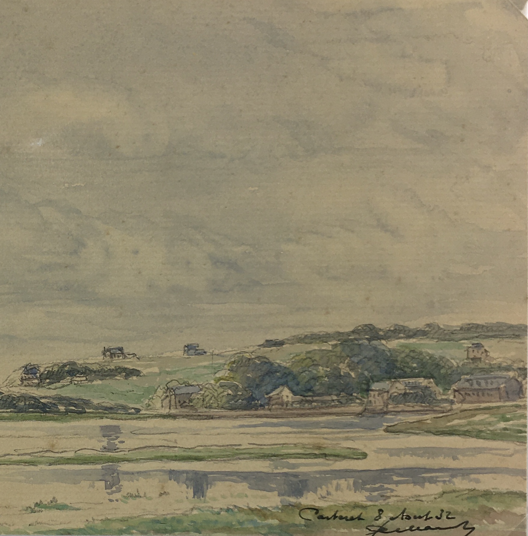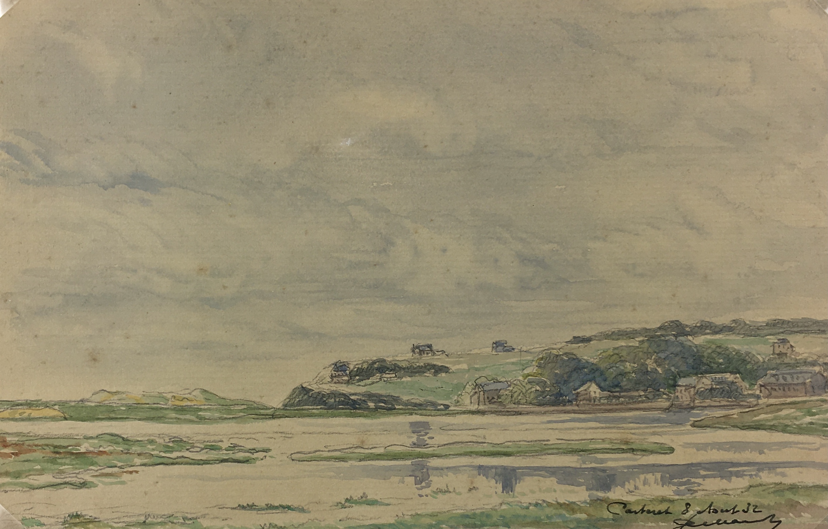 Original Art on paper displayed on a white mat with a gold border. Mat fits a standard-size frame. Archival plastic sleeve and Certificate of Authenticity included. Original Art, 6″W x 4.5″H; mat, 16″W x 20″H.