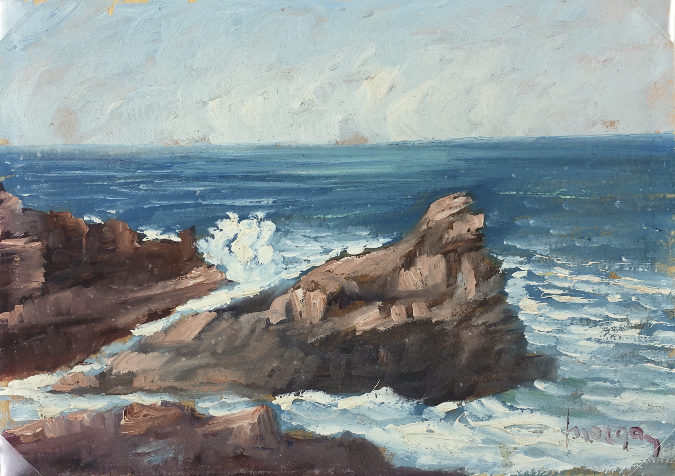 Coastal France Original Art – Crashing Waves, Signed, French, c.1910