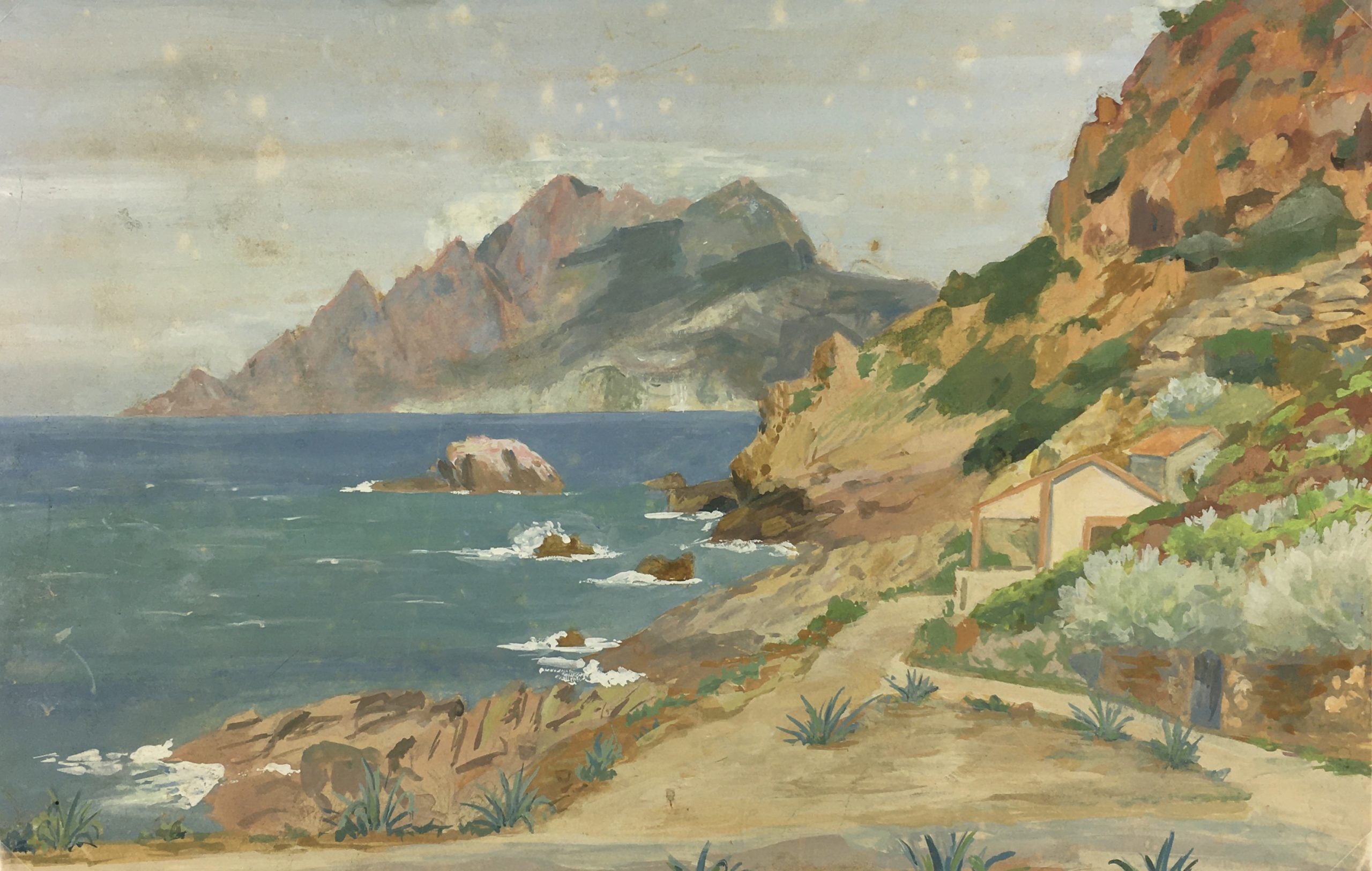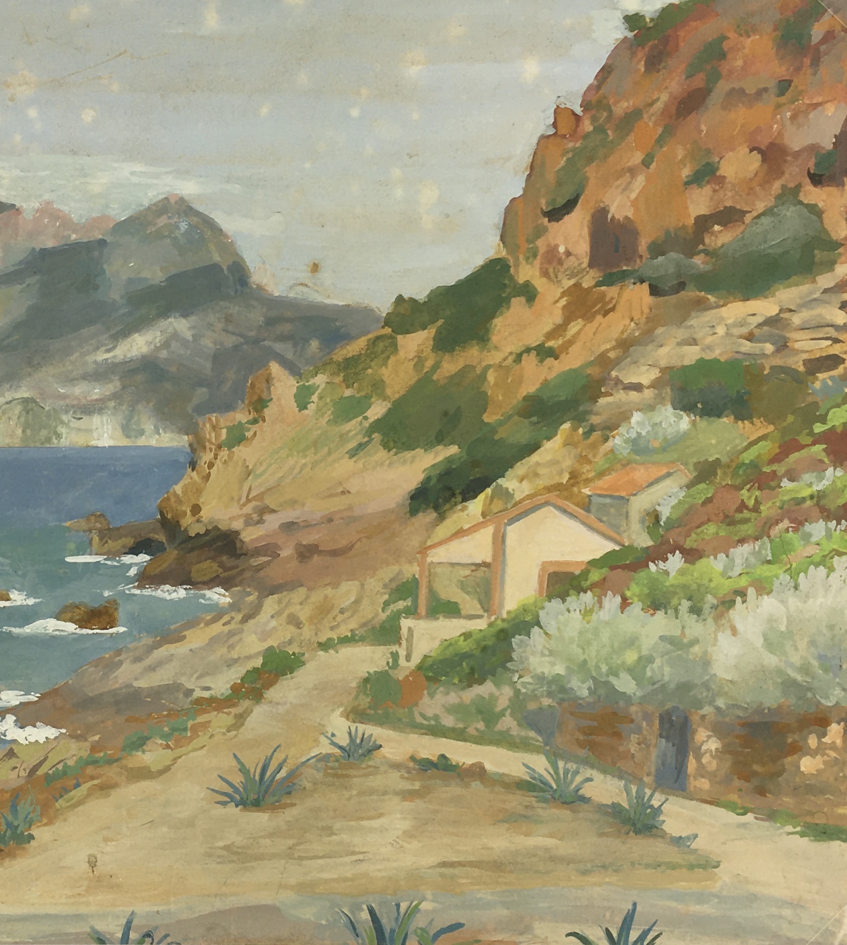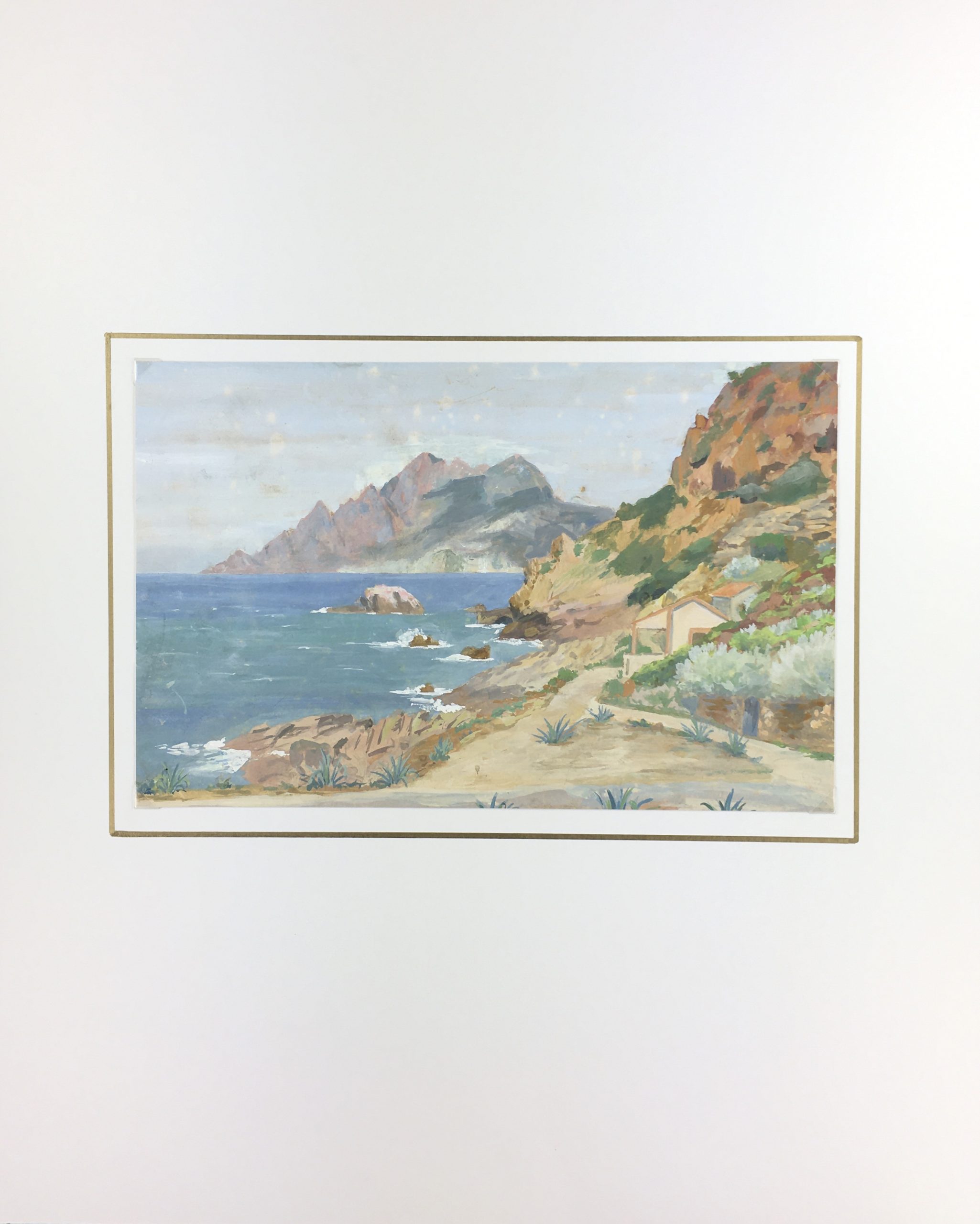 Original Art on paper displayed on a white mat with a gold border. Mat fits a standard-size frame. Archival plastic sleeve and Certificate of Authenticity included. Original Art, 11.25″W x 7.25″H; mat, 16″W x 20″H.