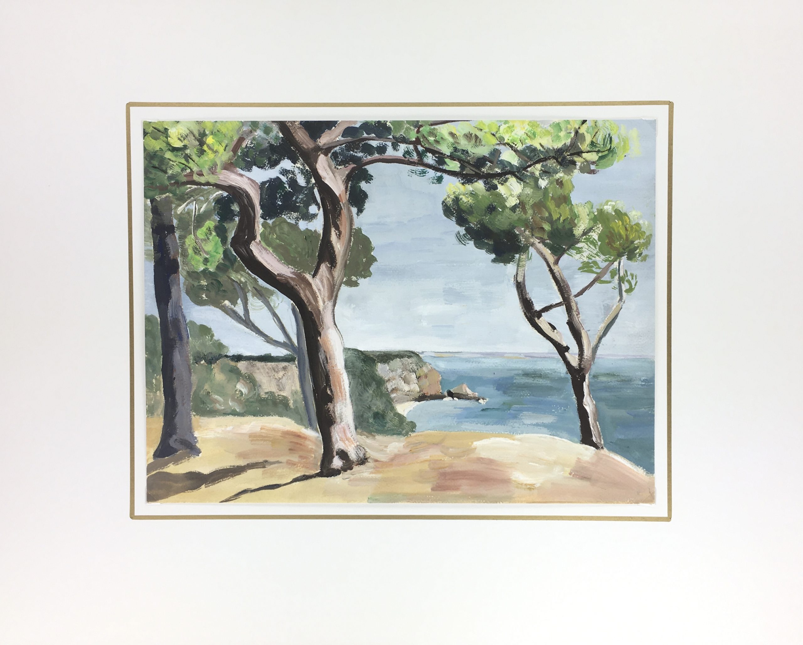 Original Art on paper displayed on a white mat with a gold border. Mat fits a standard-size frame. Archival plastic sleeve and Certificate of Authenticity included. Original Art, 12.5″W x 9.5″H; mat, 20″W x 16″H.