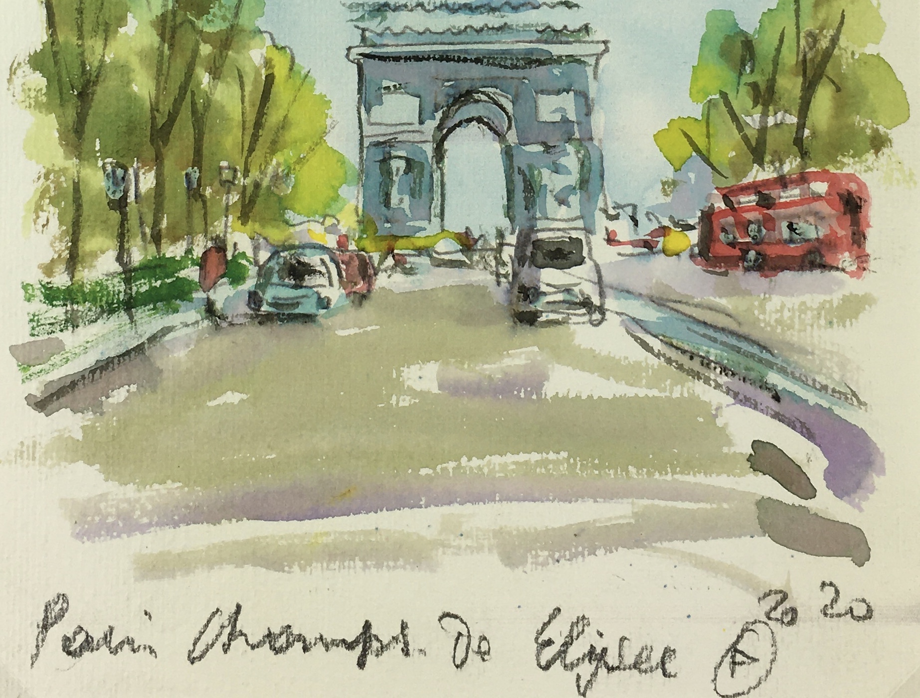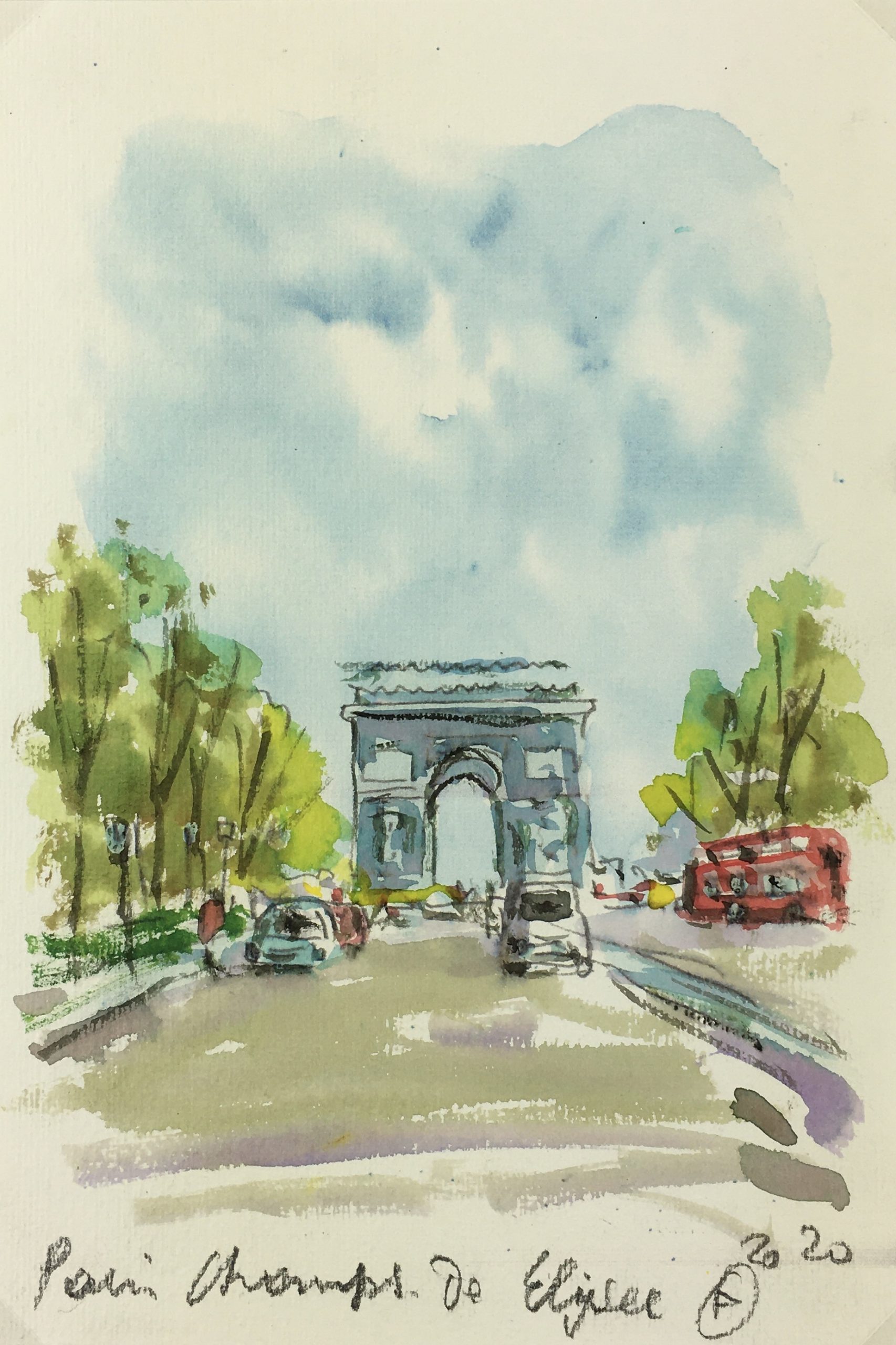 Paris, France Original Art – Champs-Élysées, Signed F, 2020
