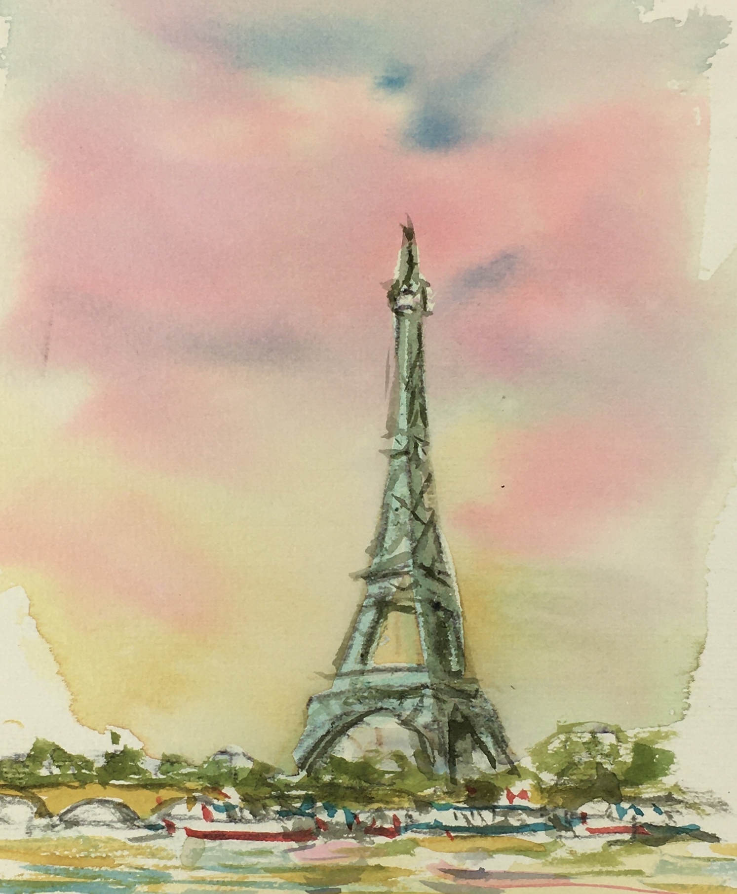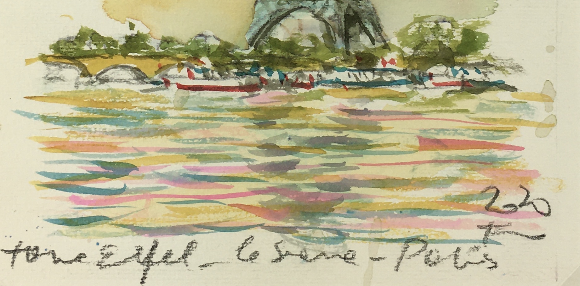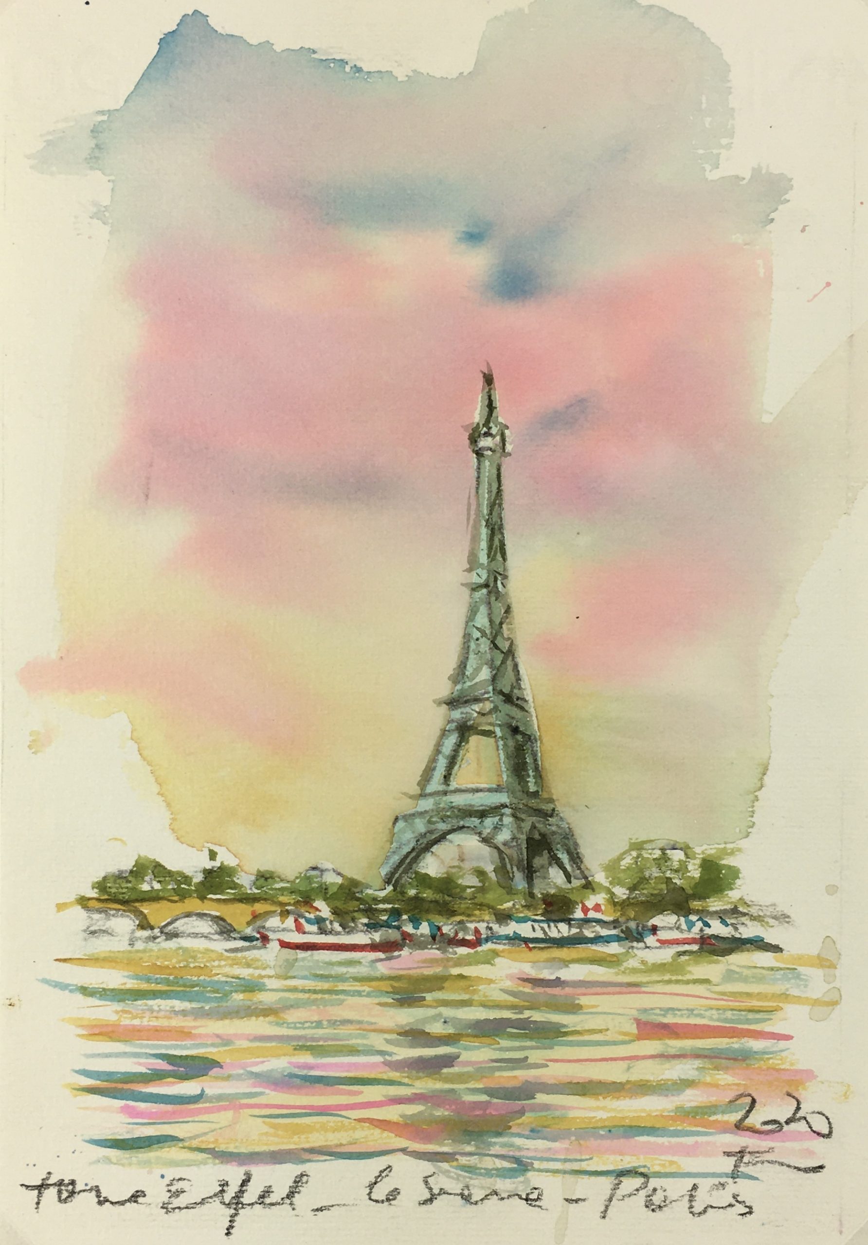 Original Art on paper displayed on a white mat with a gold border. Mat fits a standard-size frame. Archival plastic sleeve and Certificate of Authenticity included. Original Art, 5.5″W x 8″H; mat, 16″W x 20″H.