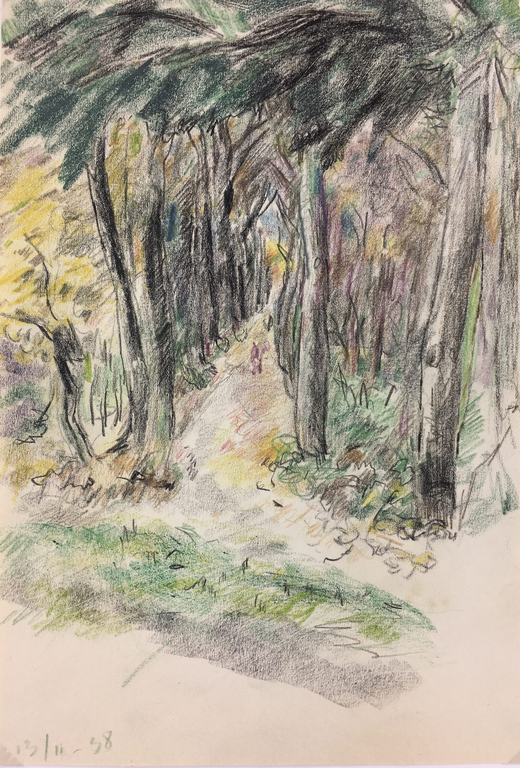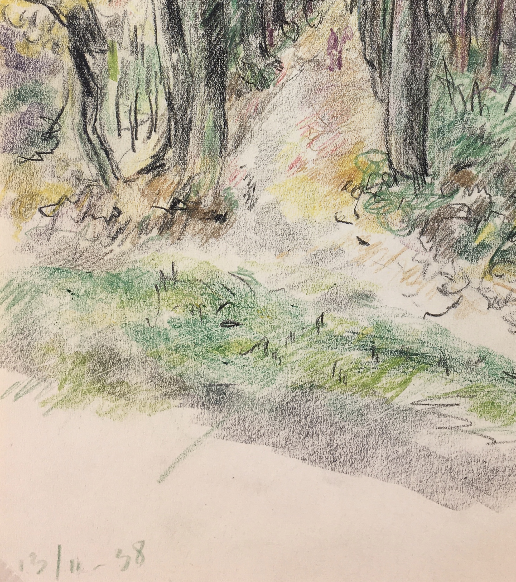 Original Art on paper displayed on a white mat with a gold border. Mat fits a standard-size frame. Archival plastic sleeve and Certificate of Authenticity included. Original Art, 8″W x 12″H; mat, 16″W x 20″H.