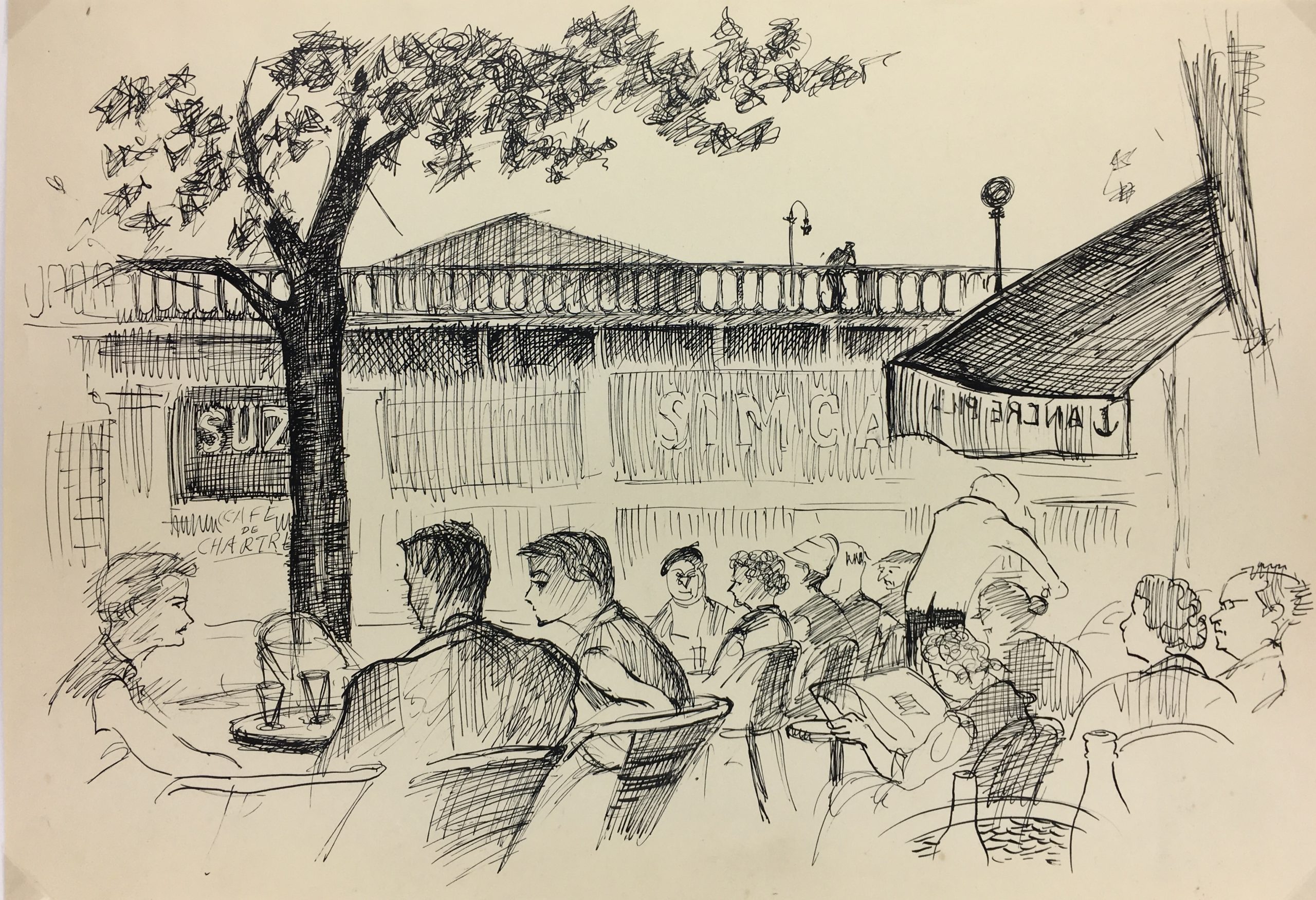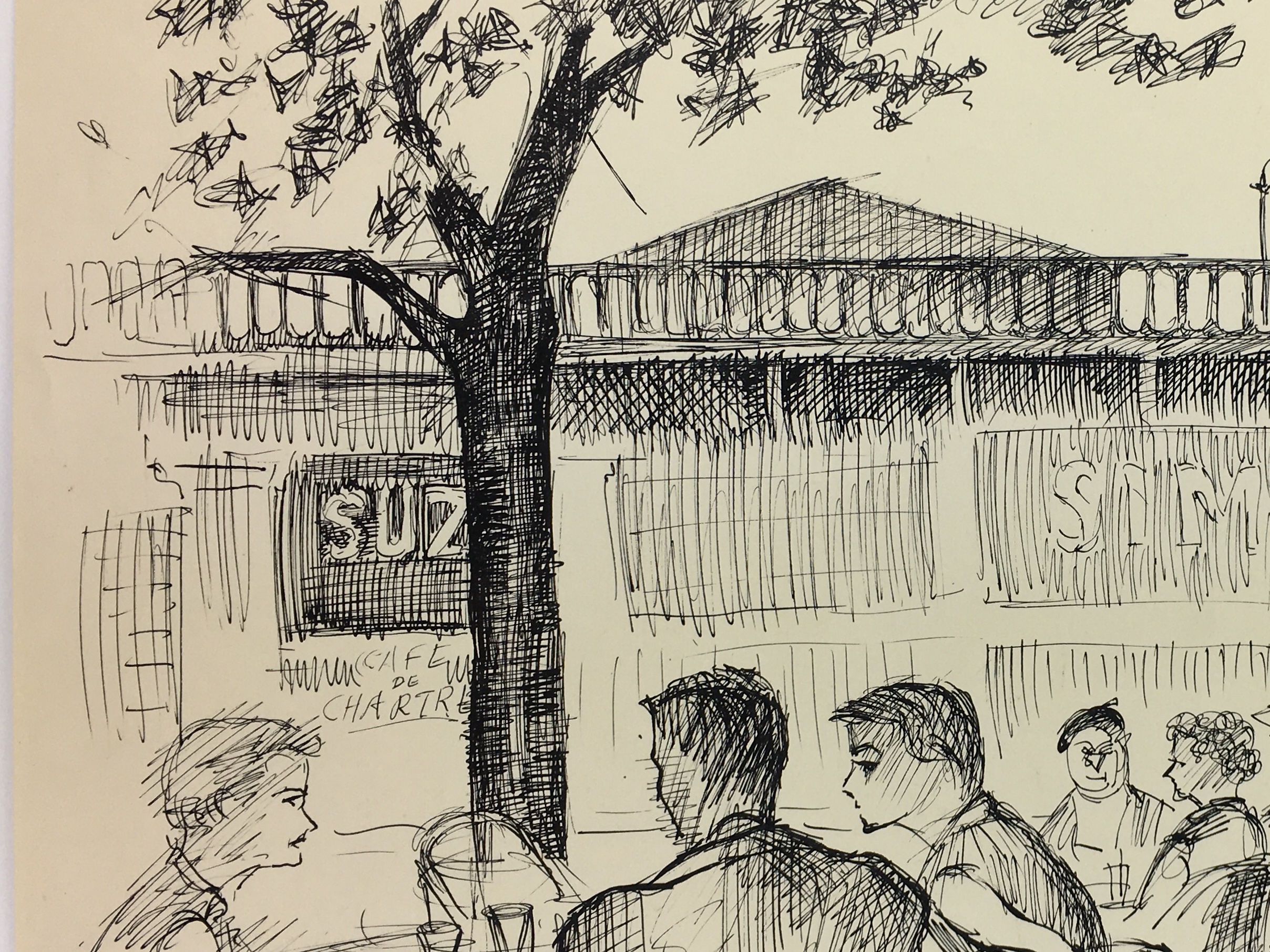 Original Art on paper displayed on a white mat with a gold border. Mat fits a standard-size frame. Archival plastic sleeve and Certificate of Authenticity included. Original Art, 16.25″W x 11.25″H; mat, 24″W x 18″H.