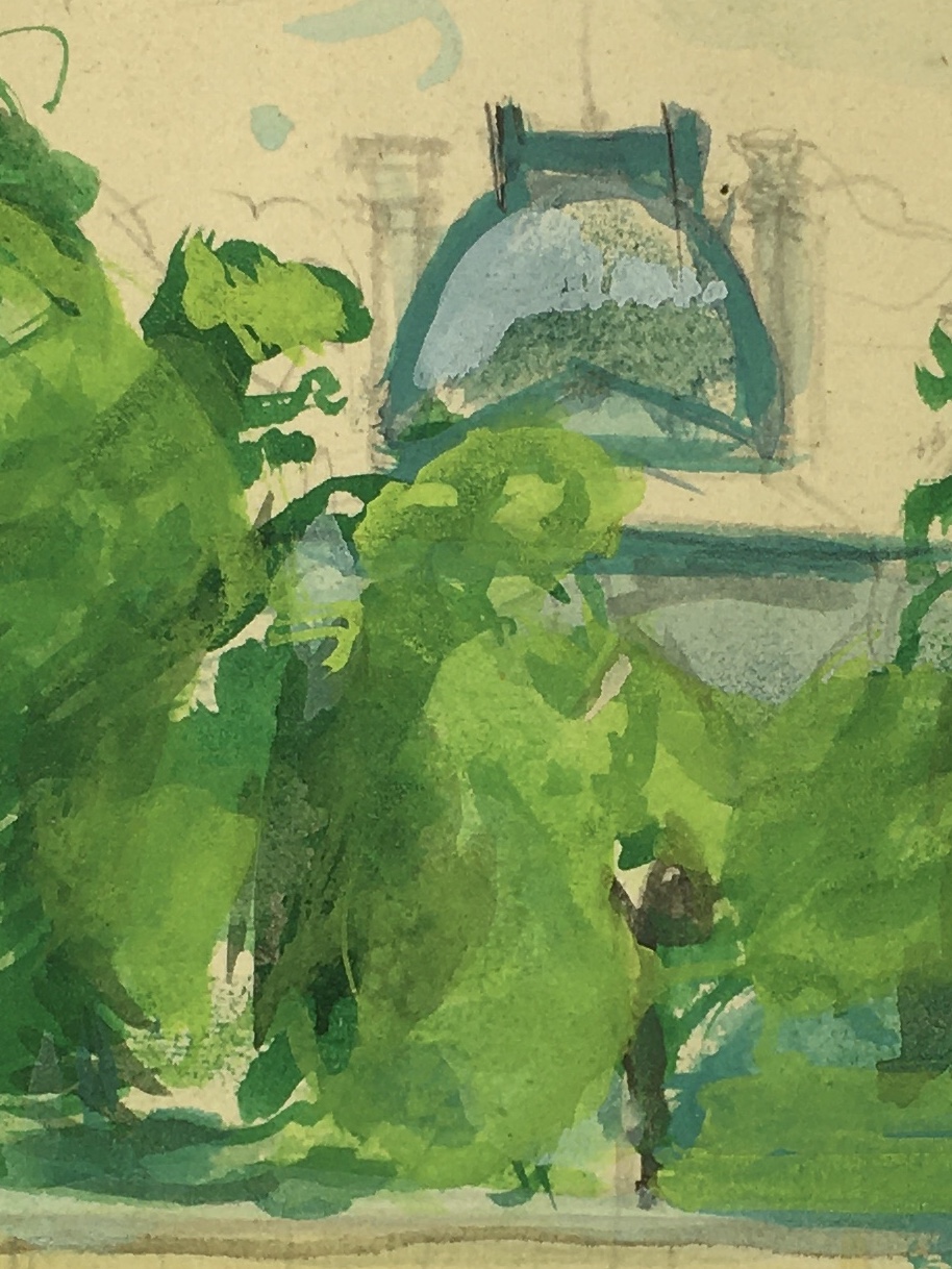 Original Art on paper displayed on a white mat with a gold border. Mat fits a standard-size frame. Archival plastic sleeve and Certificate of Authenticity included. Original Art, 4.75″W x 5″H; mat, 16″W x 20″H.
