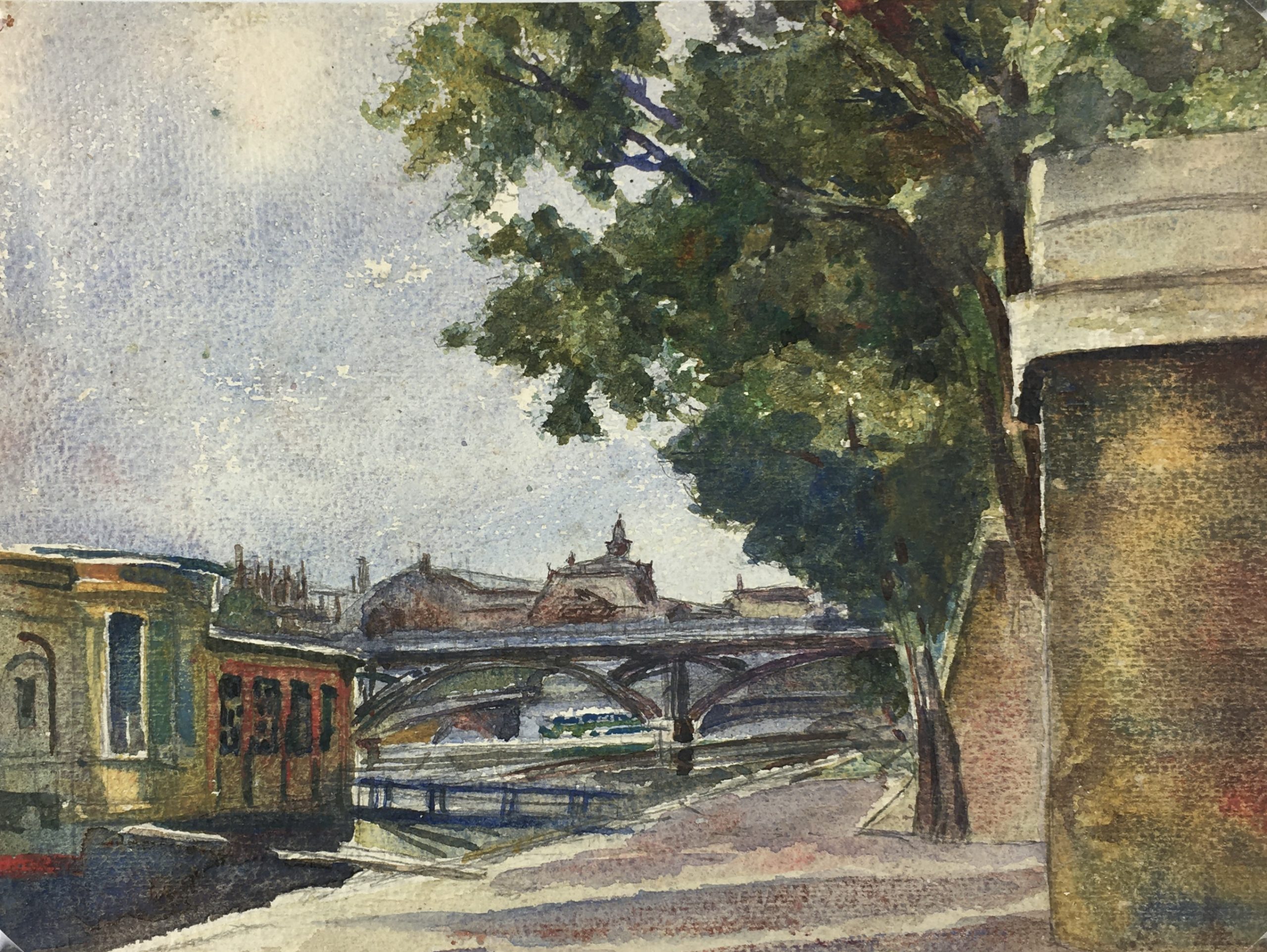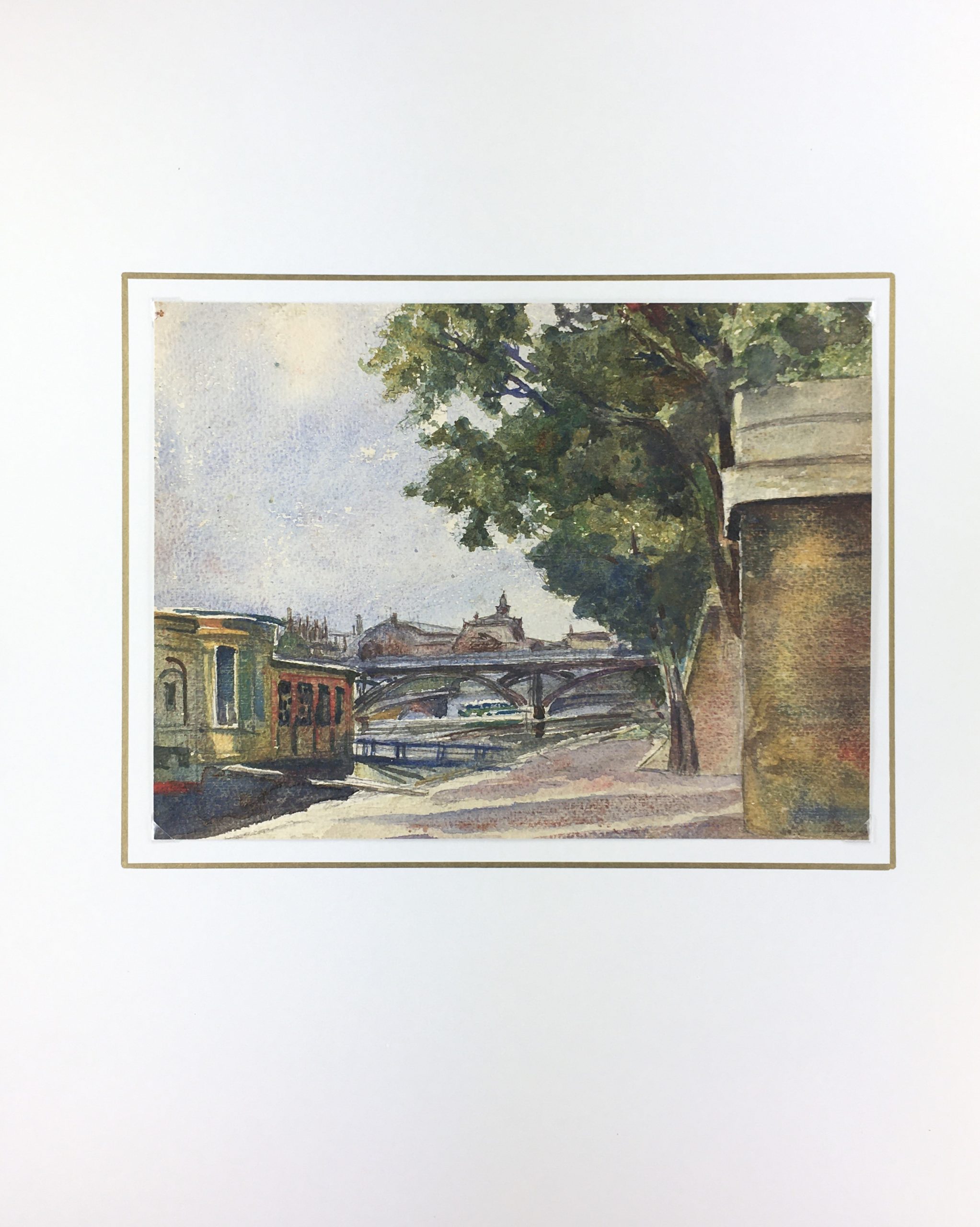 Original Art on paper displayed on a white mat with a gold border. Mat fits a standard-size frame. Archival plastic sleeve and Certificate of Authenticity included. Original Art, 11″W x 8.25″H; mat, 16″W x 20″H.