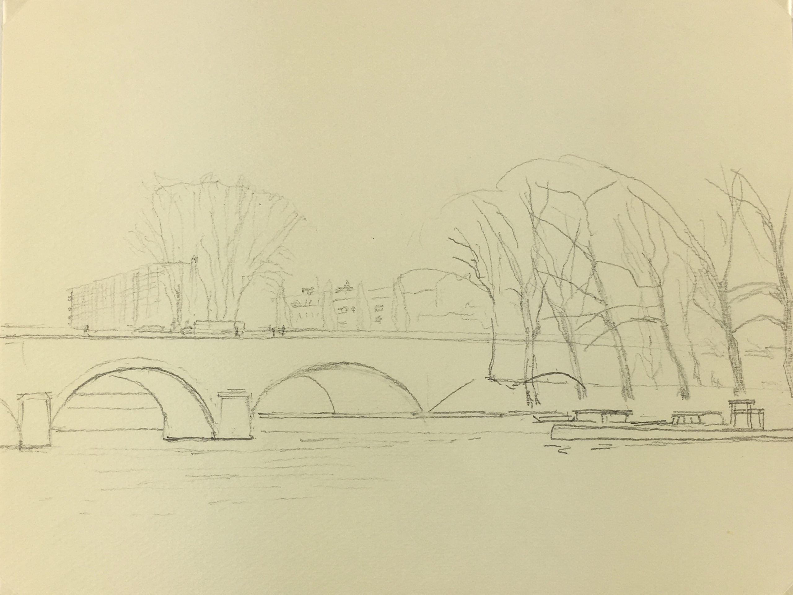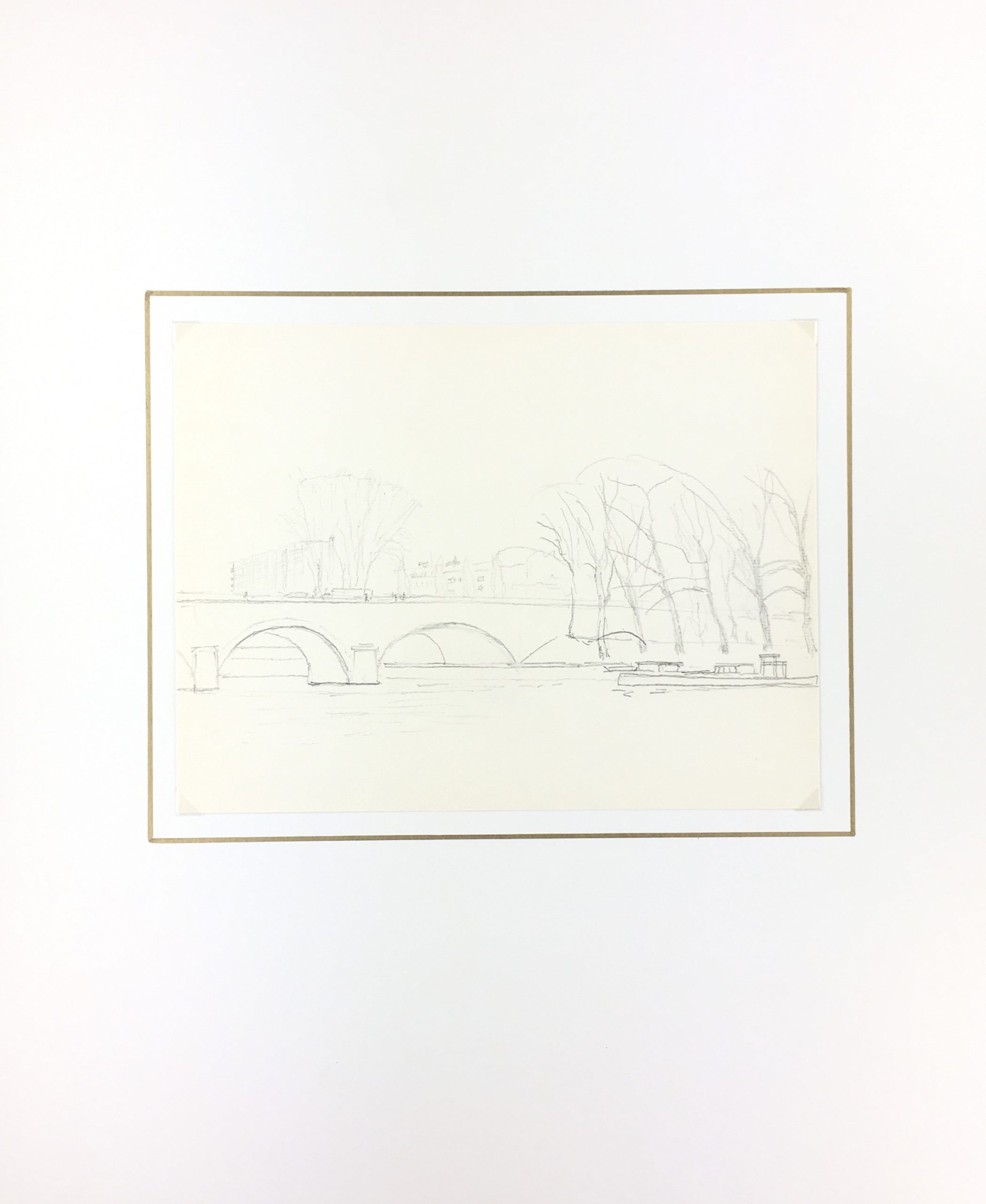 Original Art on paper displayed on a white mat with a gold border. Mat fits a standard-size frame. Archival plastic sleeve and Certificate of Authenticity included. Original Art, 10.25″W x 8″H; mat, 16″W x 20″H.