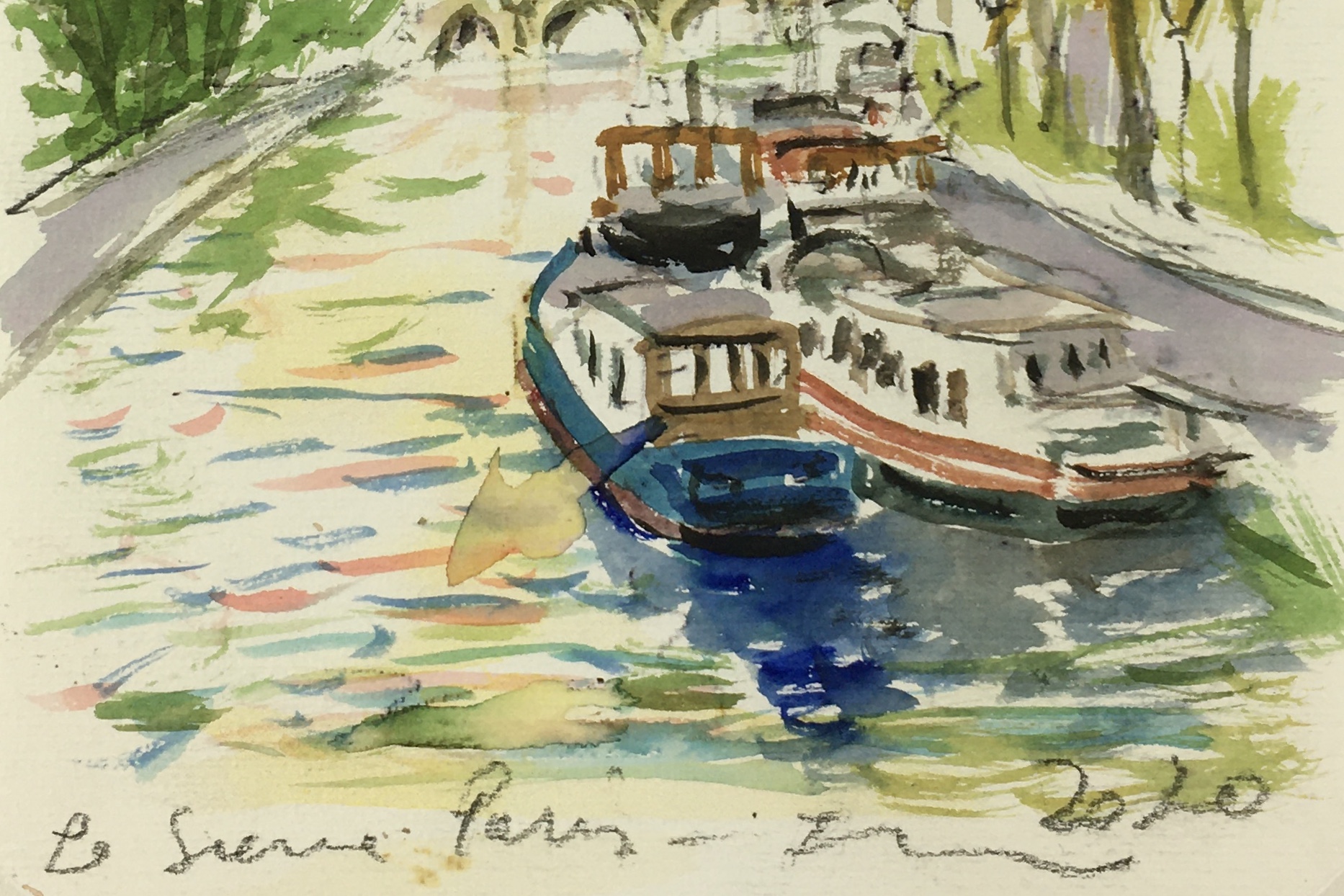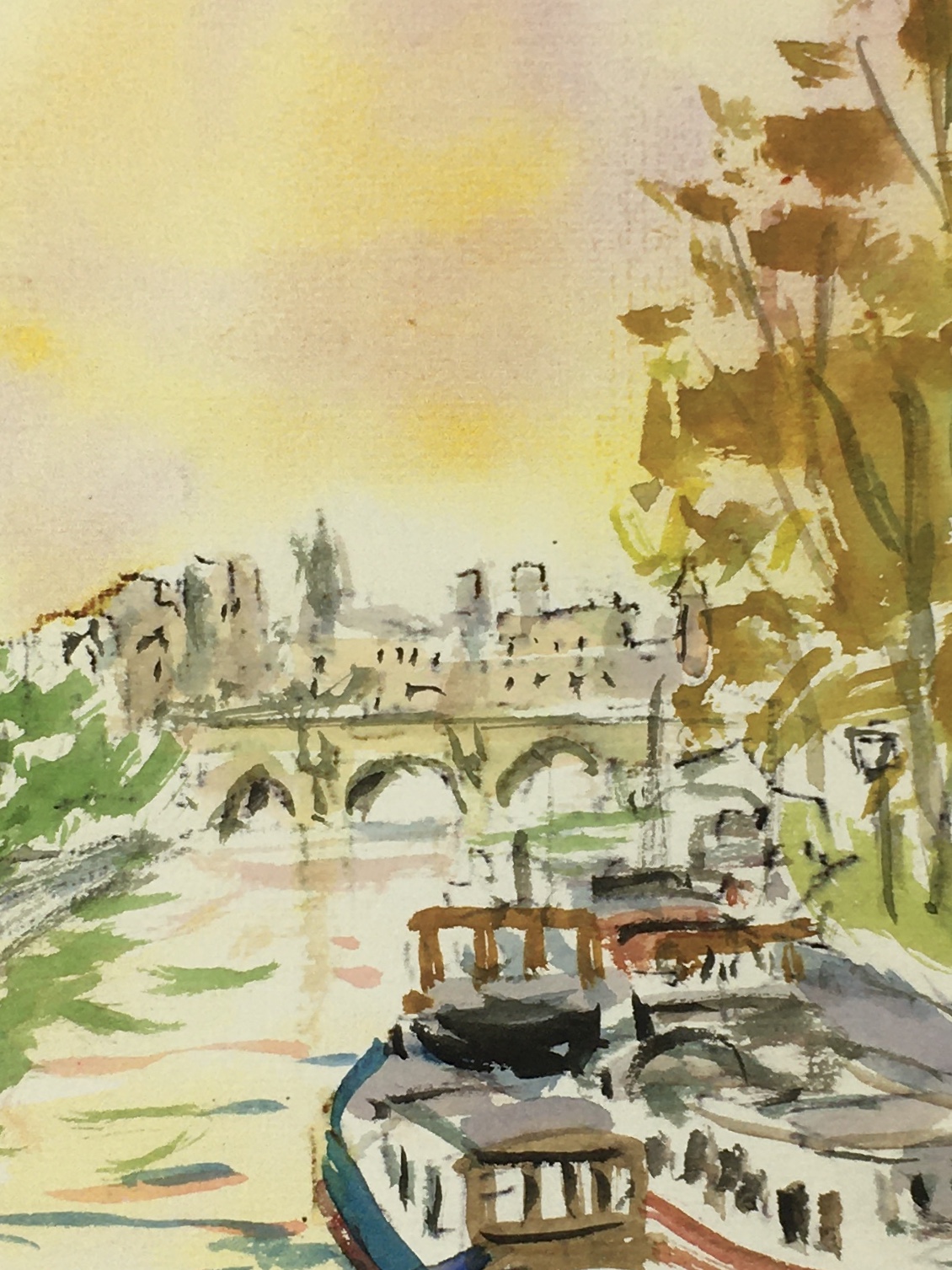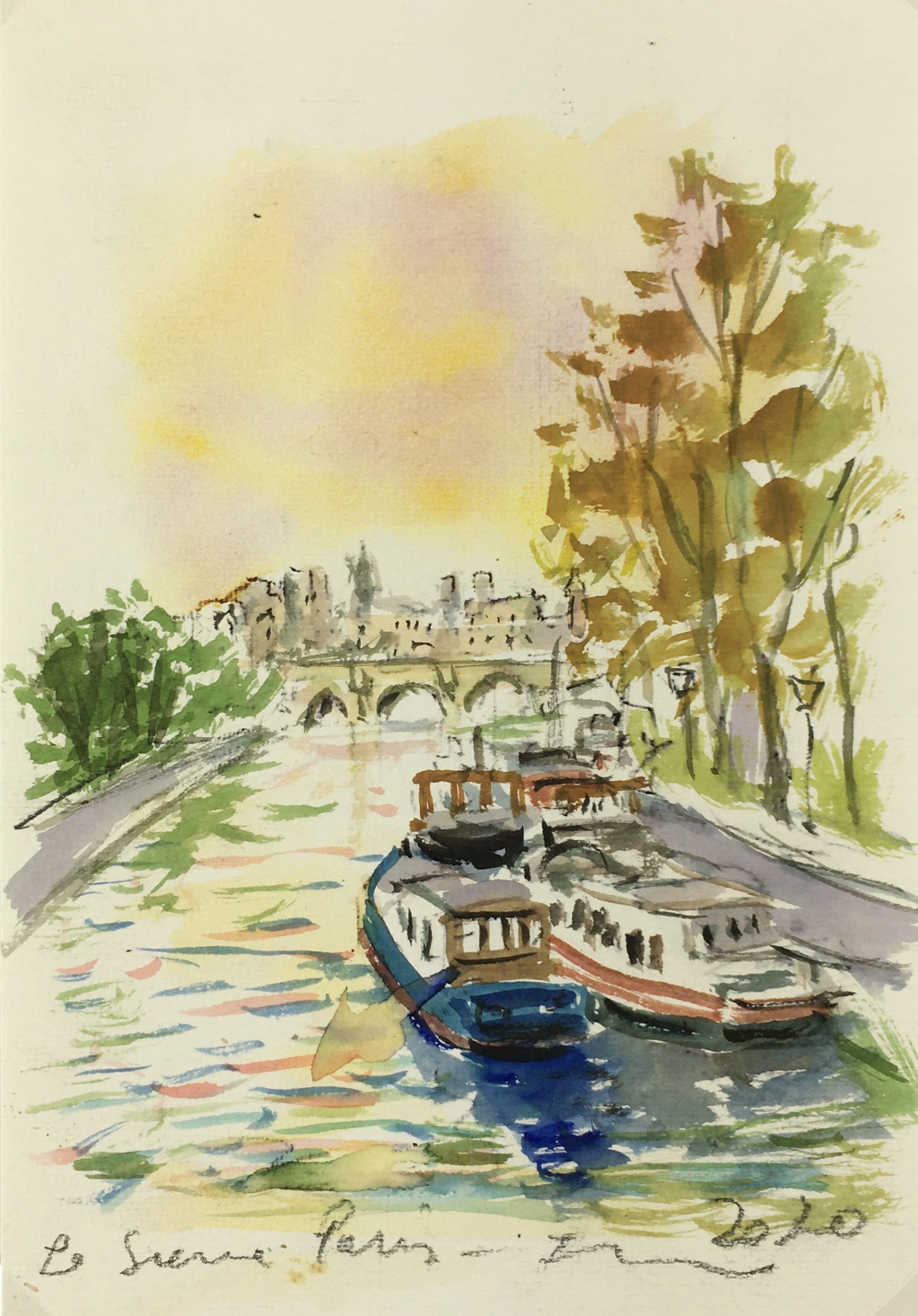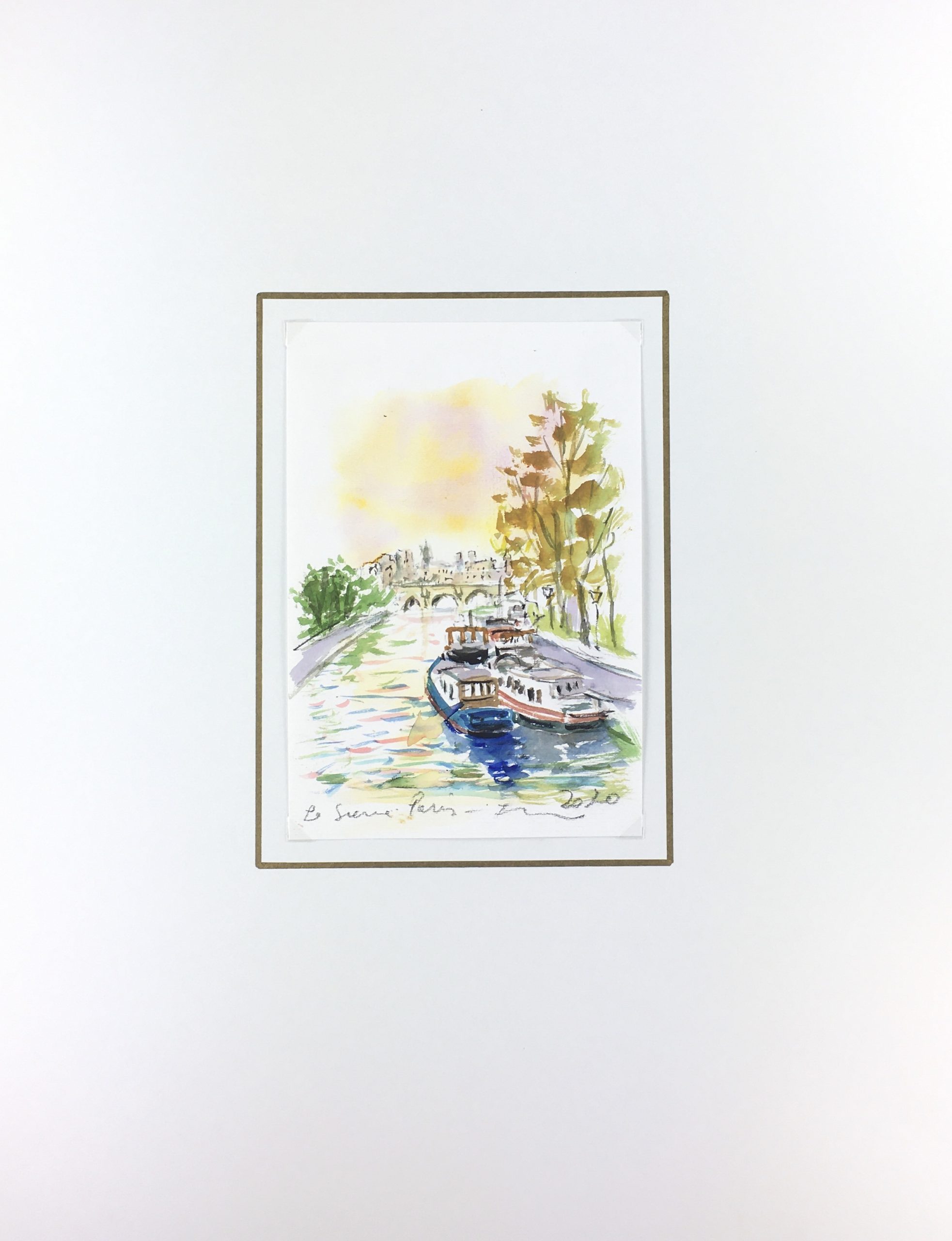 Original Art on paper displayed on a white mat with a gold border. Mat fits a standard-size frame. Archival plastic sleeve and Certificate of Authenticity included. Original Art, 5.5″W x 8″H; mat, 16″W x 20″H.
