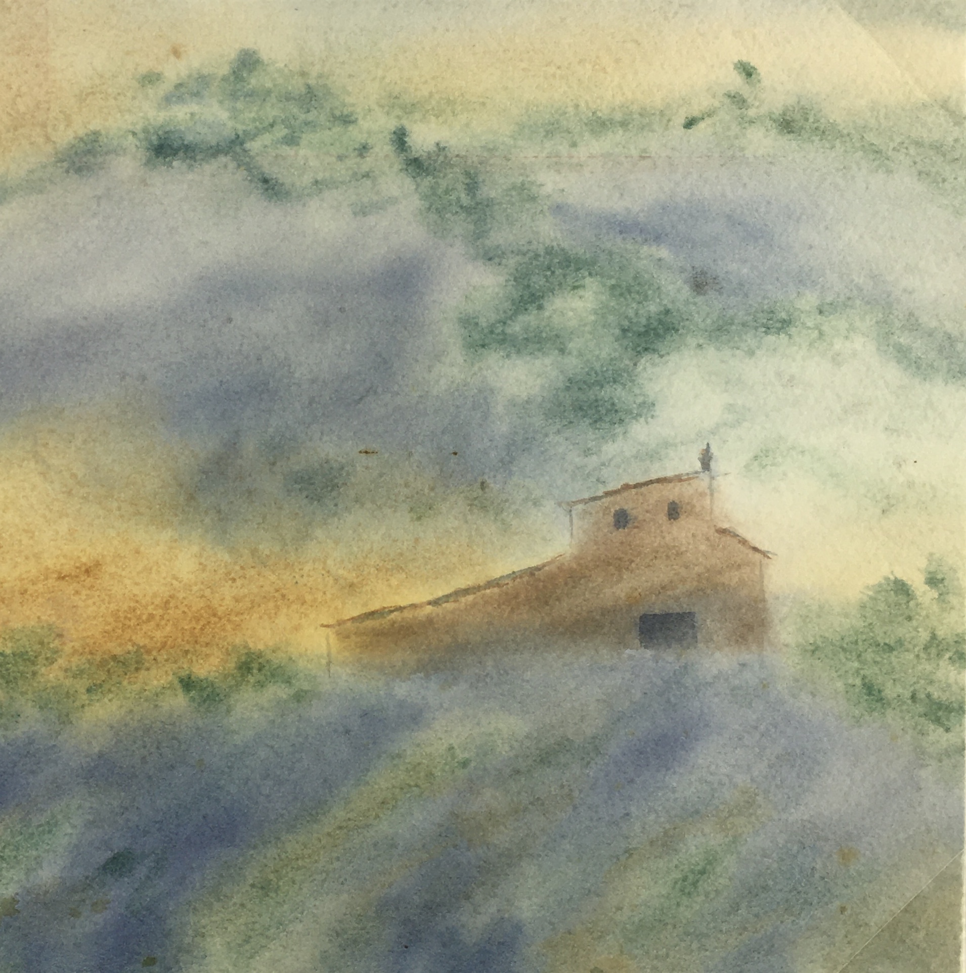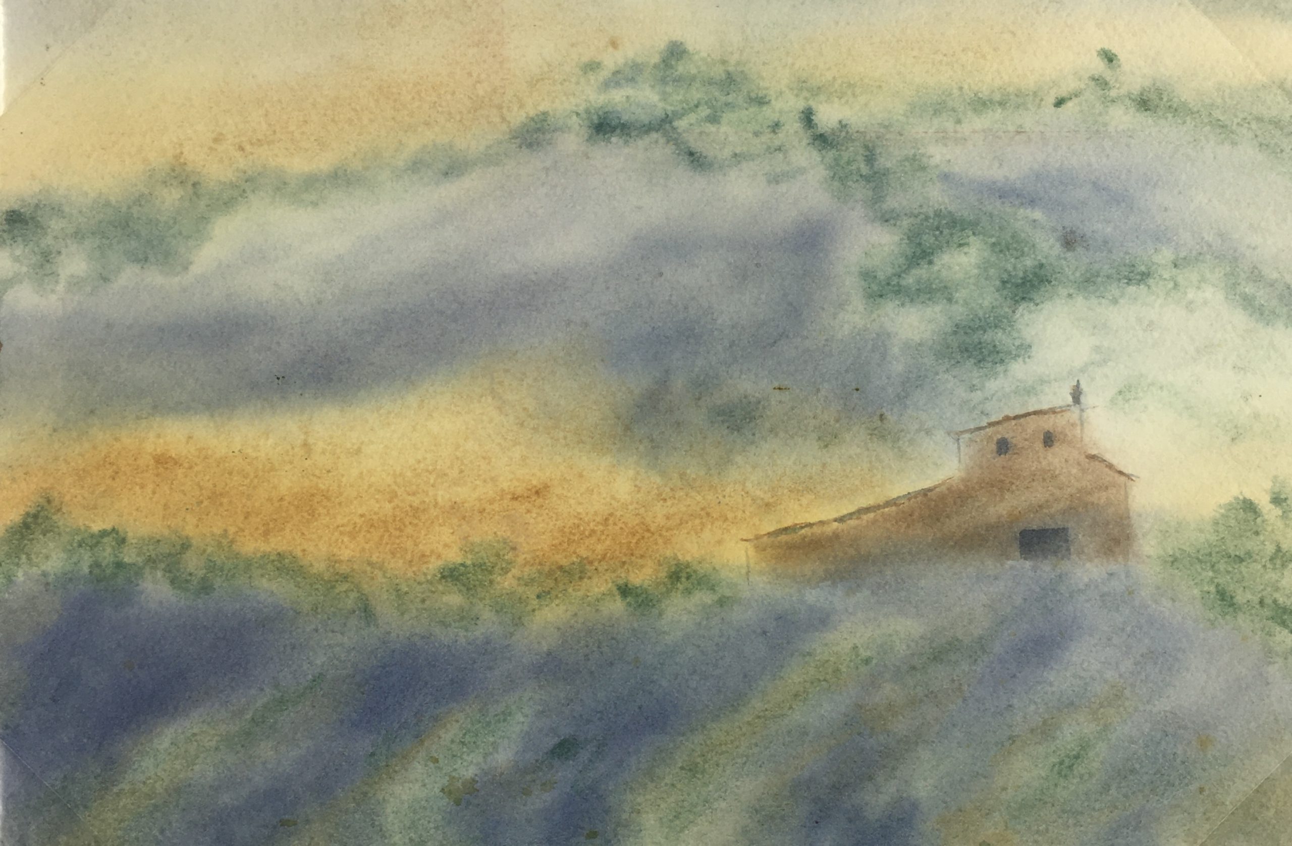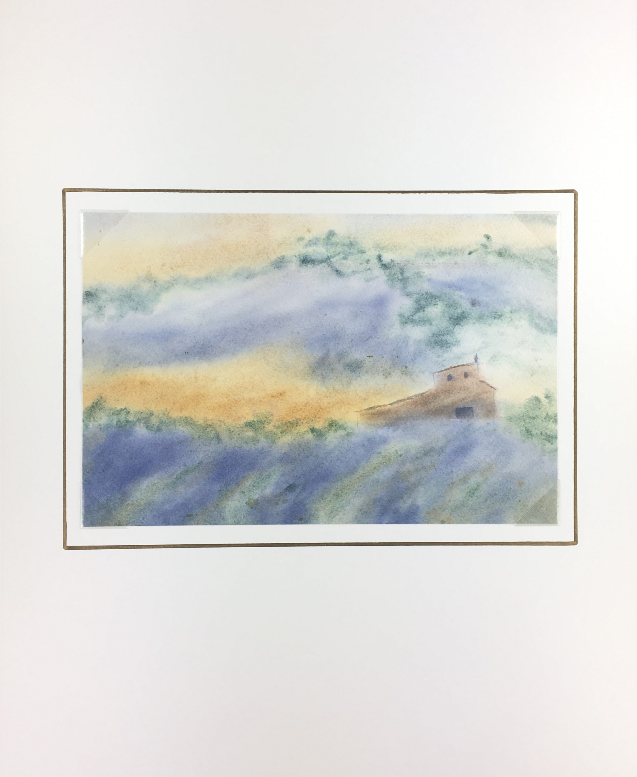 Original Art on paper displayed on a white mat with a gold border. Mat fits a standard-size frame. Archival plastic sleeve and Certificate of Authenticity included. Original Art, 12.25″W x 8″H; mat, 20″W x 16″H.