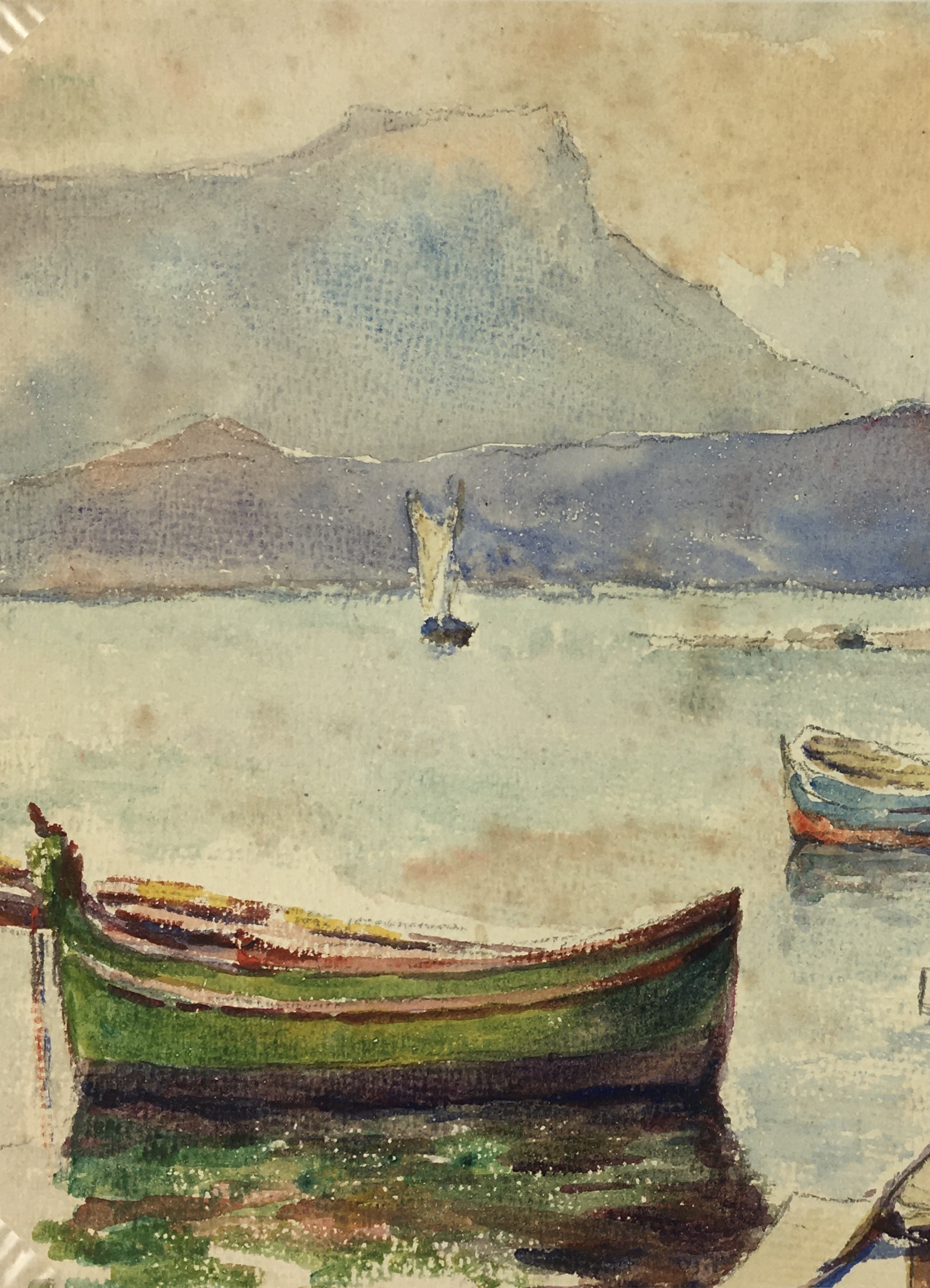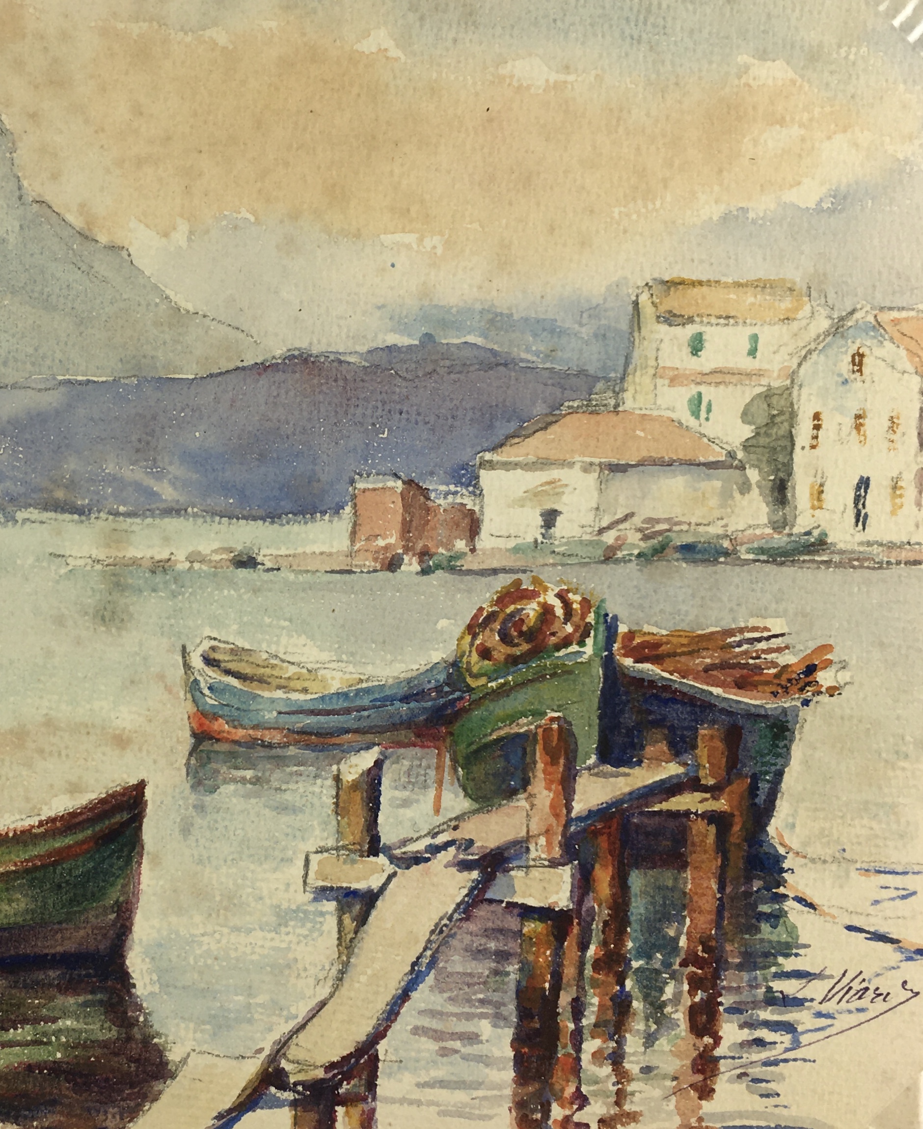 Original Art on paper displayed on a white mat with a gold border. Mat fits a standard-size frame. Archival plastic sleeve and Certificate of Authenticity included. Original Art, 11.75″W x 9.25″H; mat, 16″W x 20″H.