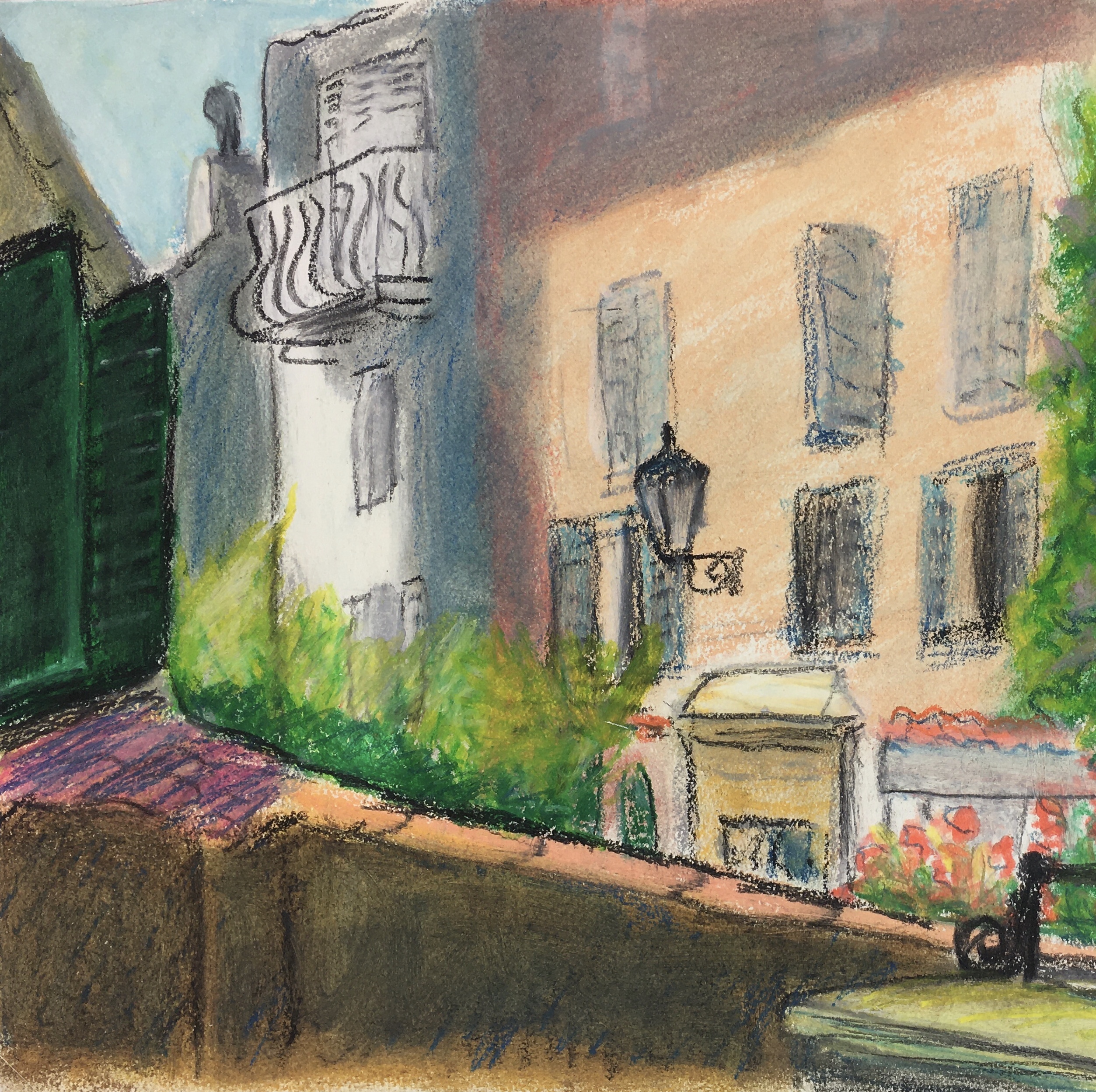 Original Art on paper displayed on a white mat with a gold border. Mat fits a standard-size frame. Archival plastic sleeve and Certificate of Authenticity included. Original Art, 14.5″W x 9.5″H; mat, 20″W x 16″H.
