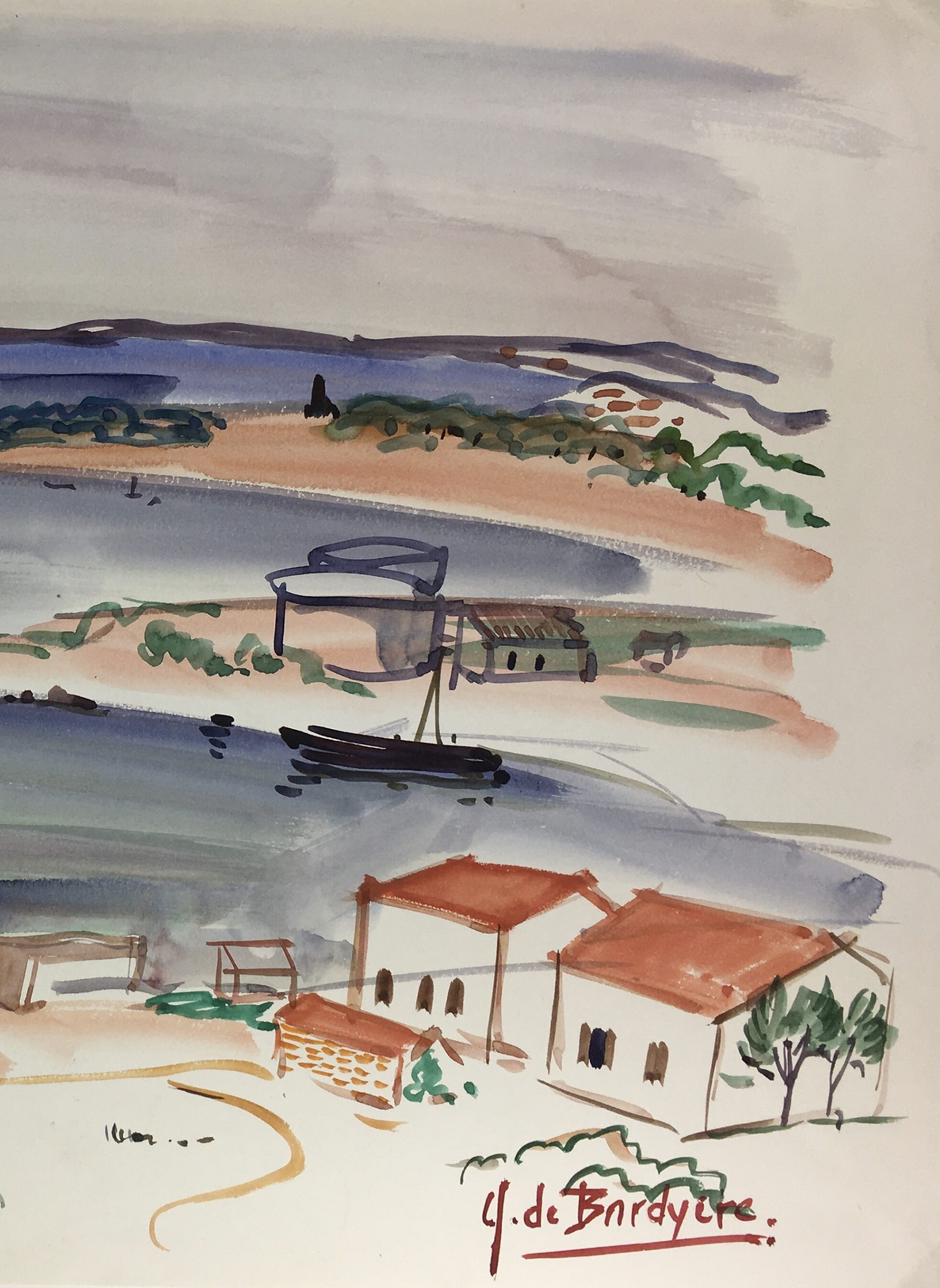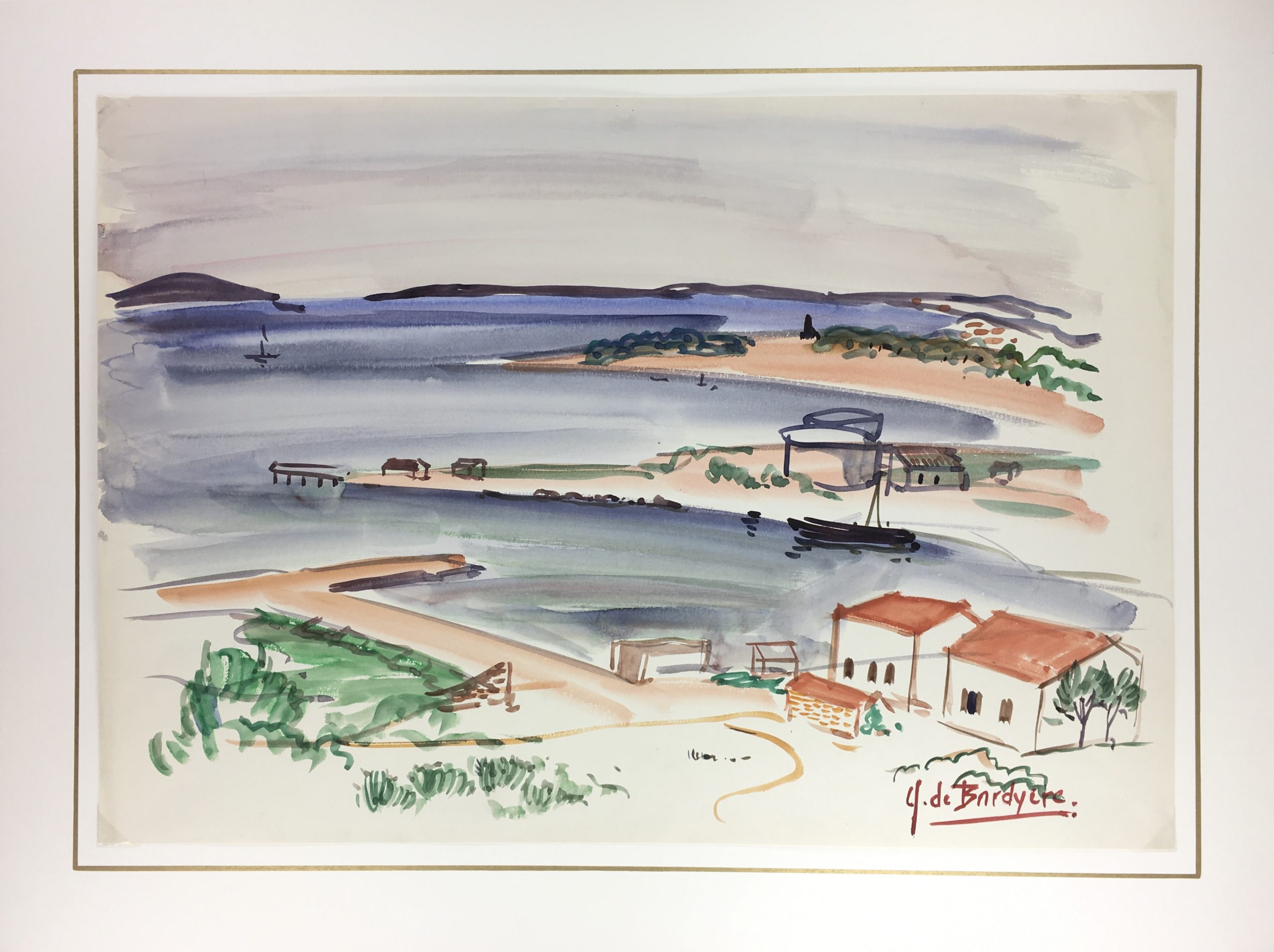 Original Art on paper displayed on a white mat with a gold border. Mat fits a standard-size frame. Archival plastic sleeve and Certificate of Authenticity included. Original Art, 20″W x 14″H; mat, 24″W x 18″H.