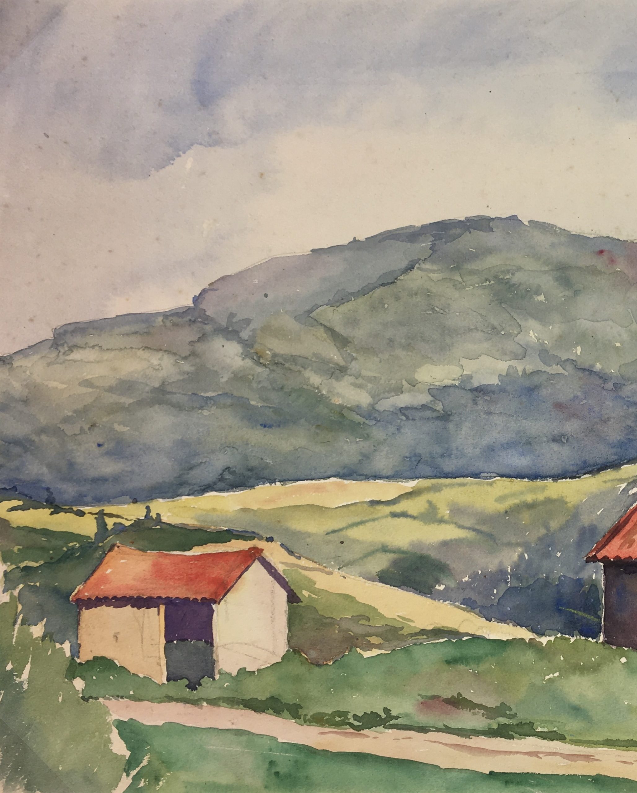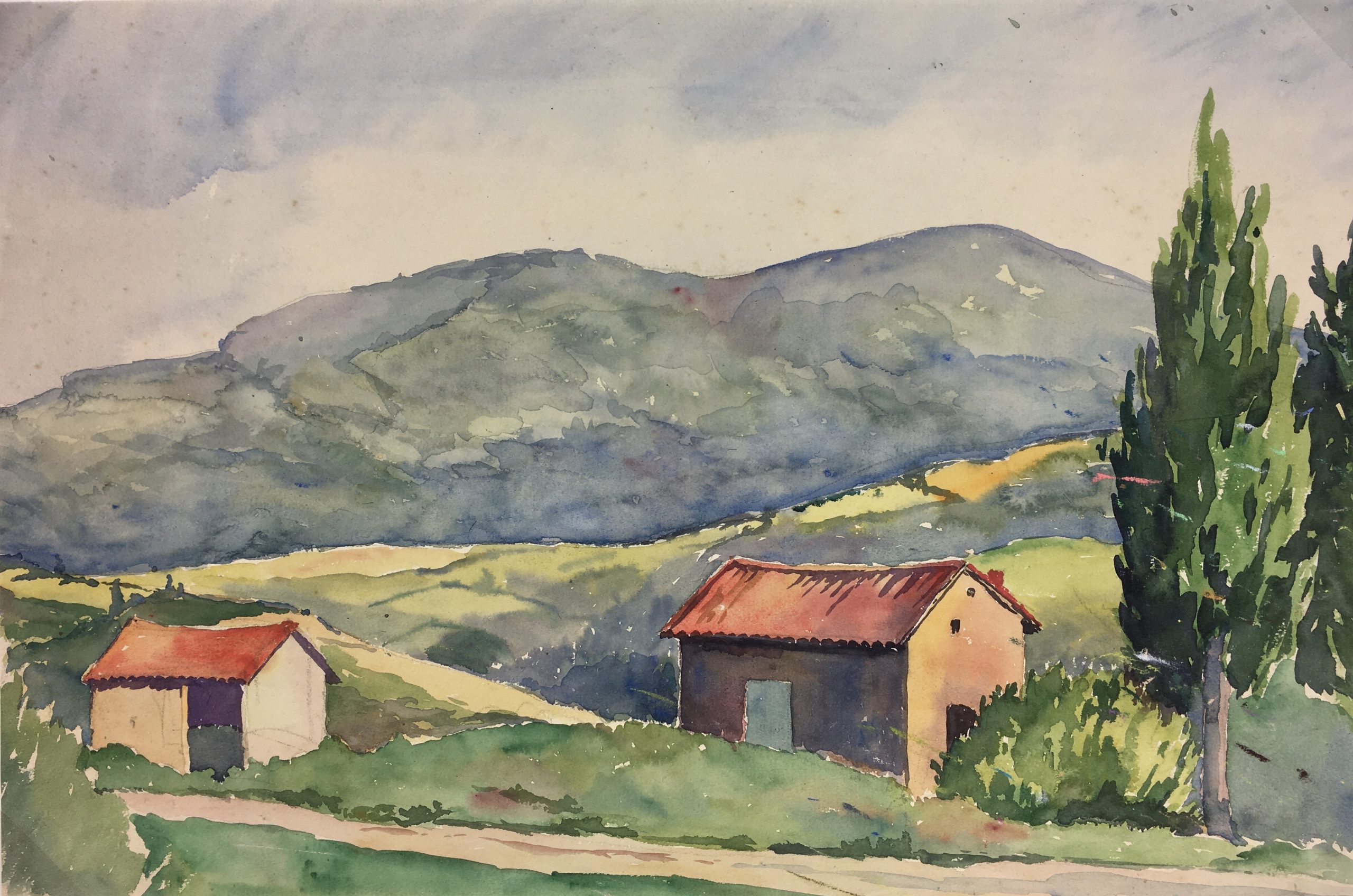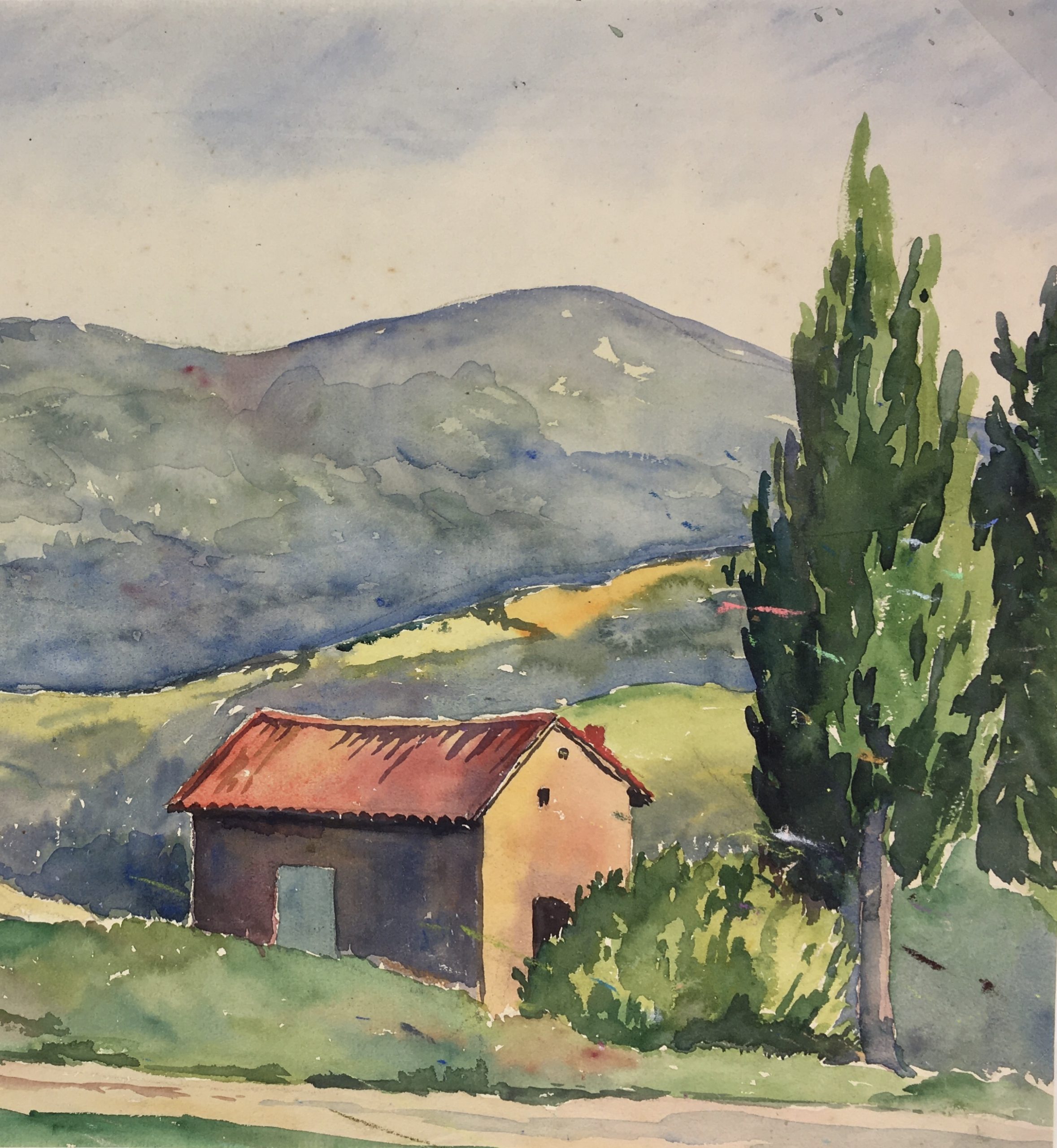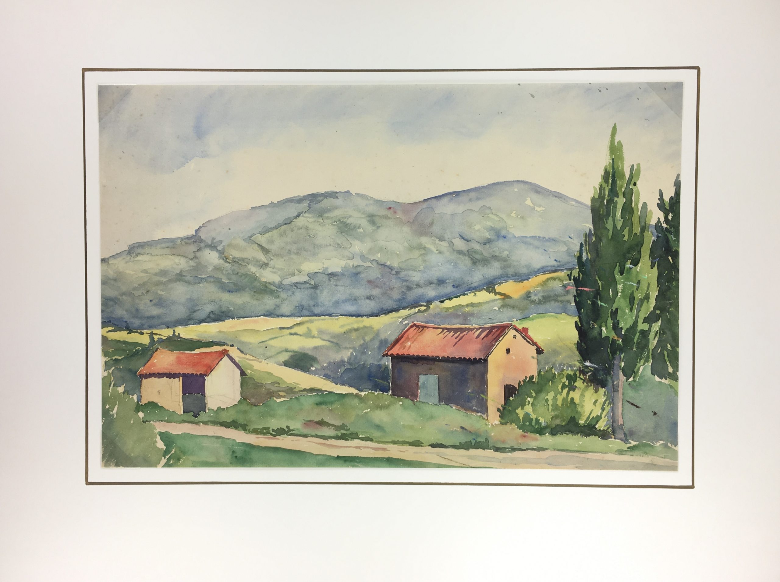Original Art on paper displayed on a white mat with a gold border. Mat fits a standard-size frame. Archival plastic sleeve and Certificate of Authenticity included. Original Art, 17.5″W x 11.5″H; mat, 24″W x 18″H.