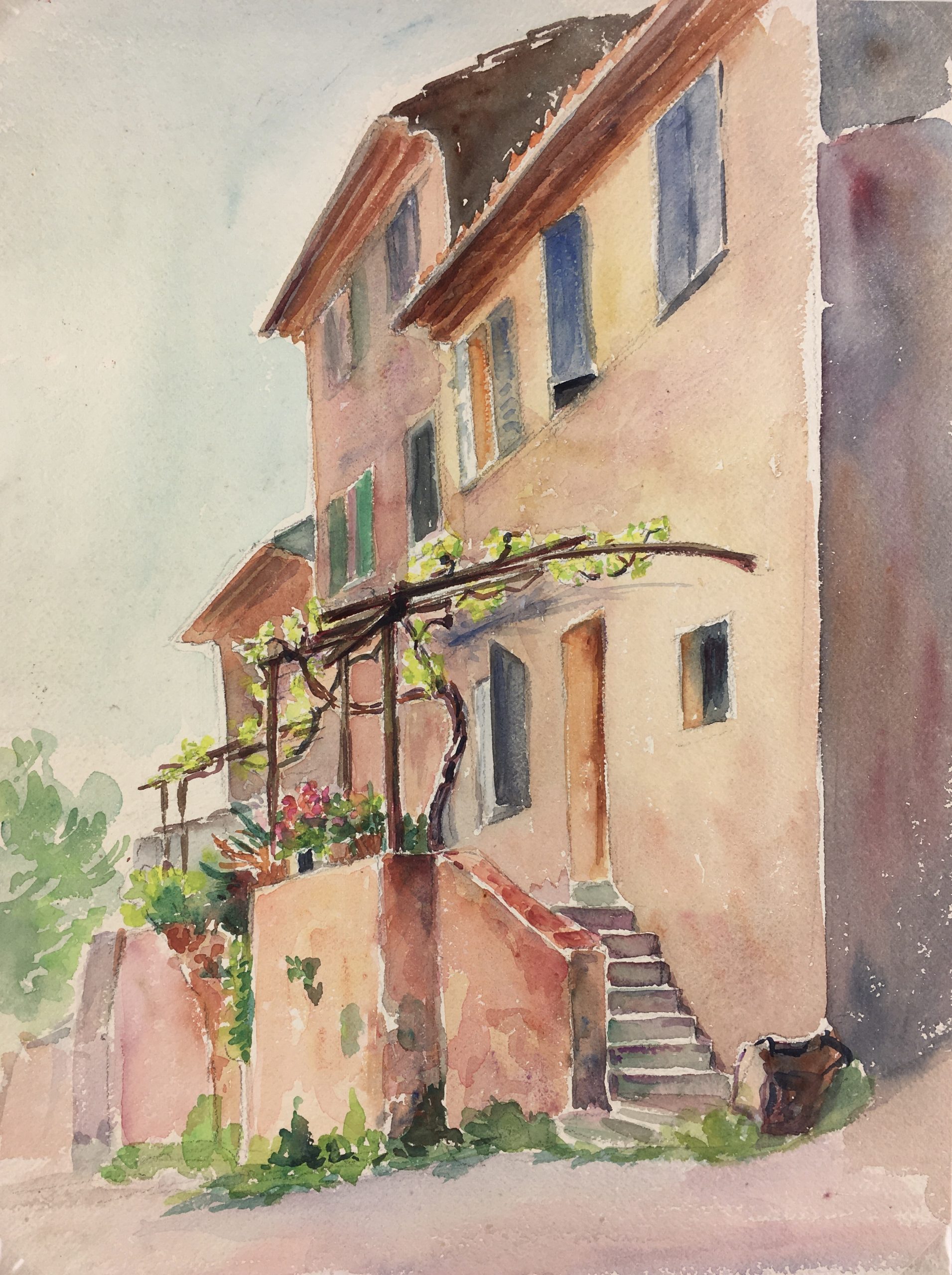 Original Art on paper displayed on a white mat with a gold border. Mat fits a standard-size frame. Archival plastic sleeve and Certificate of Authenticity included. Original Art, 10.75″W x 14.25″H; mat, 16″W x 20″H.