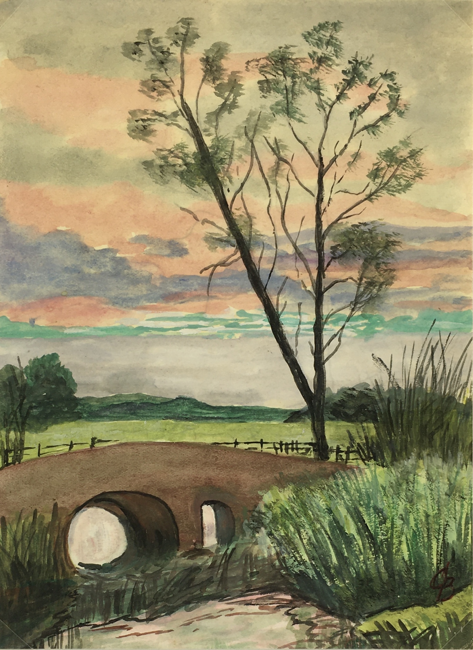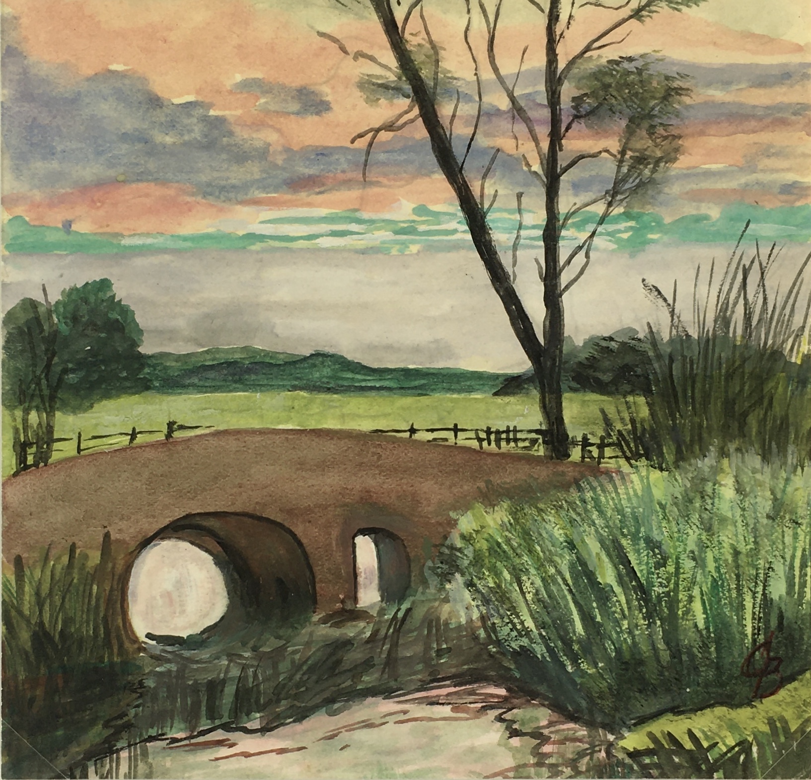 Original Art on paper displayed on a white mat with a gold border. Mat fits a standard-size frame. Archival plastic sleeve and Certificate of Authenticity included. Original Art, 4.75″W x 6.5″H; mat, 16″W x 20″H.
