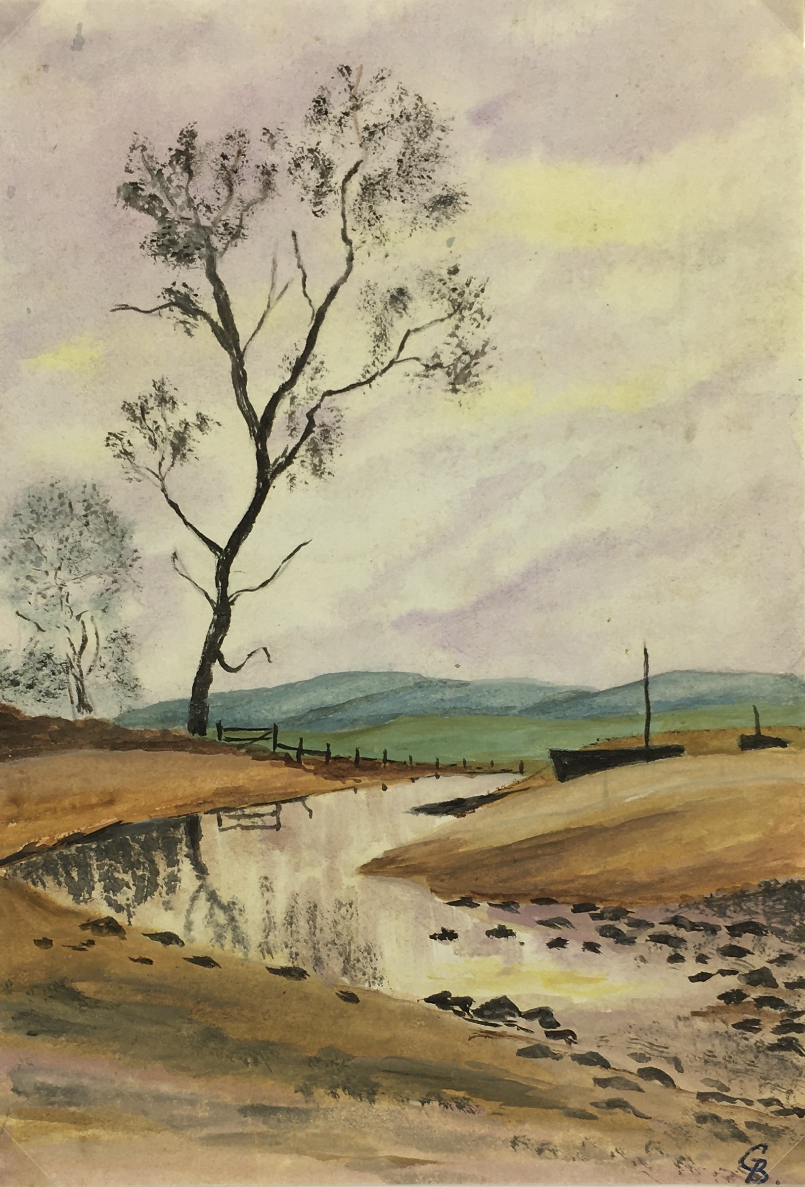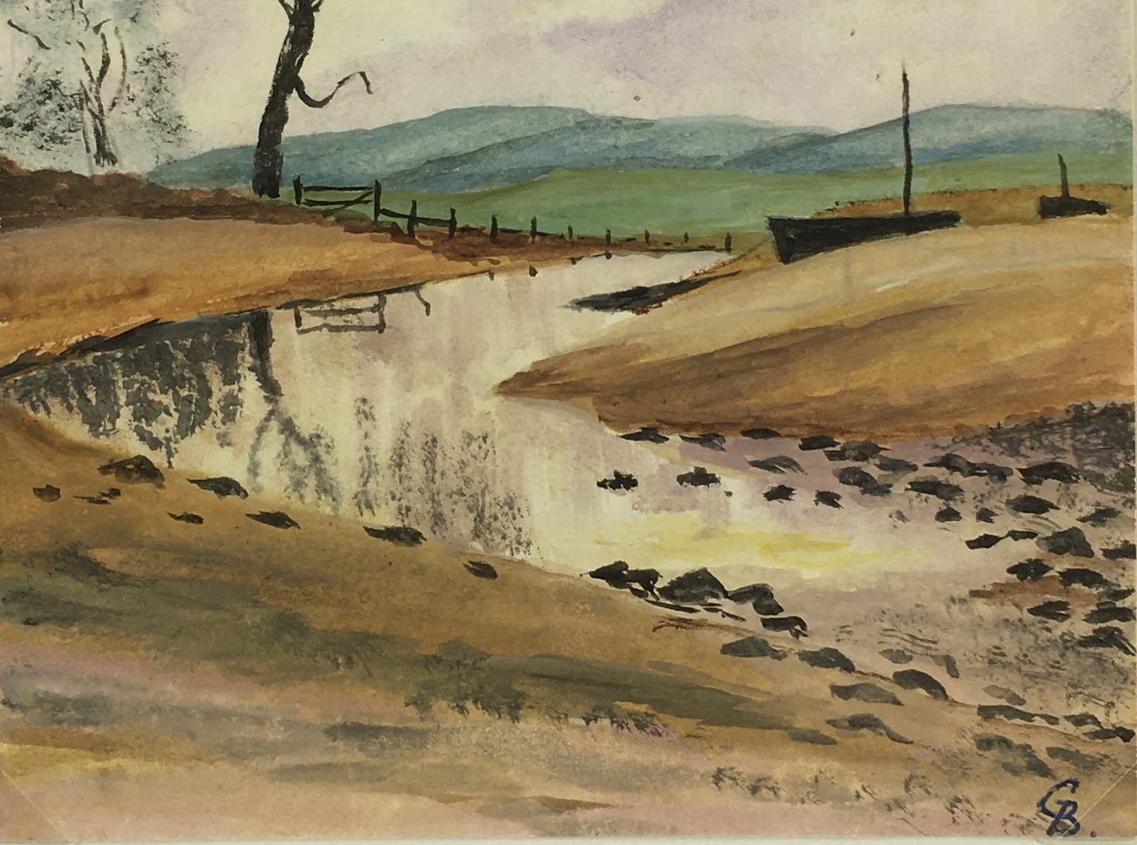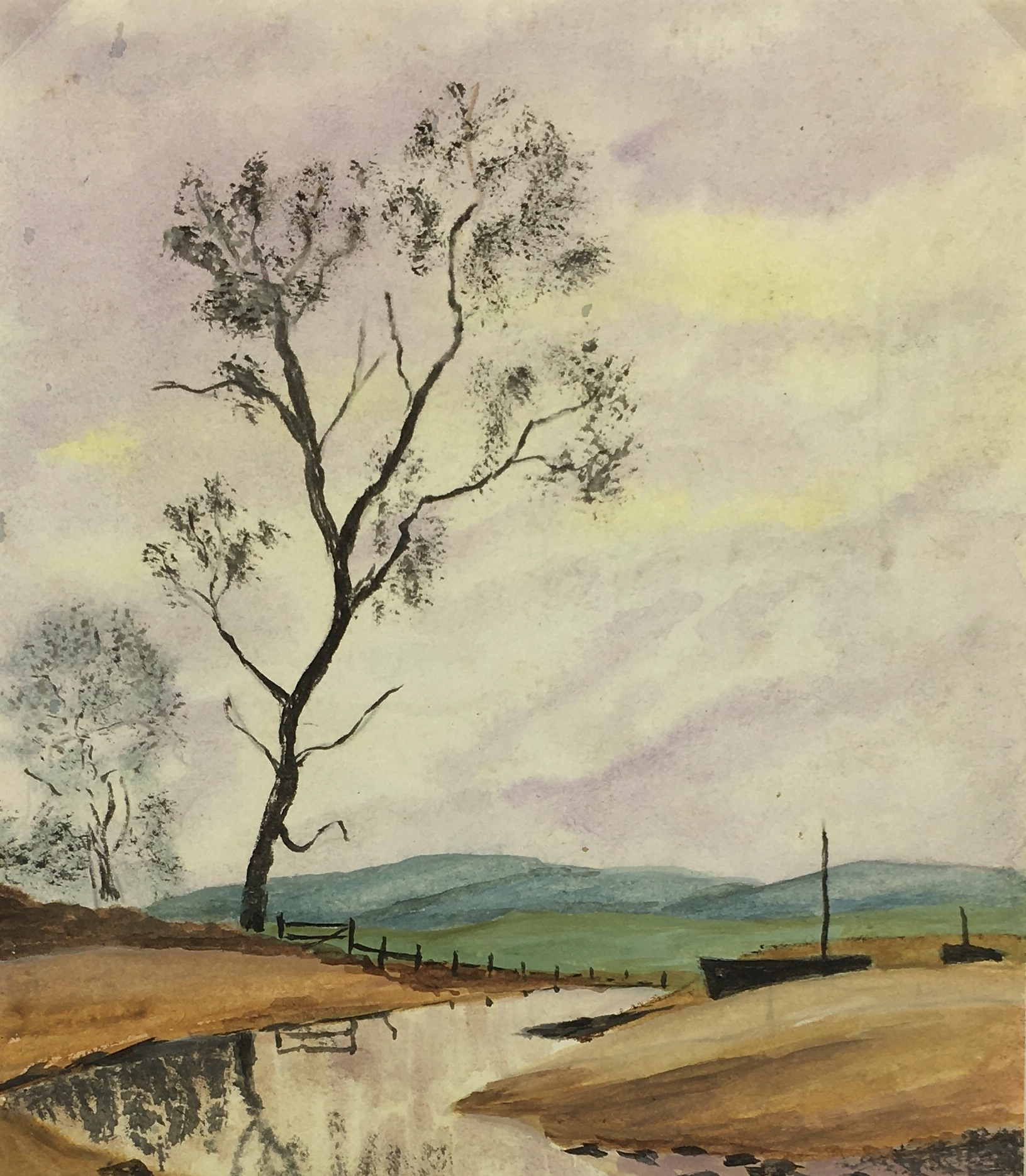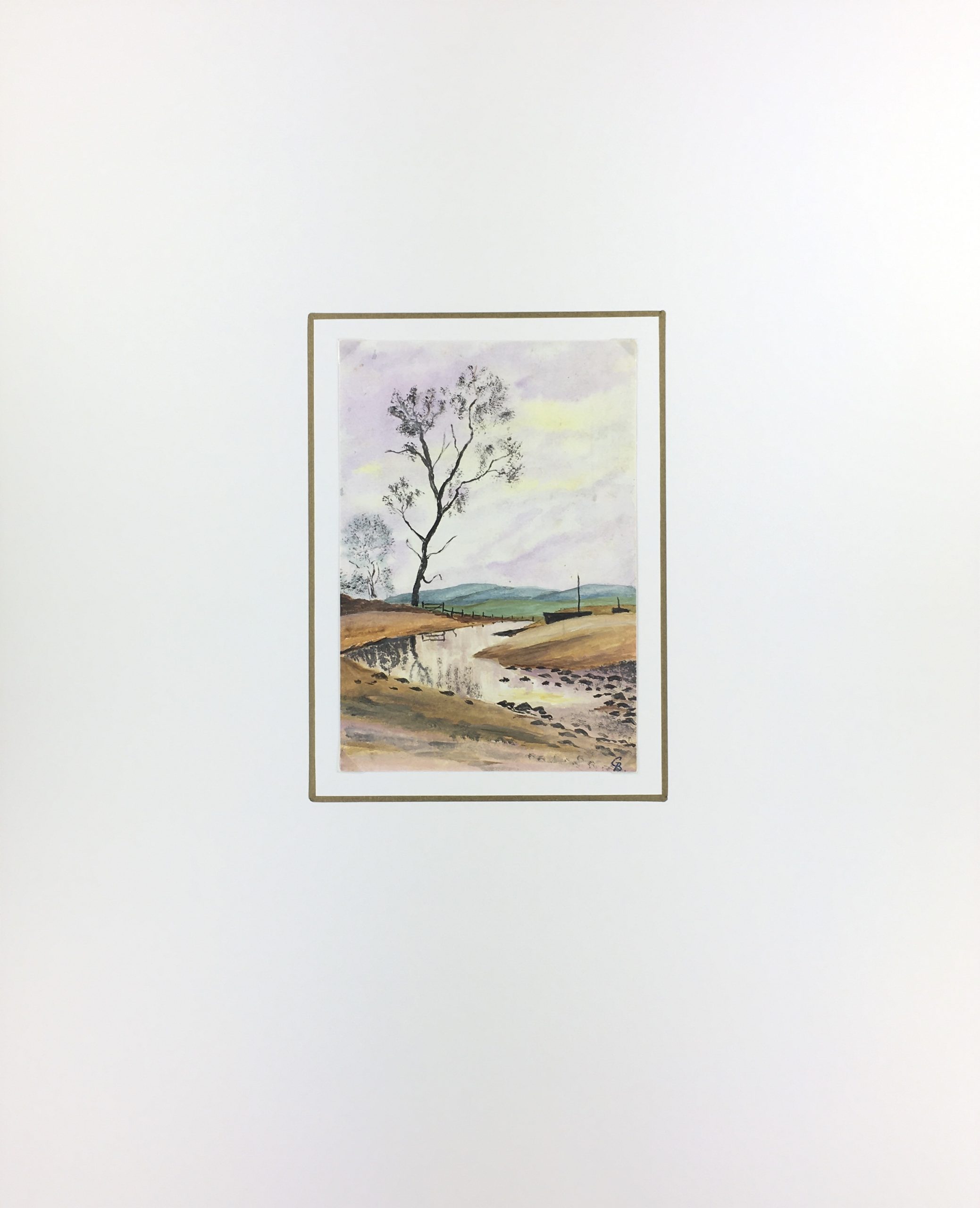 Original Art on paper displayed on a white mat with a gold border. Mat fits a standard-size frame. Archival plastic sleeve and Certificate of Authenticity included. Original Art, 5″W x 7″H; mat, 16″W x 20″H.