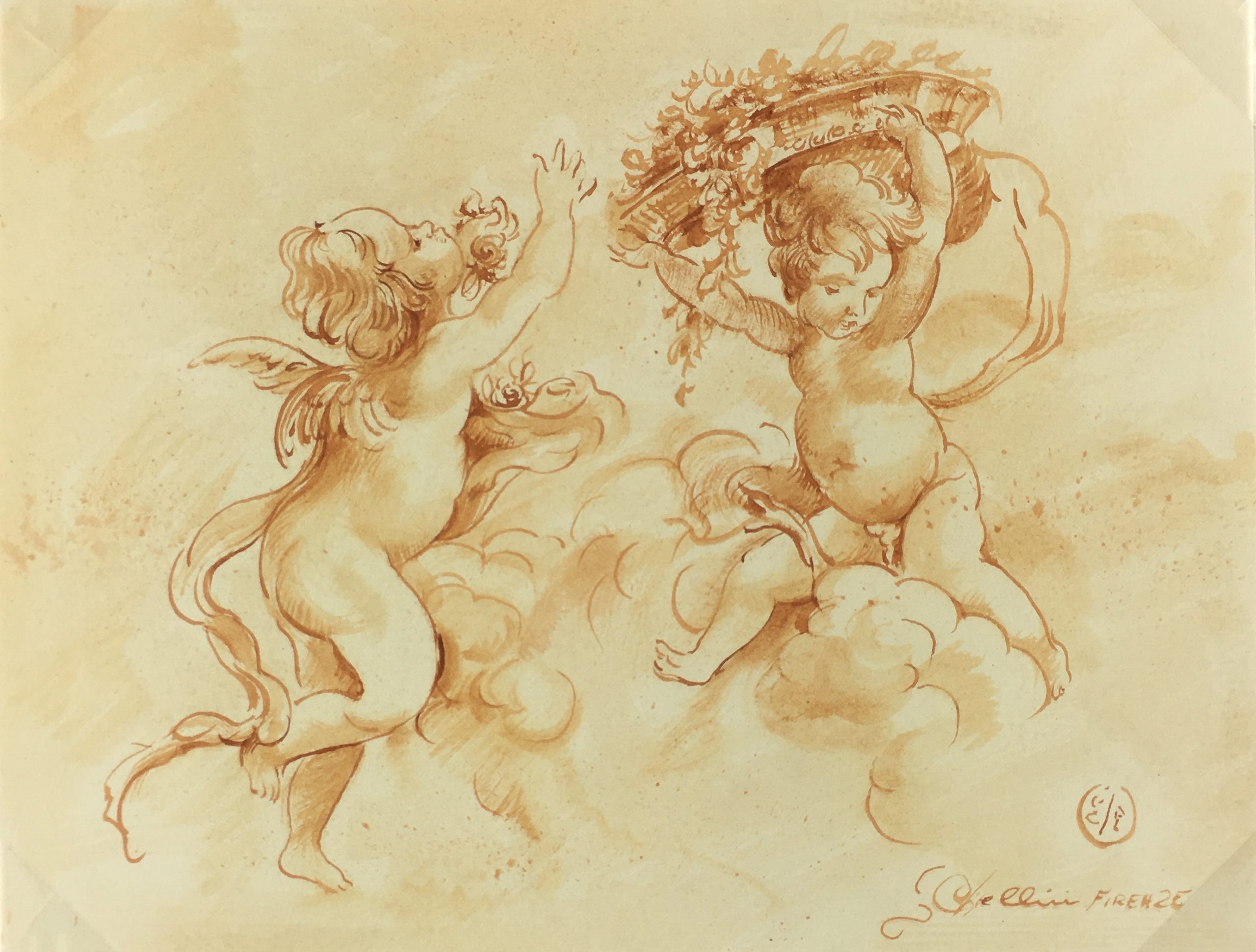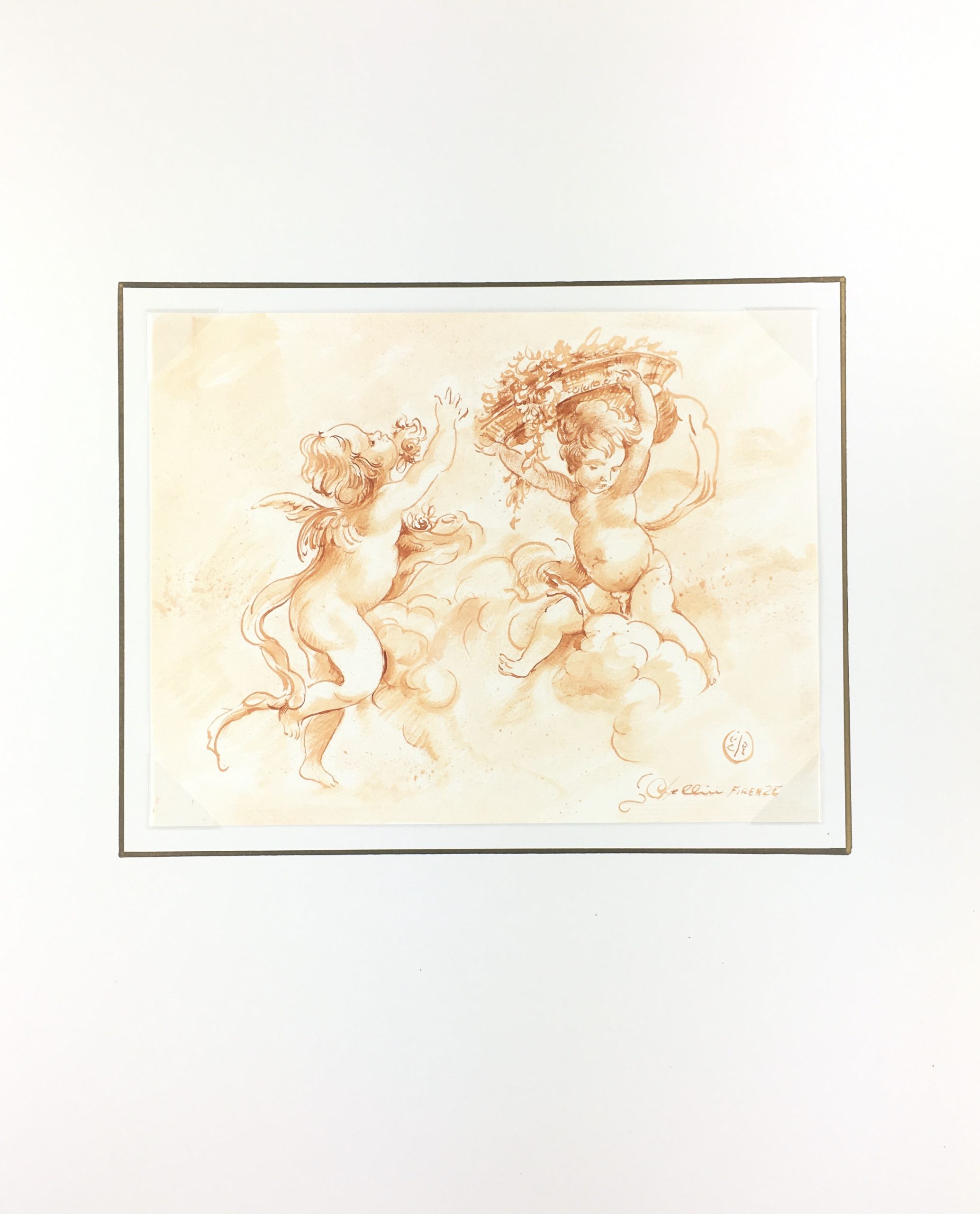 Original Art on paper displayed on a white mat with a gold border. Mat fits a standard-size frame. Archival plastic sleeve and Certificate of Authenticity included. Original Art, 10.75″W x 8.25″H; mat, 16″W x 20″H.