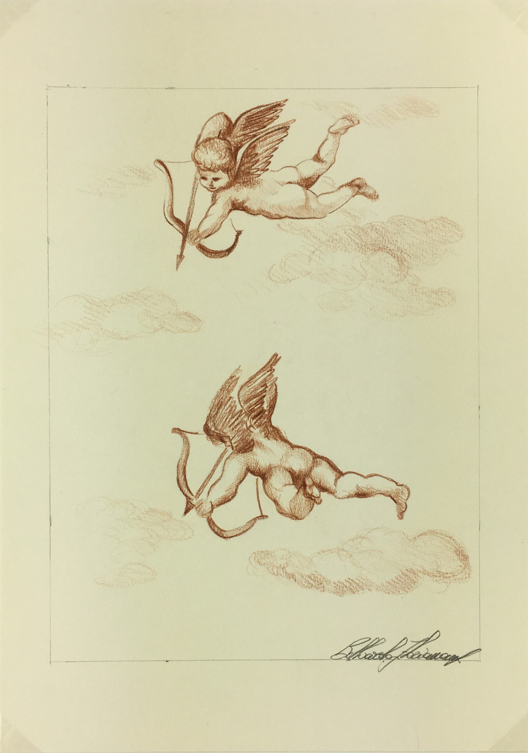 Original Art on paper displayed on a white mat with a gold border. Mat fits a standard-size frame. Archival plastic sleeve and Certificate of Authenticity included. Original Art, 8.25″W x 11.75″H; mat, 16″W x 20″H.