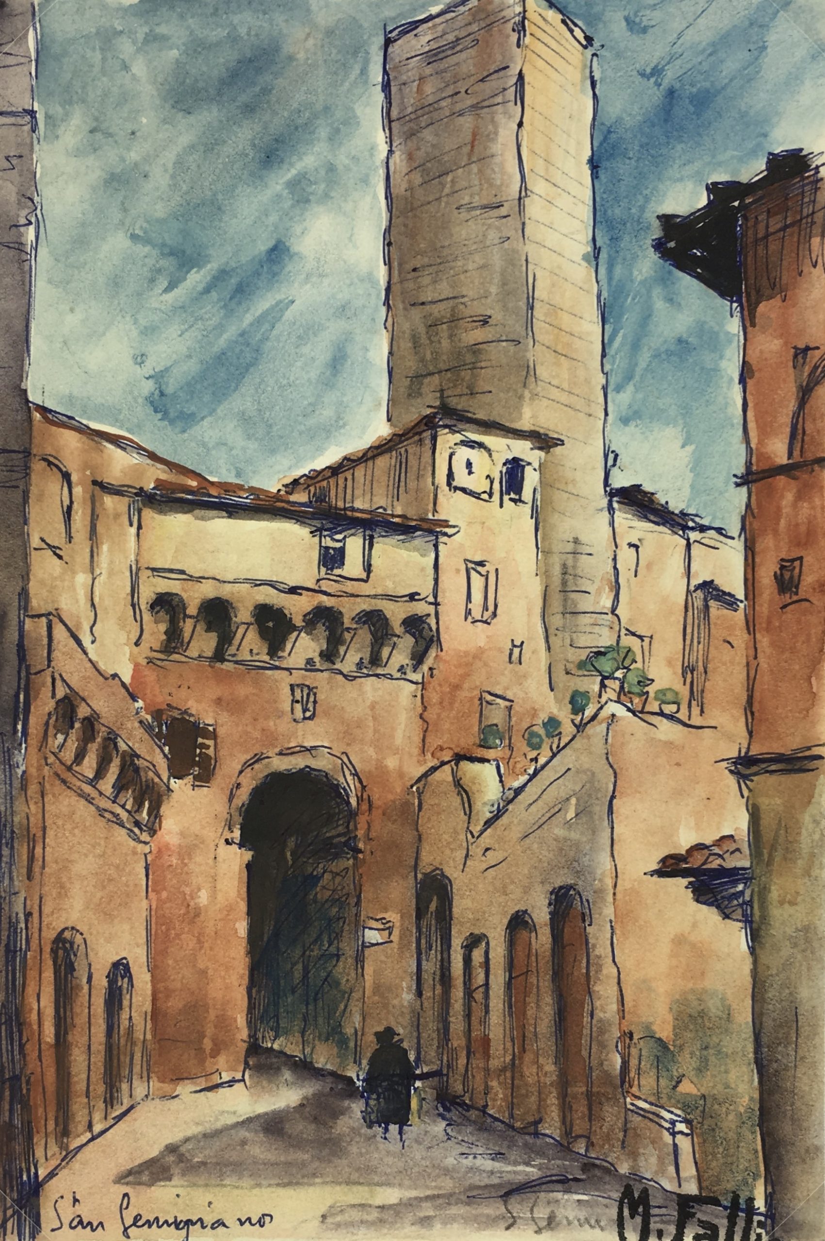 Original Art on paper displayed on a white mat with a gold border. Mat fits a standard-size frame. Archival plastic sleeve and Certificate of Authenticity included. Original Art, 5″W x 7.5″H; mat, 16″W x 20″H.