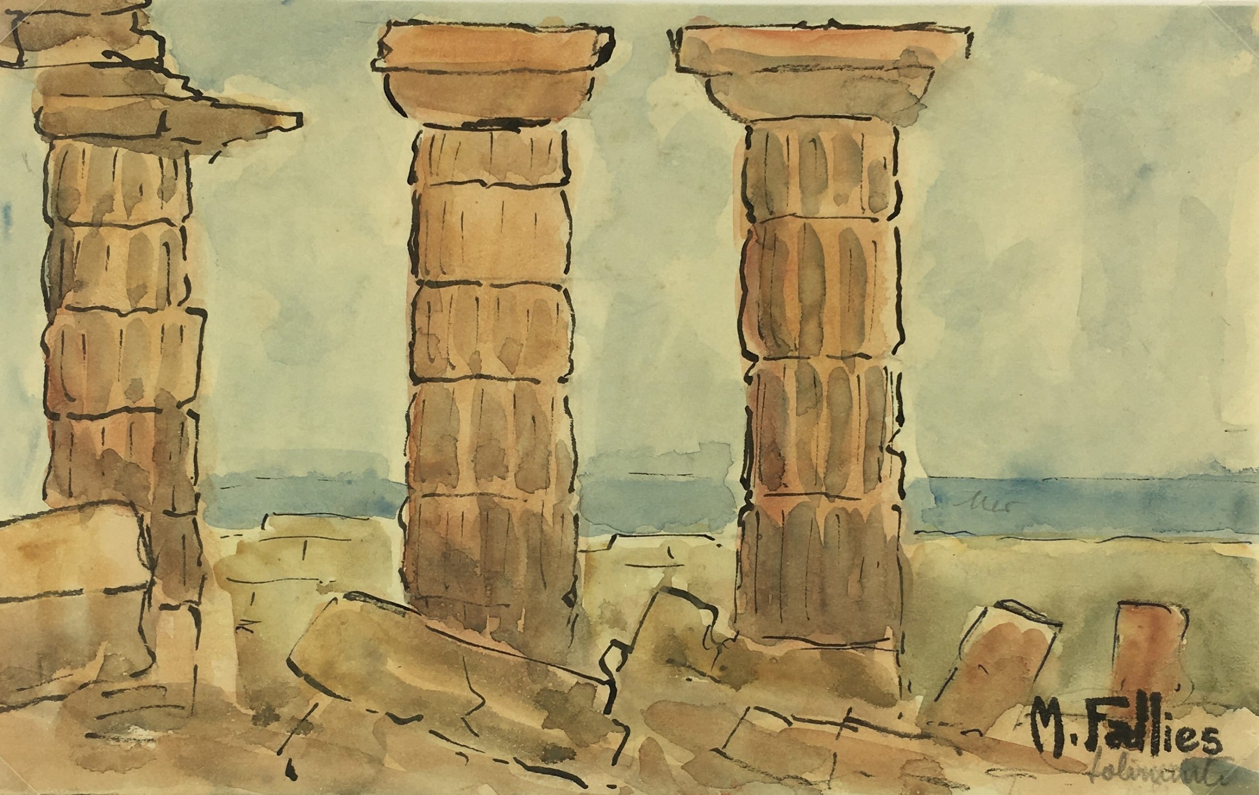 Italy Original Art – Selinunte, Sicily, Maurice Falliés, c.1950