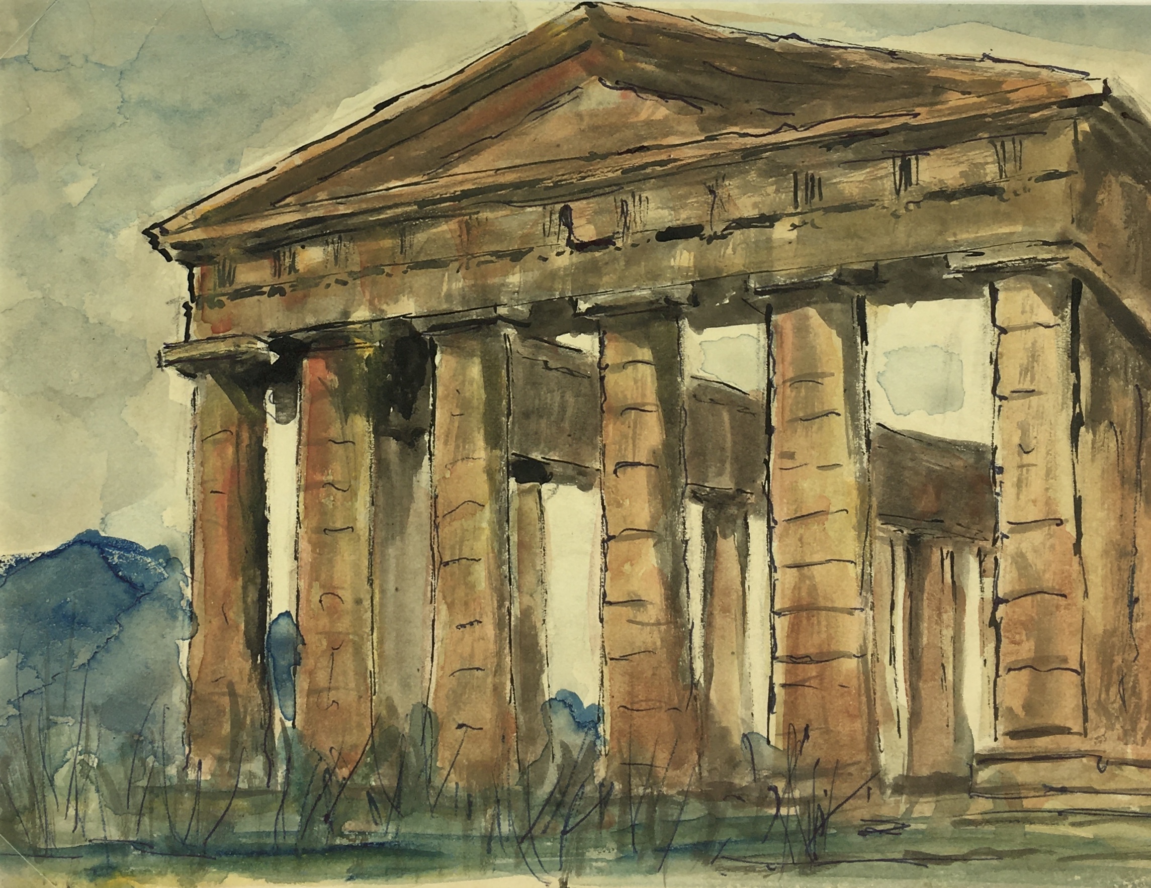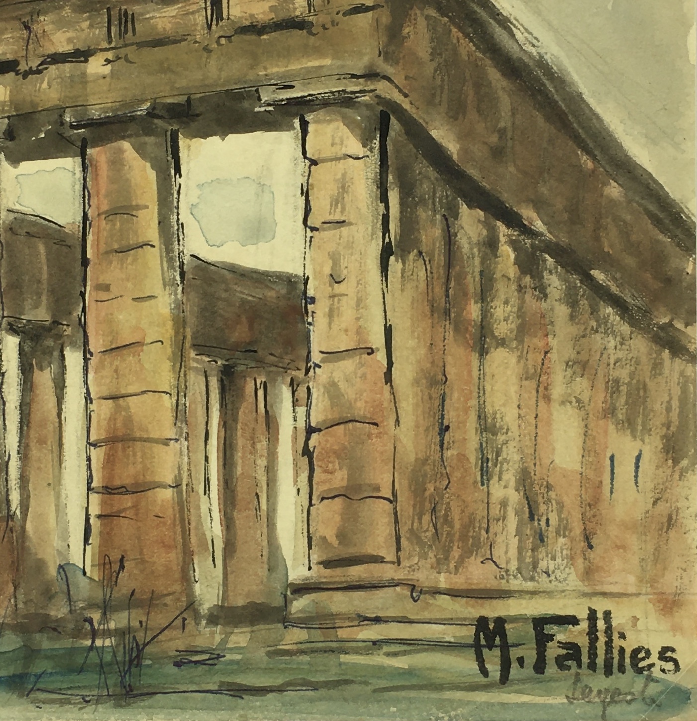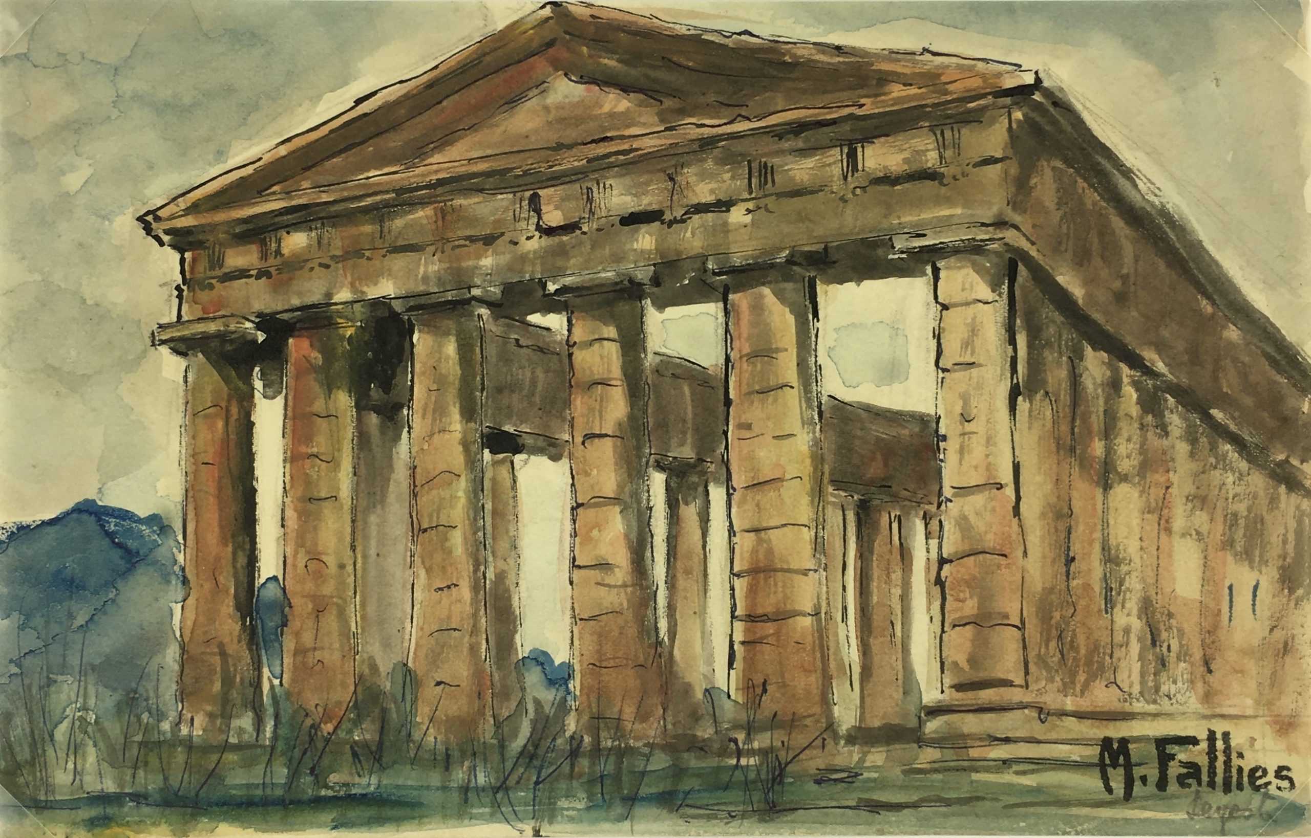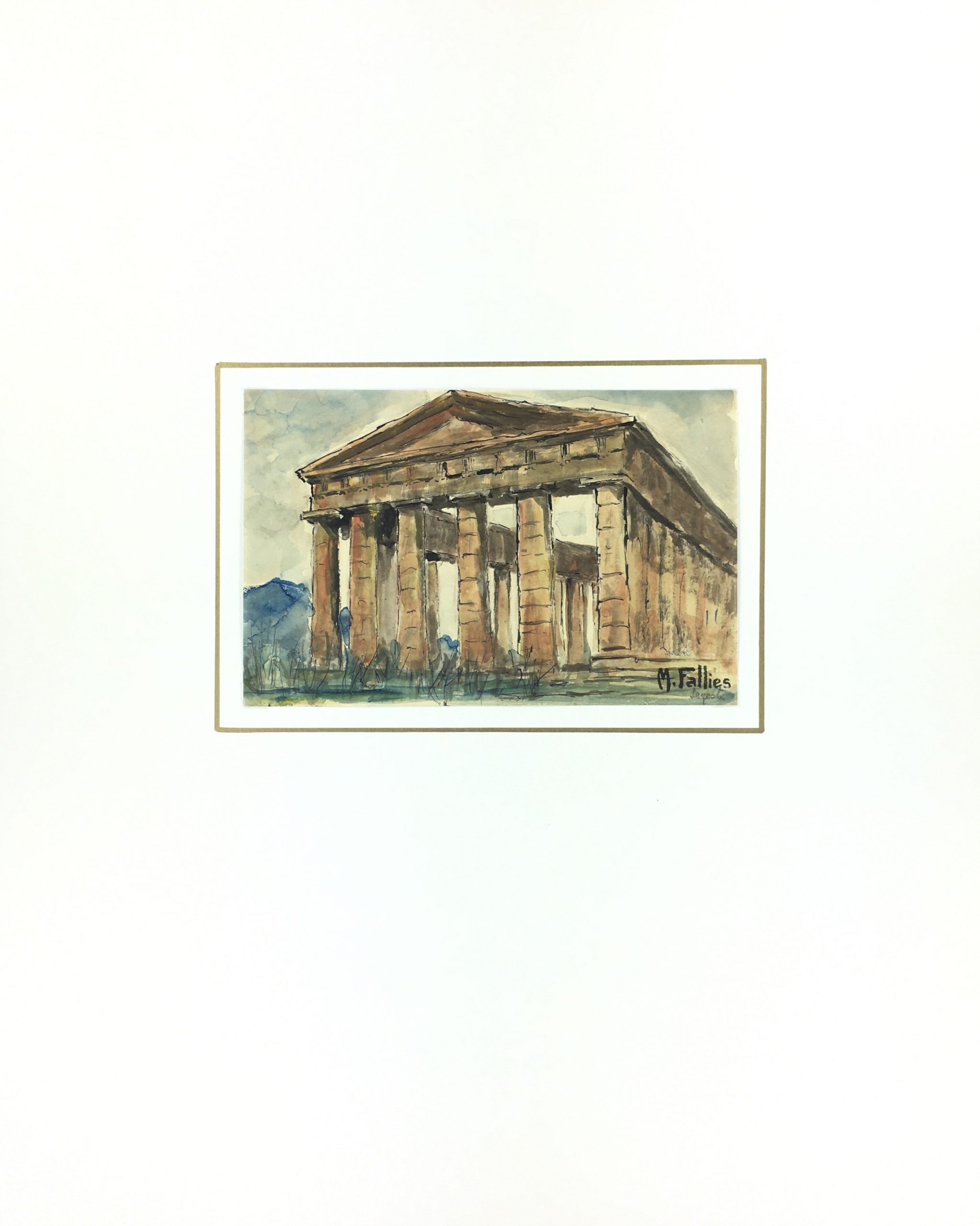 Italy Original Art – Sicilian Ruins, Maurice Falliés, c.1950