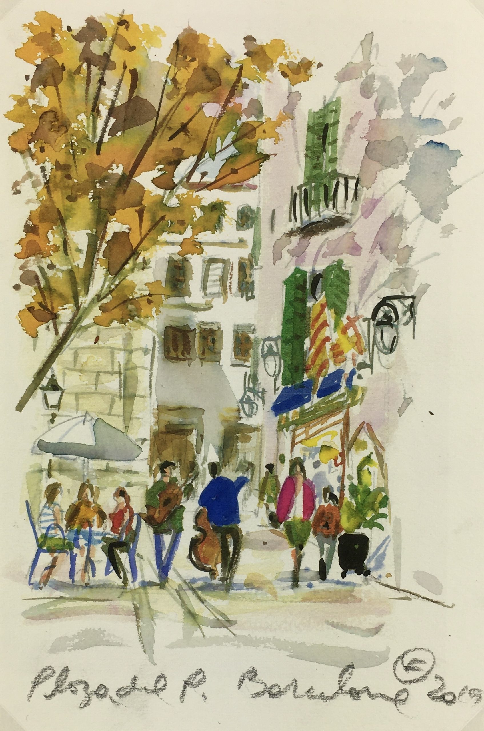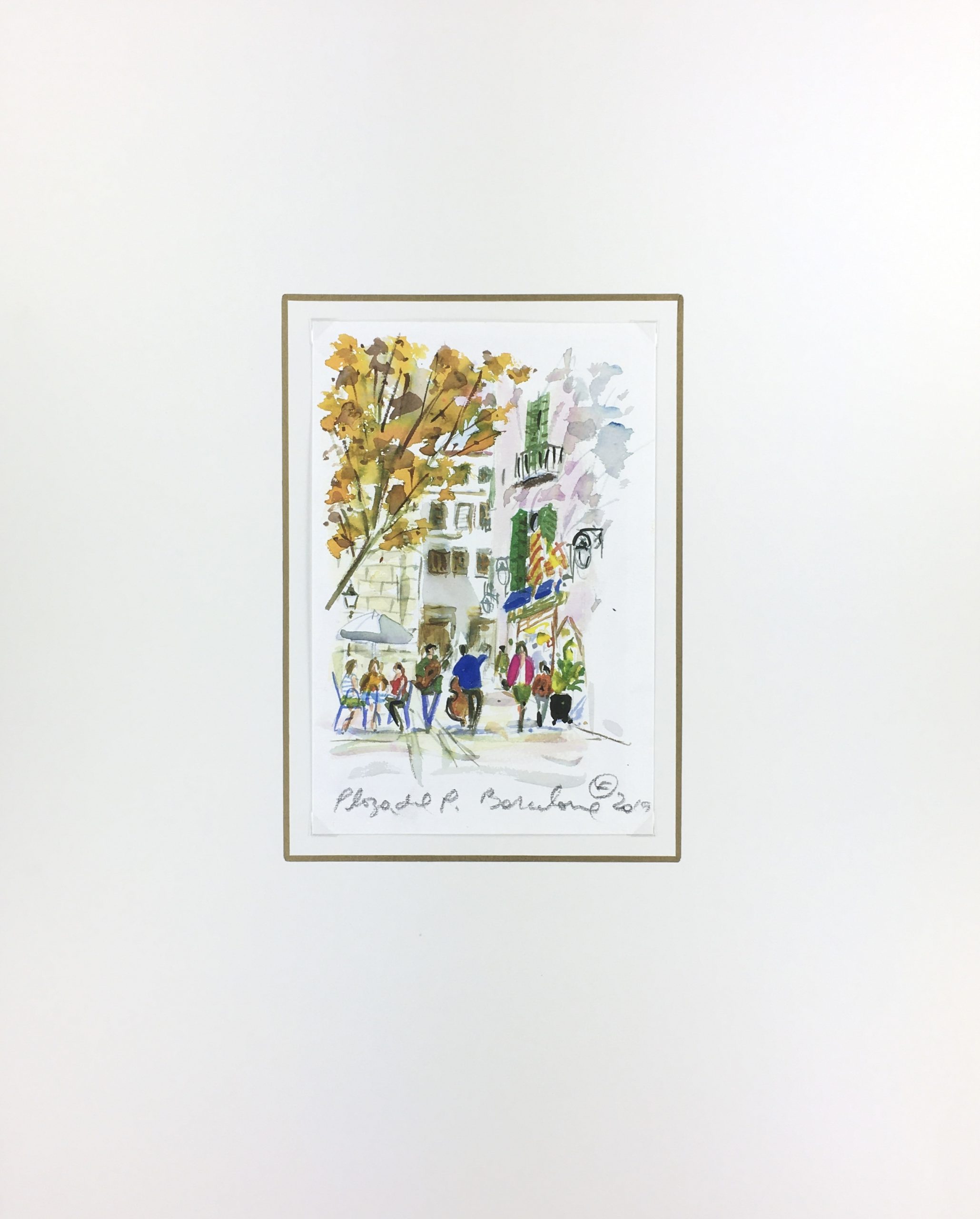 Original Art on paper displayed on a white mat with a gold border. Mat fits a standard-size frame. Archival plastic sleeve and Certificate of Authenticity included. Original Art, 5.5″W x 8.25″H; mat, 16″W x 20″H.