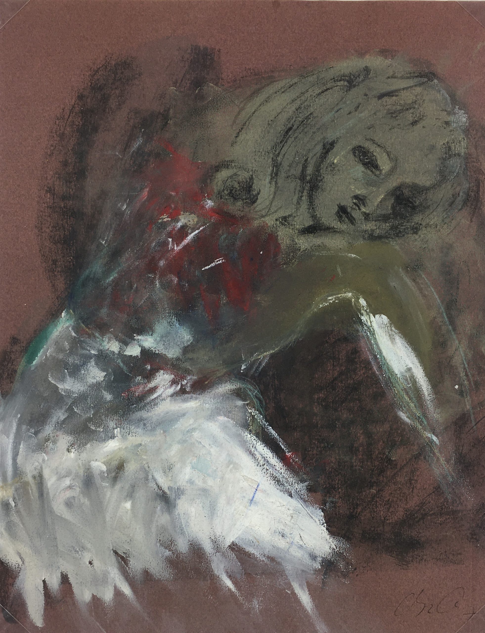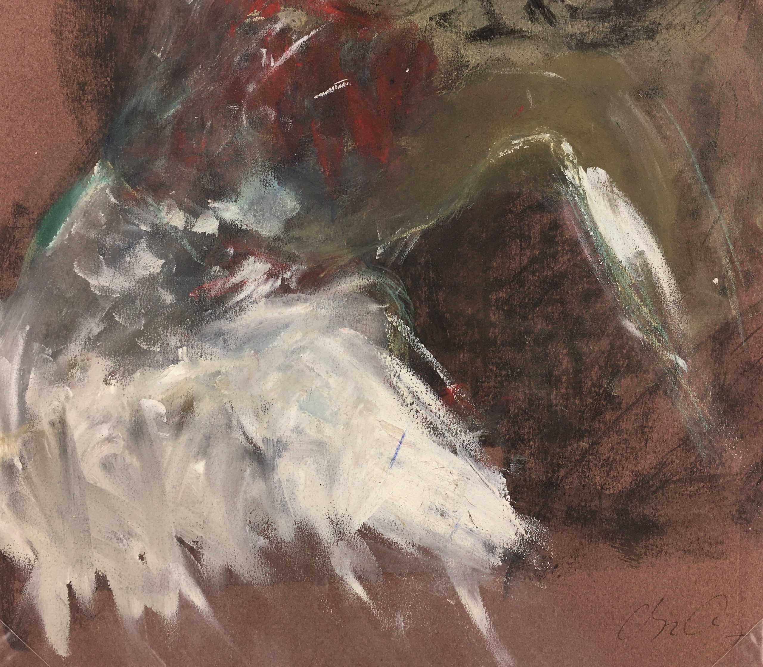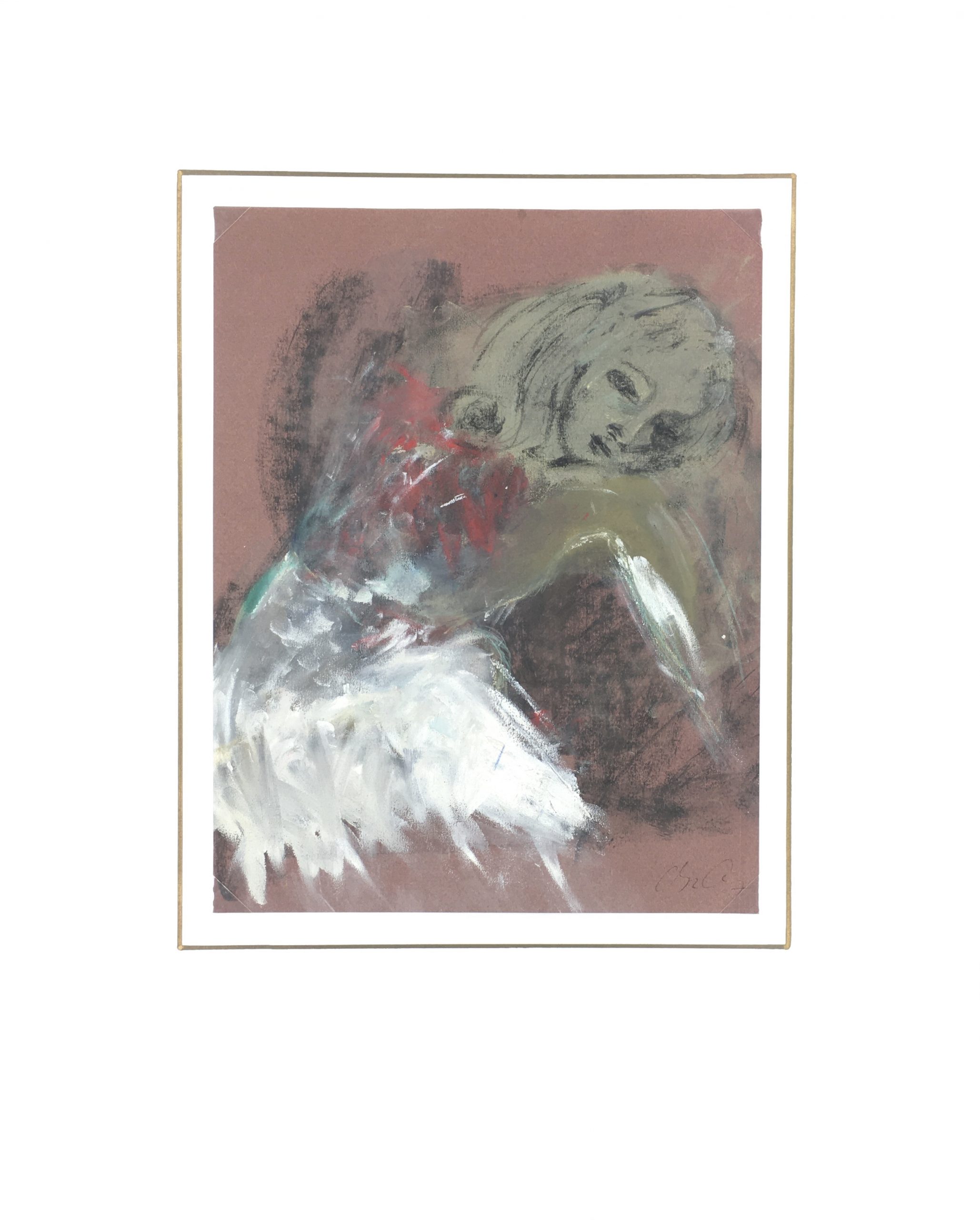 Original Art on paper displayed on a white mat with a gold border. Mat fits a standard-size frame. Archival plastic sleeve and Certificate of Authenticity included. Original Art, 9″W x 11.5″H; mat, 16″W x 20″H.