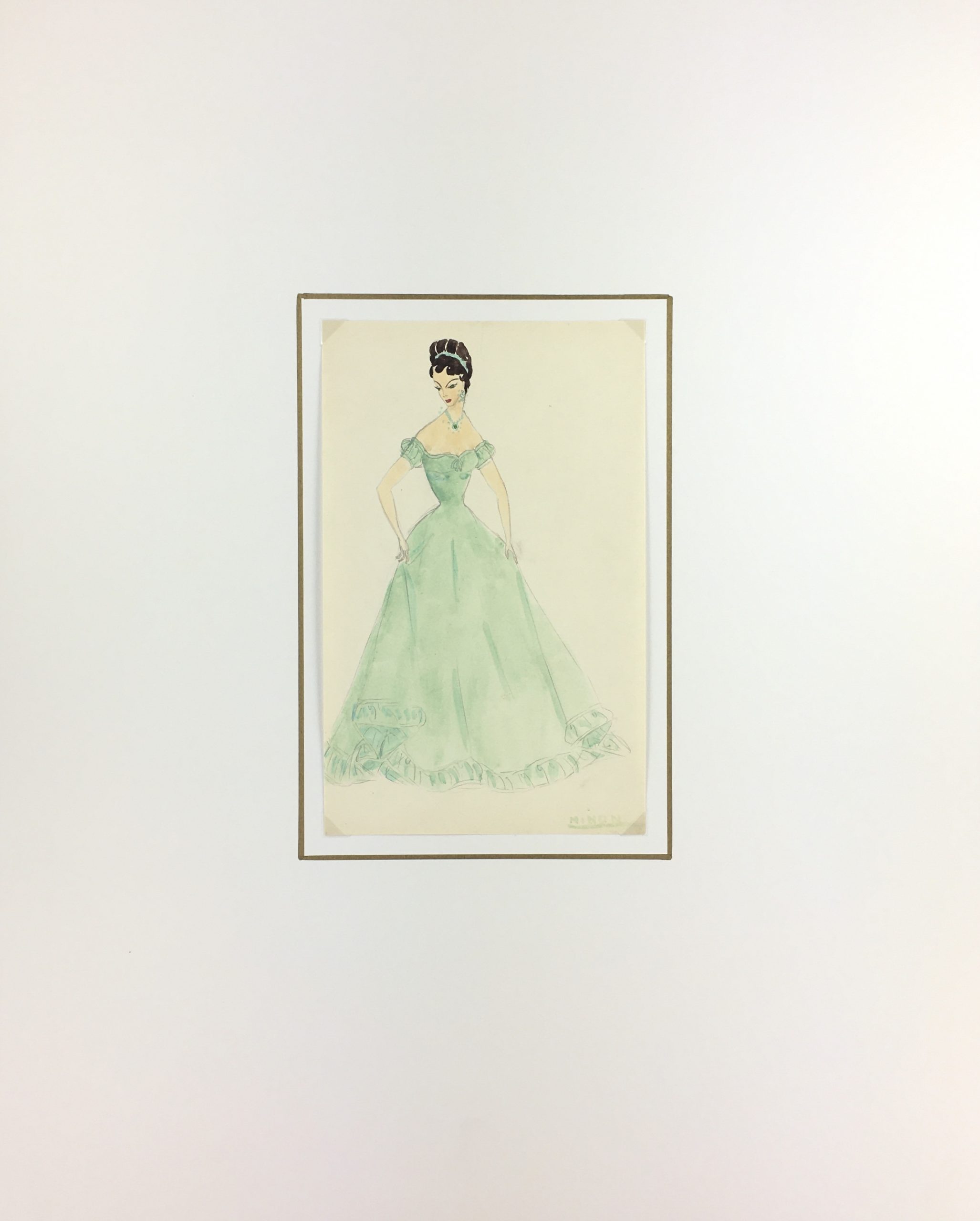 Original Art on paper displayed on a white mat with a gold border. Mat fits a standard-size frame. Archival plastic sleeve and Certificate of Authenticity included. Original Art, 5.25″W x 8.25″H; mat, 16″W x 20″H.