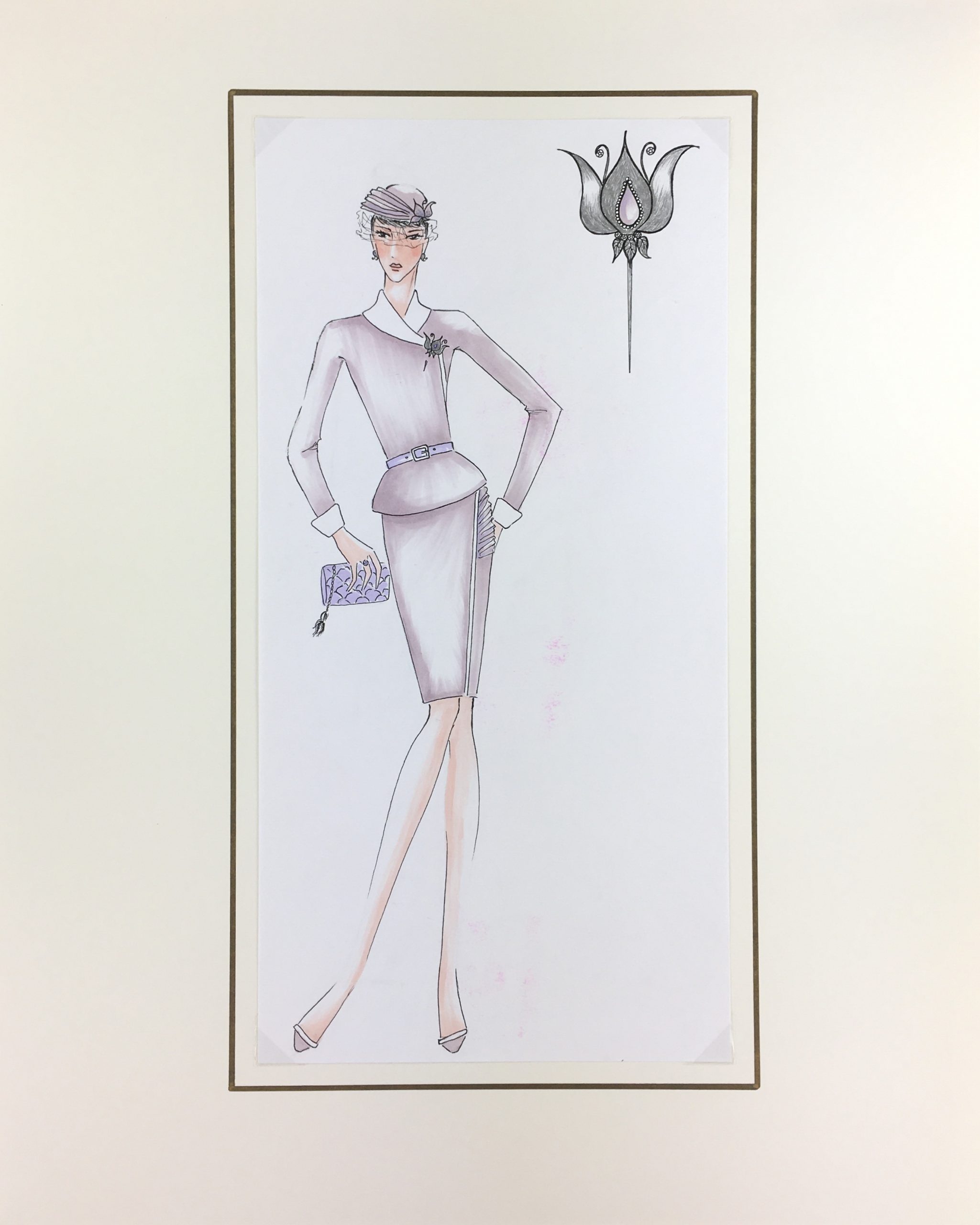 Original Art on paper displayed on a white mat with a gold border. Mat fits a standard-size frame. Archival plastic sleeve and Certificate of Authenticity included. Original Art, 7.75″W x 15.25″H; mat, 16″W x 20″H.