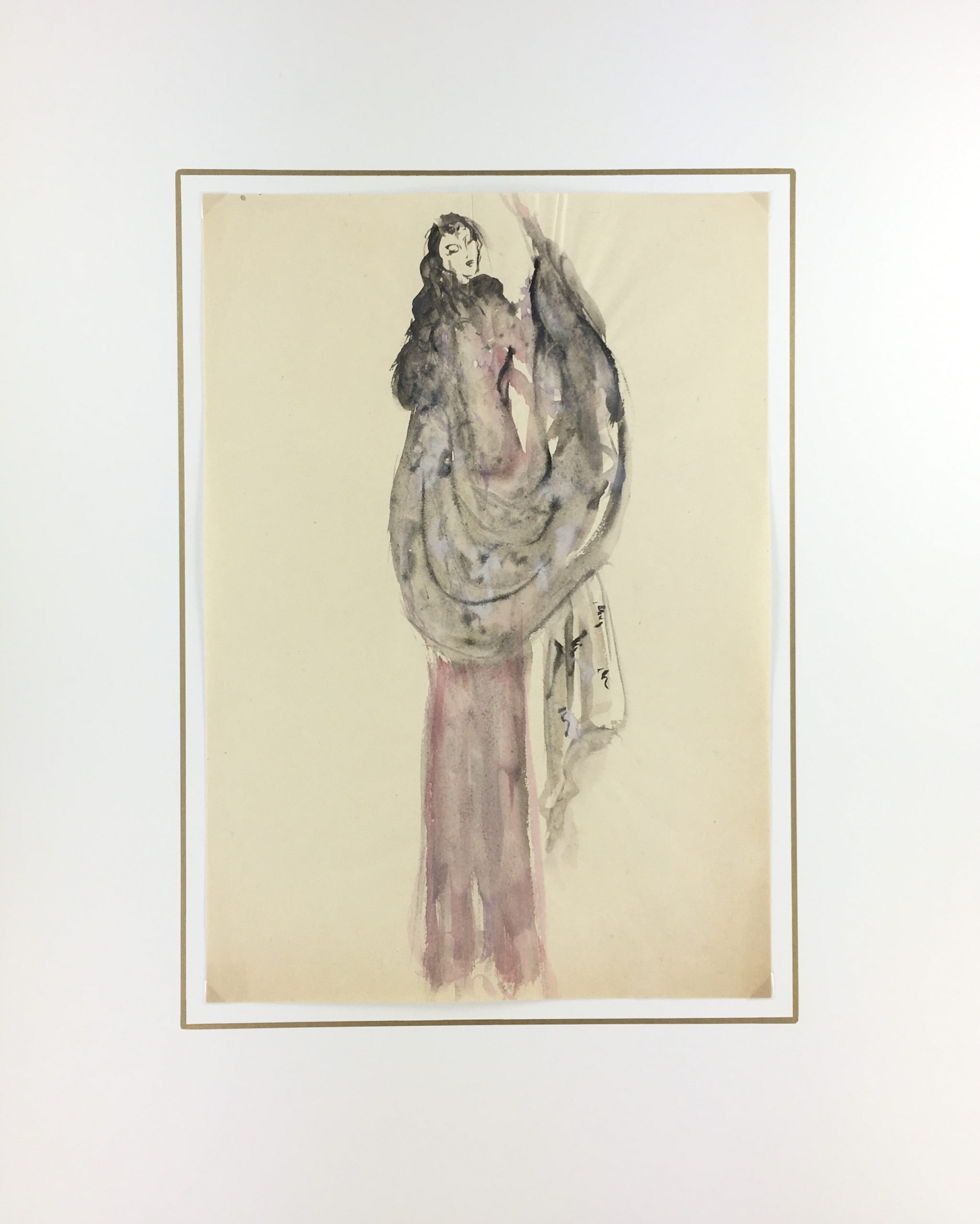 Original Art on paper displayed on a white mat with a gold border. Mat fits a standard-size frame. Archival plastic sleeve and Certificate of Authenticity included. Original Art, 9″W x 12.75″H; mat, 16″W x 20″H.