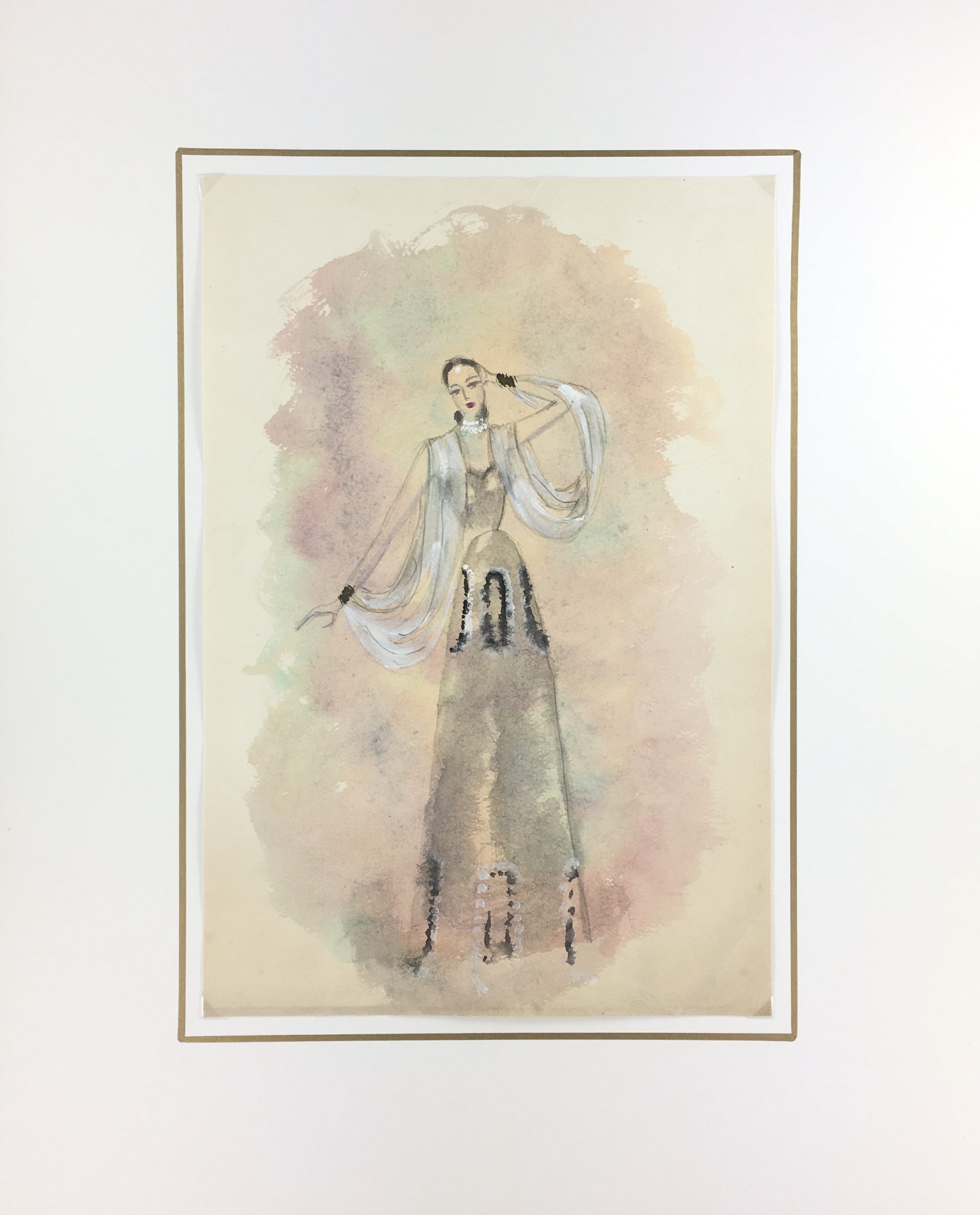 Original Art on paper displayed on a white mat with a gold border. Mat fits a standard-size frame. Archival plastic sleeve and Certificate of Authenticity included. Original Art, 9.25″W x 13.5″H; mat, 16″W x 20″H.