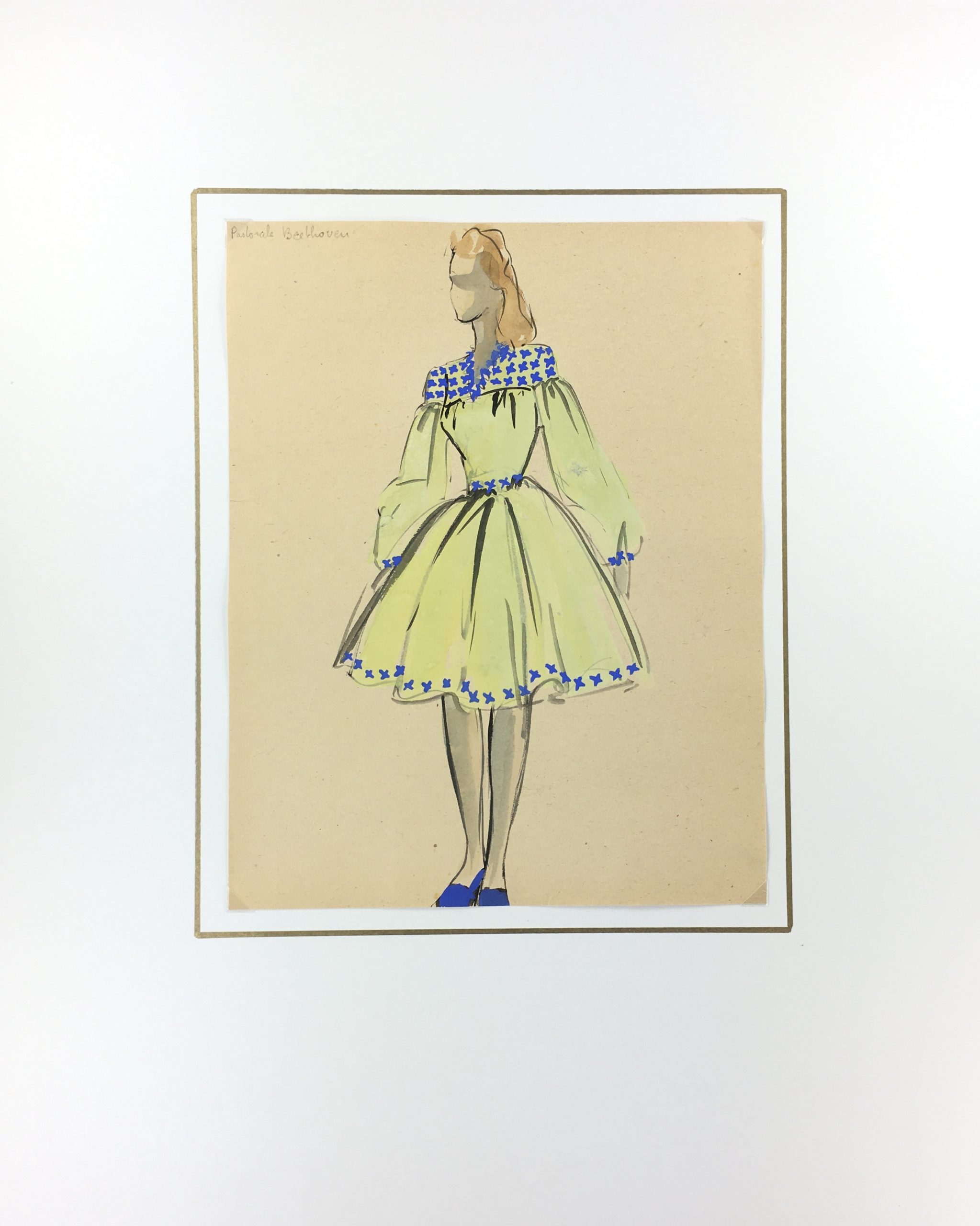 Original Art on paper displayed on a white mat with a gold border. Mat fits a standard-size frame. Archival plastic sleeve and Certificate of Authenticity included. Original Art, 8.5″W x 11″H; mat, 16″W x 20″H.