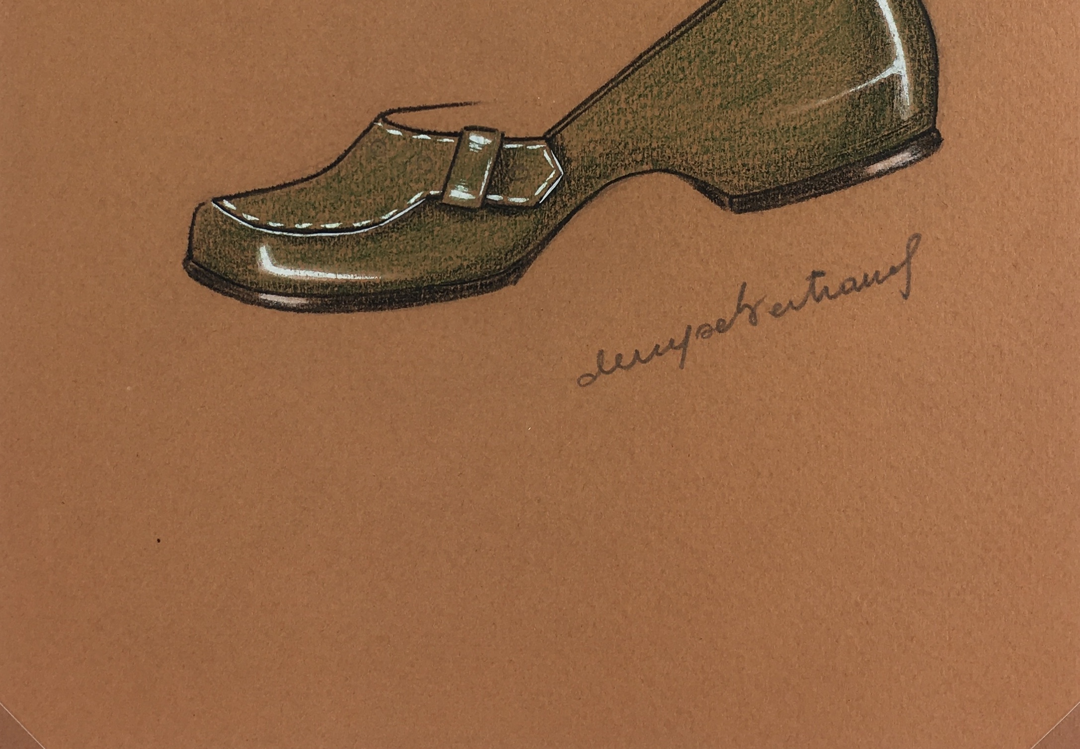 Original Art on paper displayed on a white mat with a gold border. Mat fits a standard-size frame. Archival plastic sleeve and Certificate of Authenticity included. Original Art, 6.5″W x 7″H; mat, 16″W x 20″H.