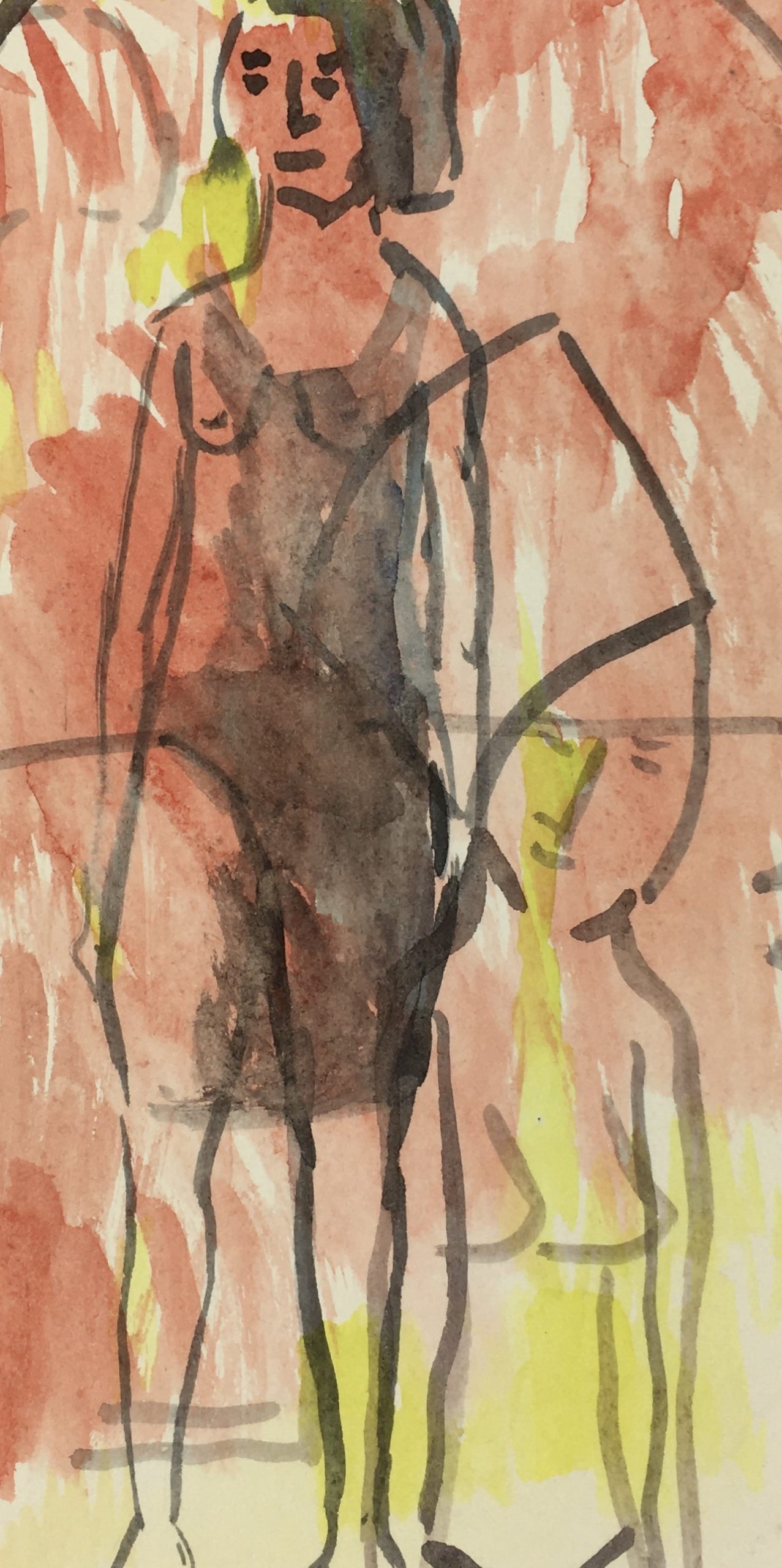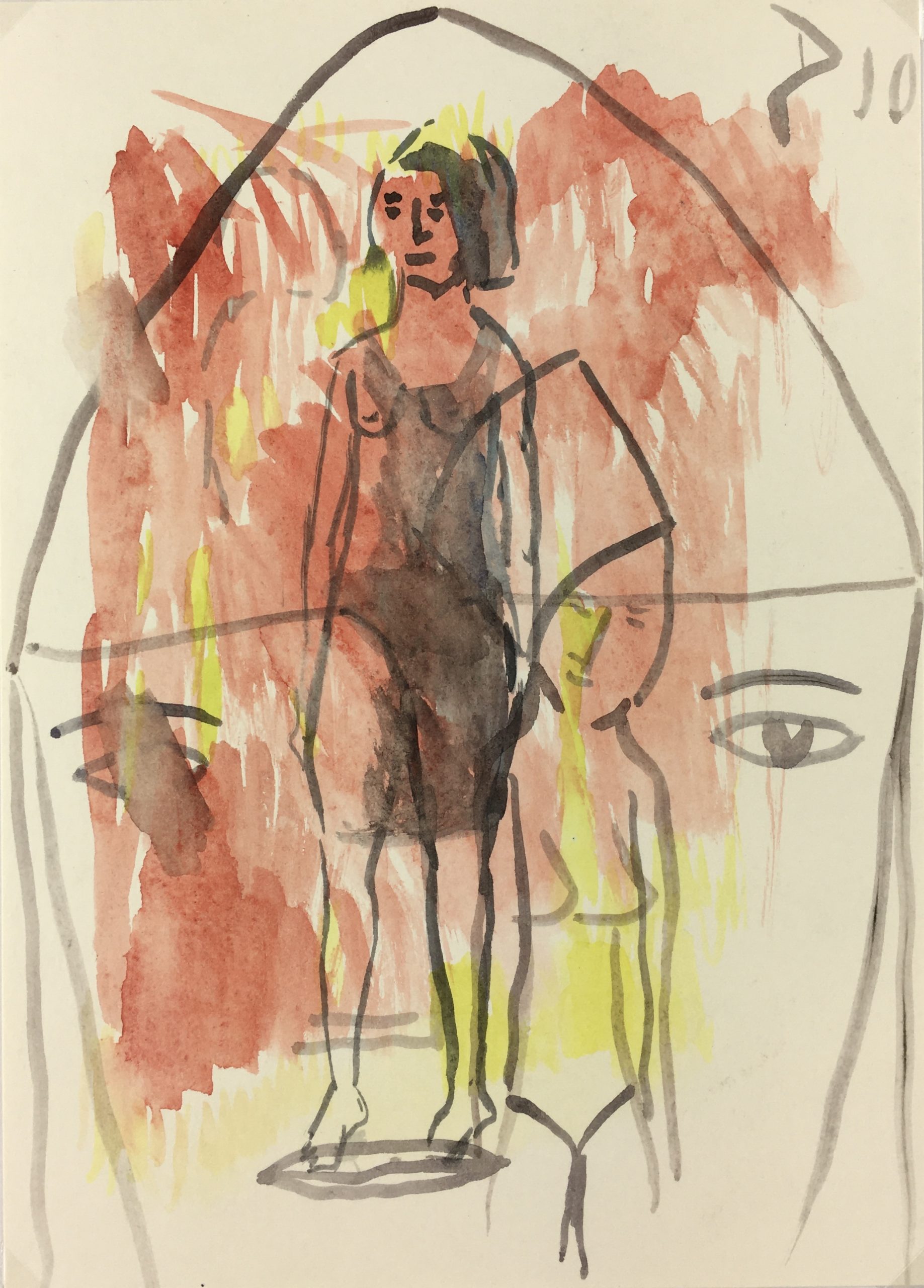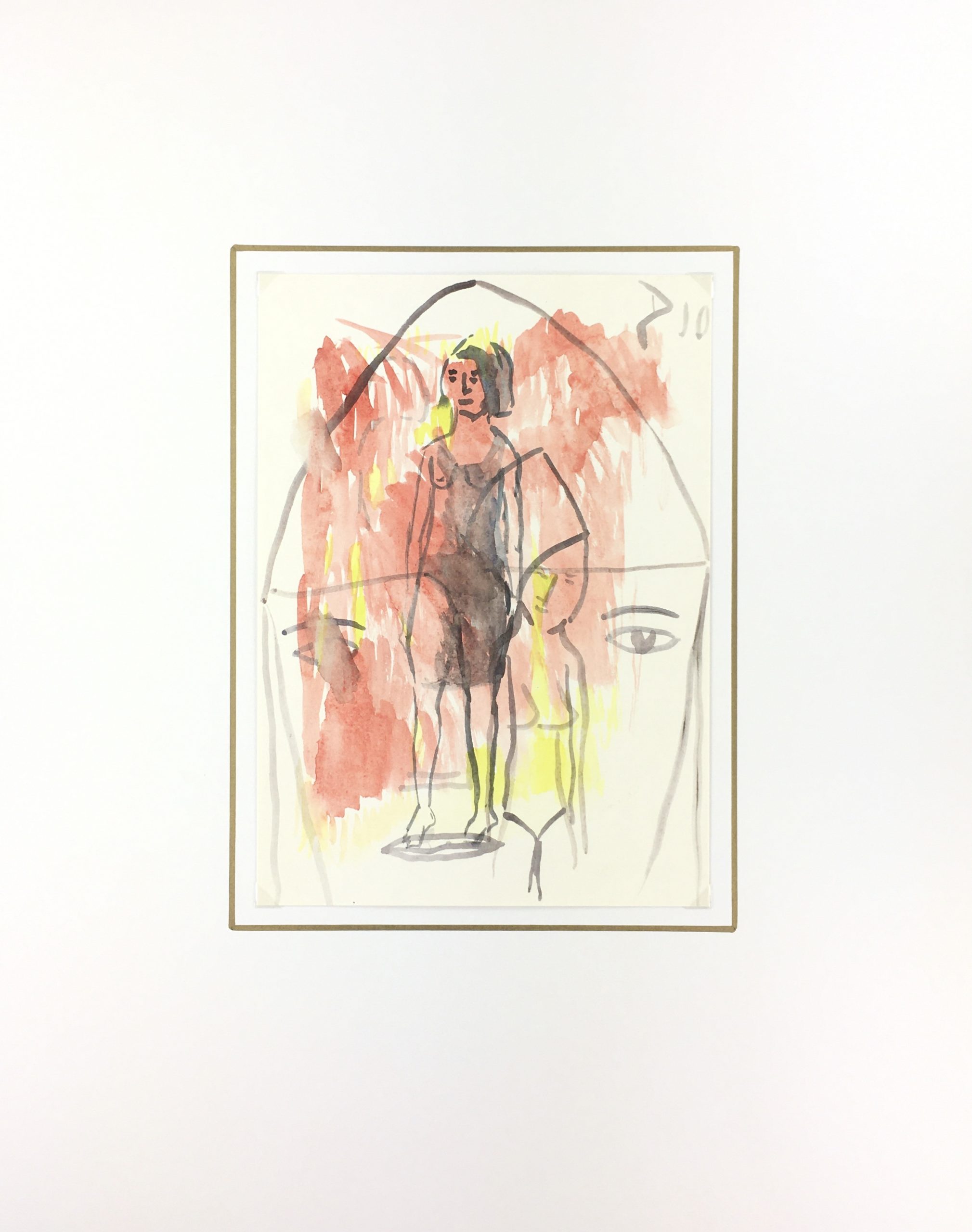 Original Art on paper displayed on a white mat with a gold border. Mat fits a standard-size frame. Archival plastic sleeve and Certificate of Authenticity included. Original Art, 7.25″W x 10″H; mat, 16″W x 20″H.