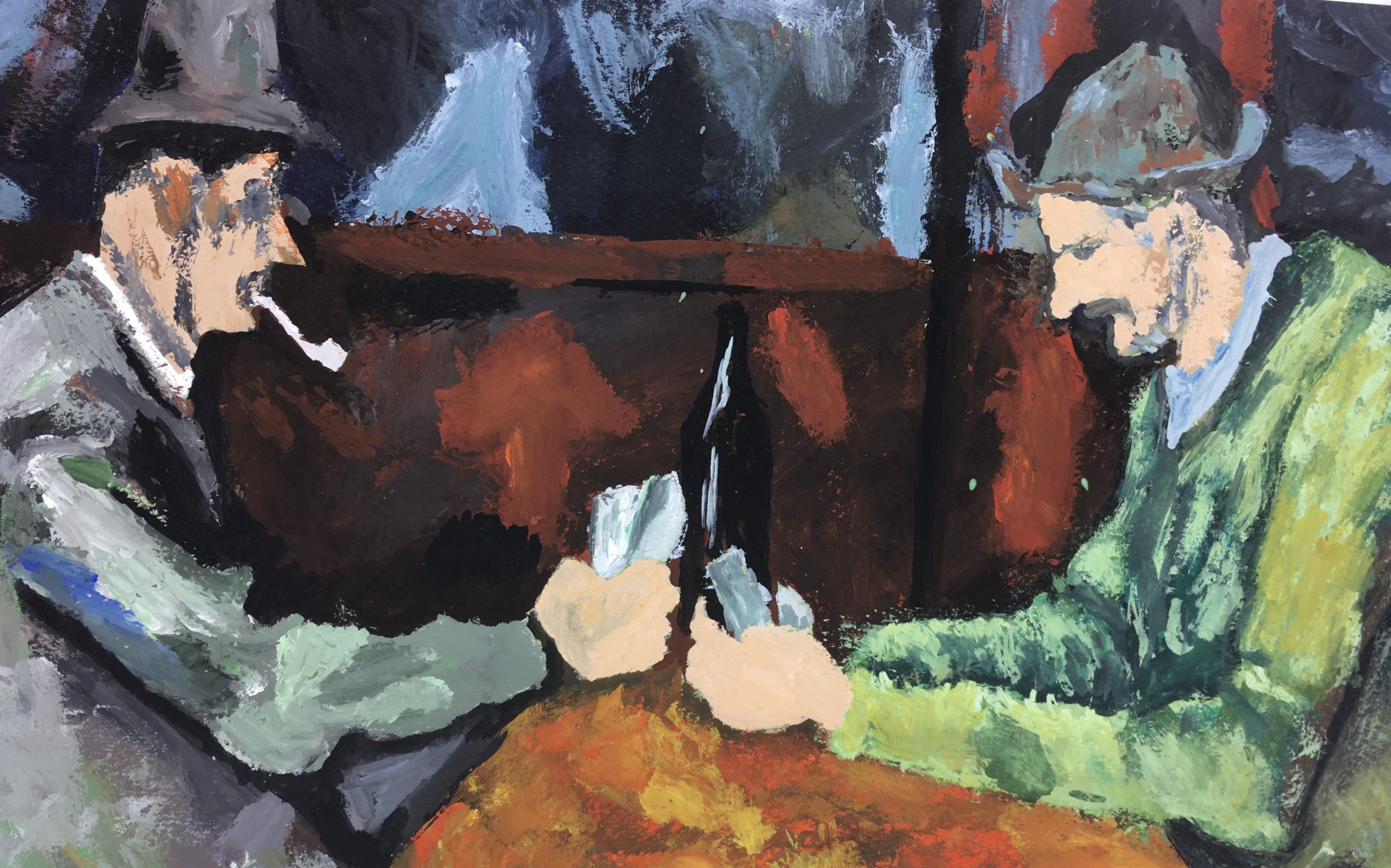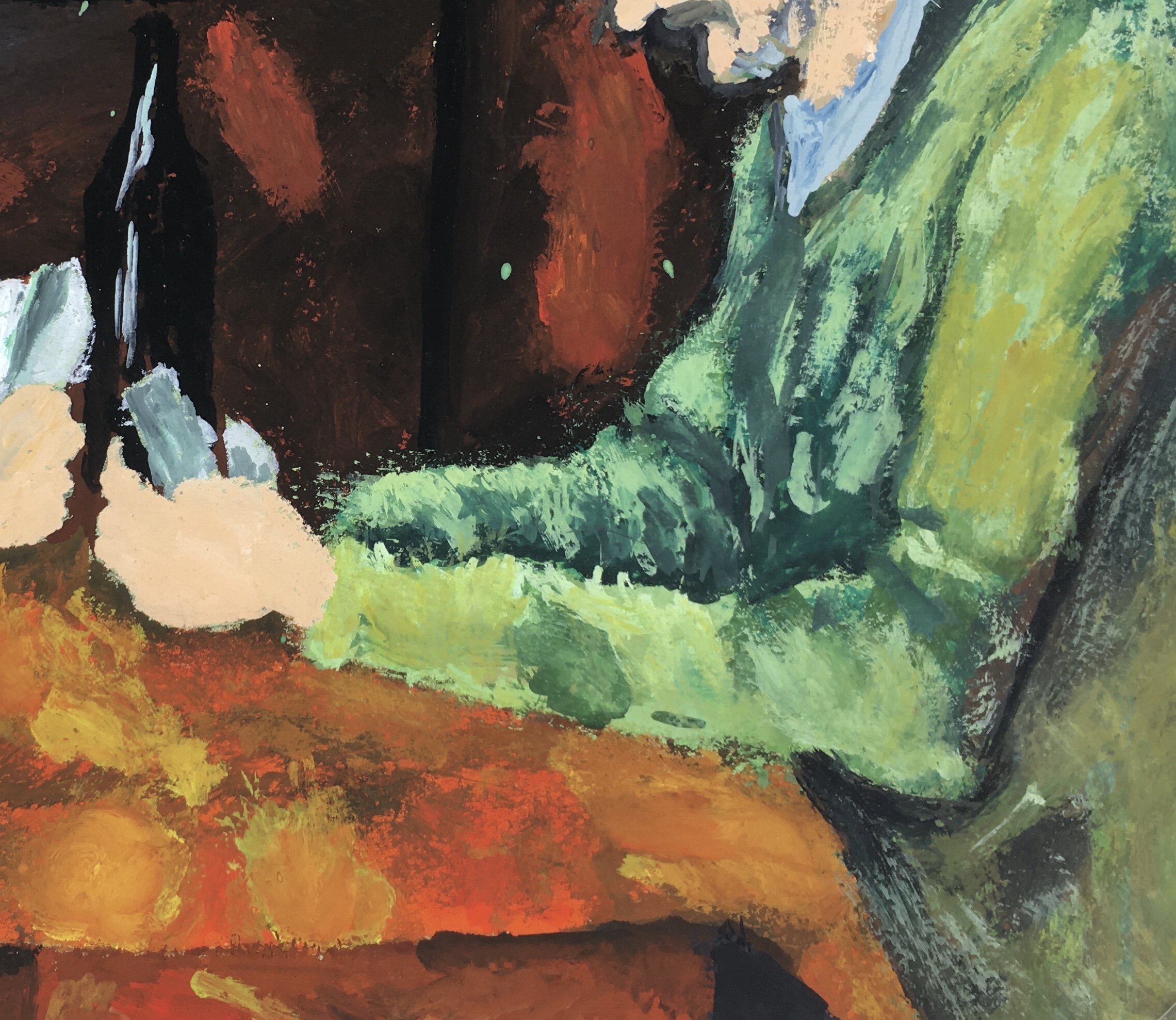 Original Art on paper displayed on a white mat with a gold border. Mat fits a standard-size frame. Archival plastic sleeve and Certificate of Authenticity included. Original Art, 13.5″W x 8.5″H; mat, 16″W x 20″H.