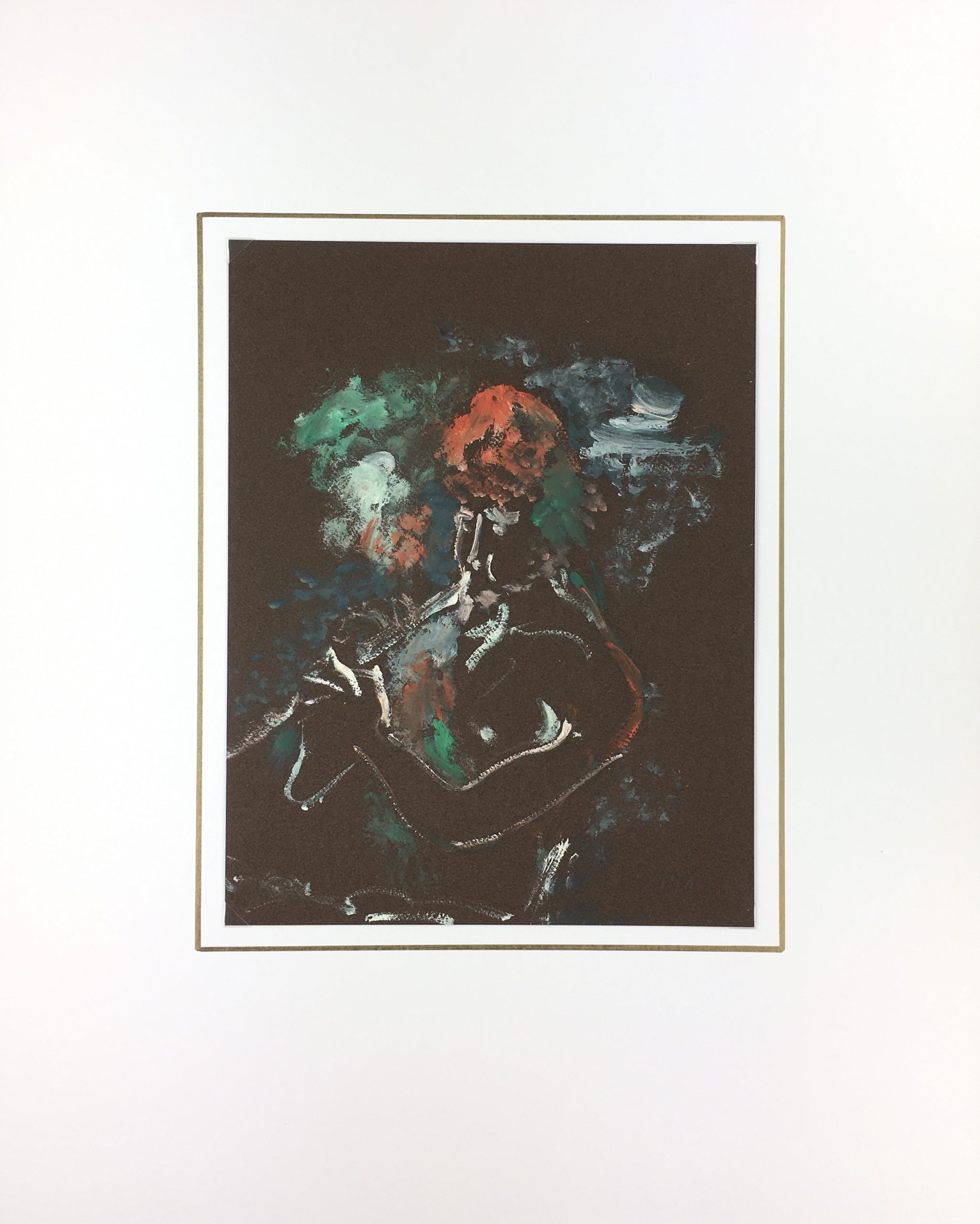 Original Art on paper displayed on a white mat with a gold border. Mat fits a standard-size frame. Archival plastic sleeve and Certificate of Authenticity included. Original Art, 8.5″W x 11″H; mat, 16″W x 20″H.