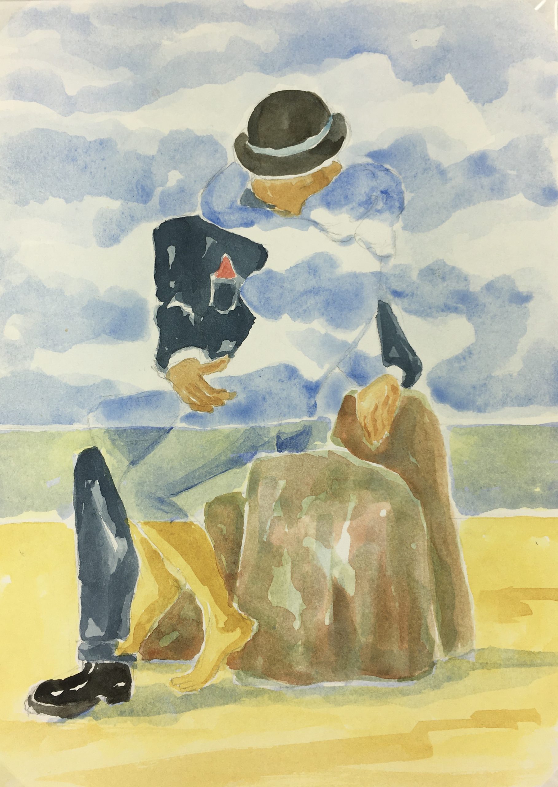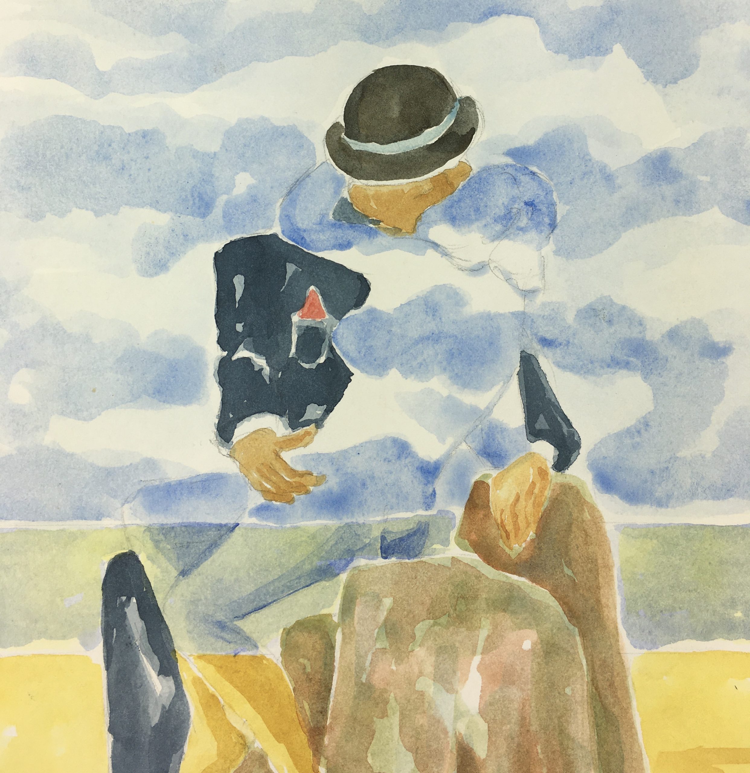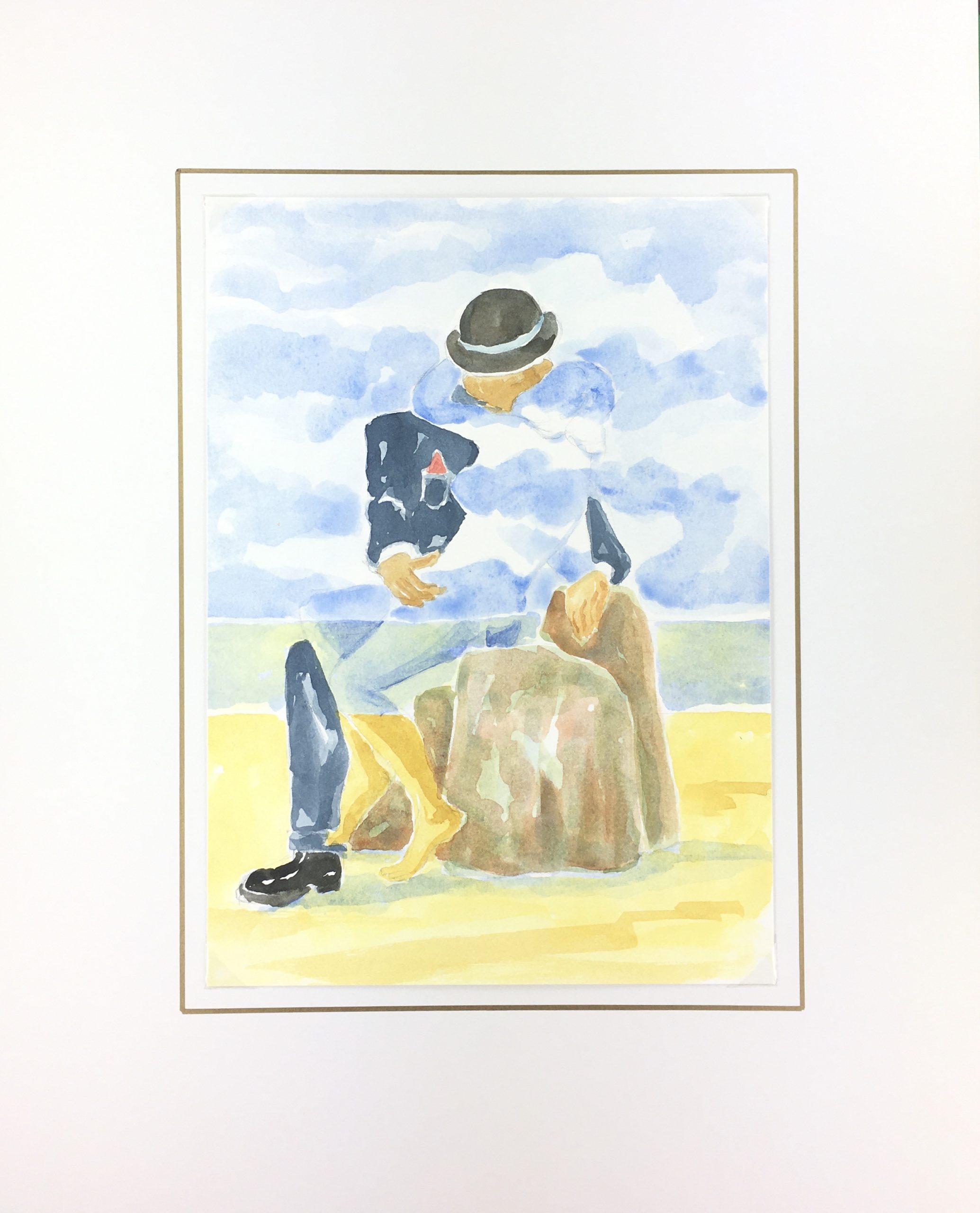 Original Art on paper displayed on a white mat with a gold border. Mat fits a standard-size frame. Archival plastic sleeve and Certificate of Authenticity included. Original Art, 9″W x 12.5″H; mat, 16″W x 20″H.