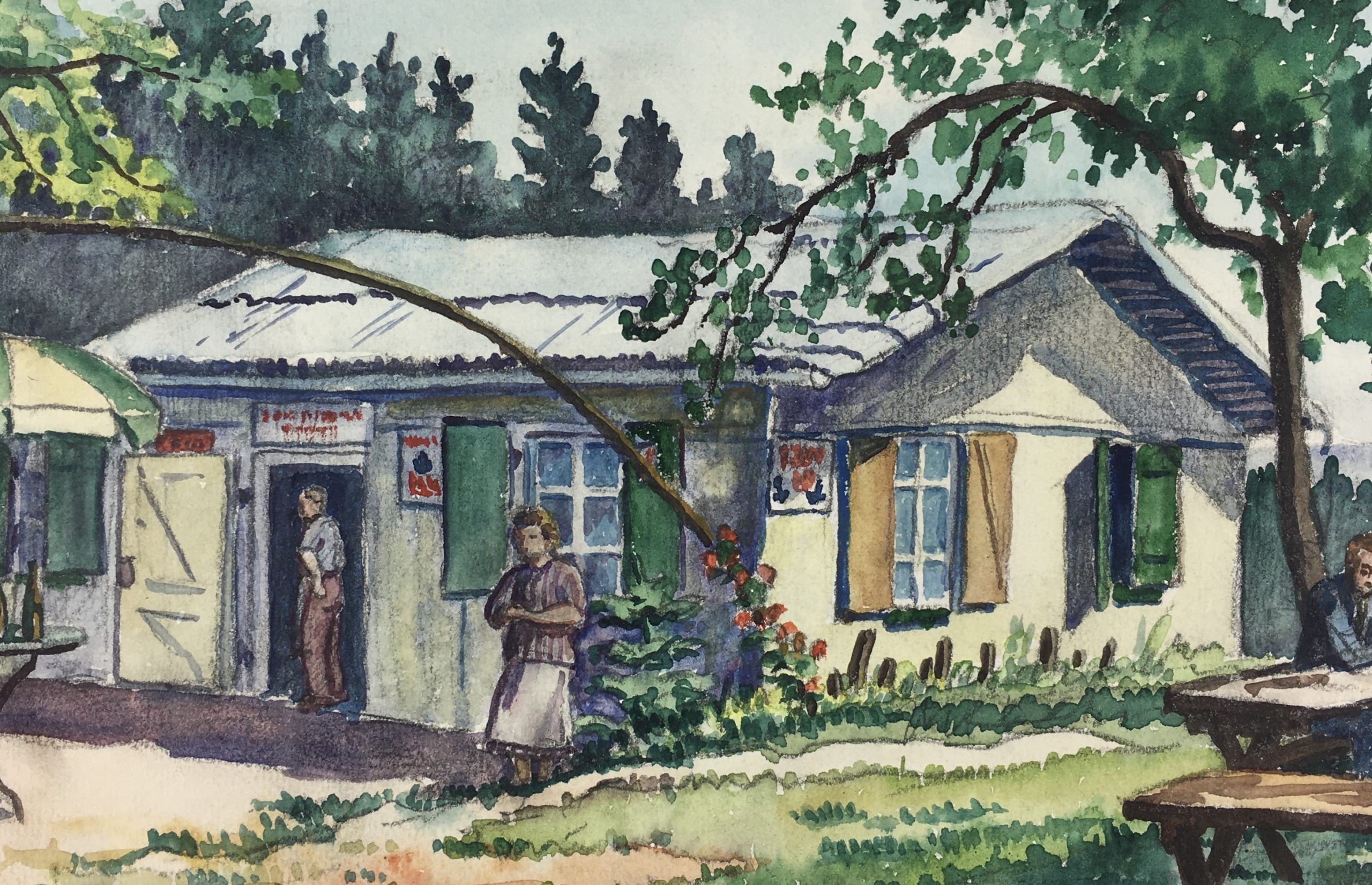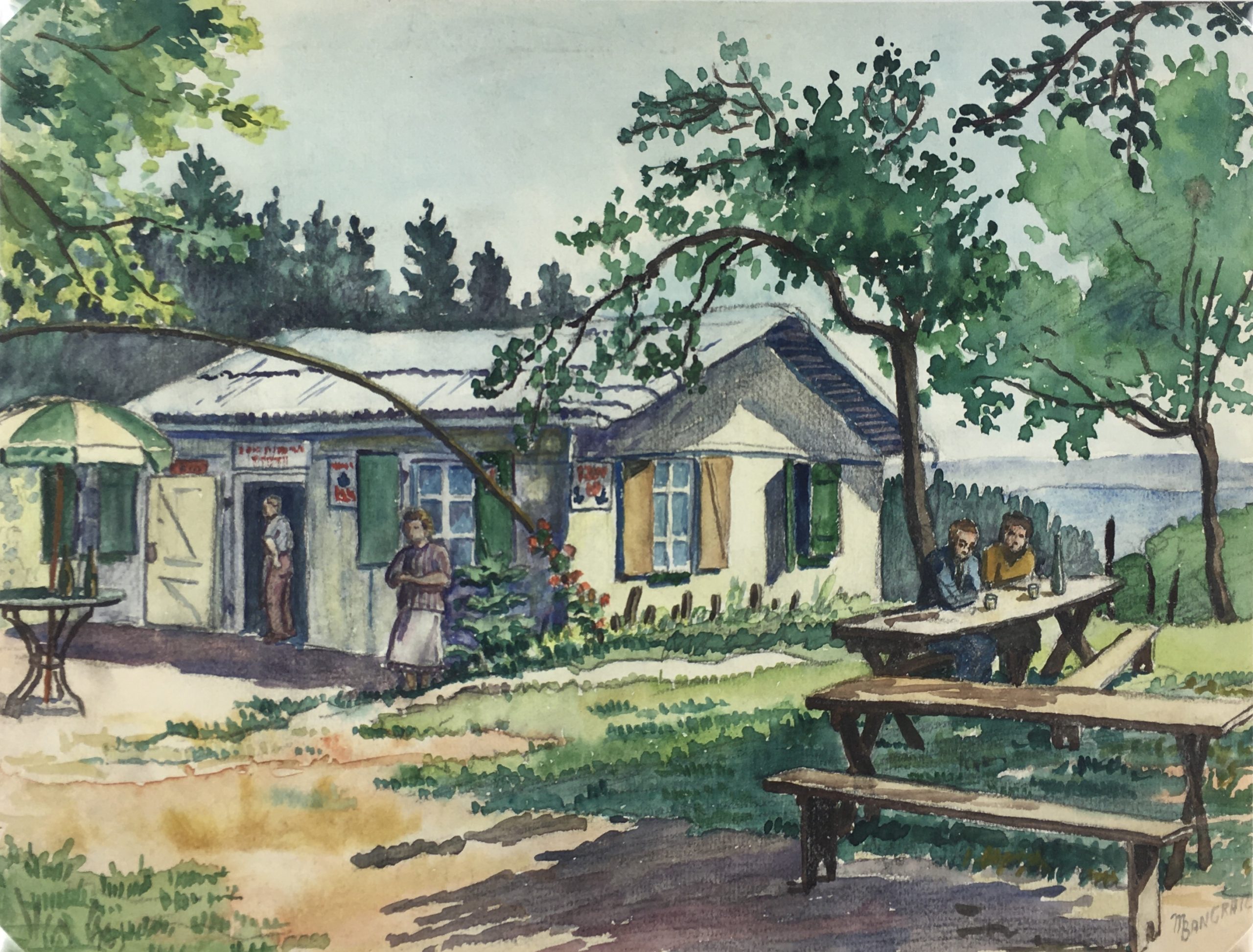 Original Art on paper displayed on a white mat with a gold border. Mat fits a standard-size frame. Archival plastic sleeve and Certificate of Authenticity included. Original Art, 12″W x 9″H; mat, 16″W x 20″H.